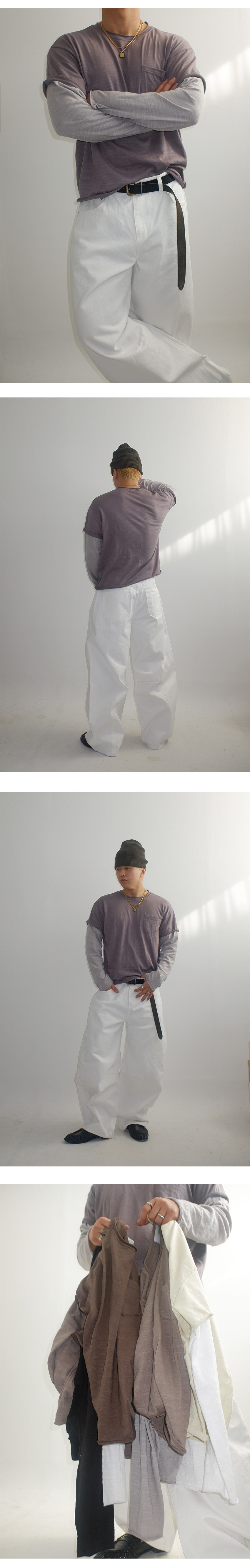 크롭한 기장과 소매 이중 레이어드 디테일로 단품 착용만으로도 자연스러운 포인트를 더했으며,