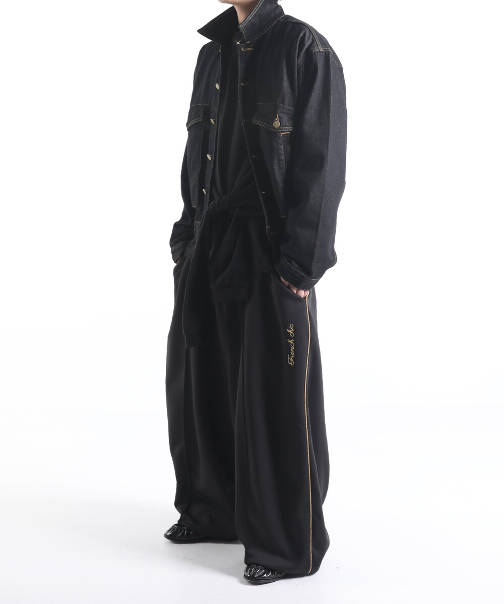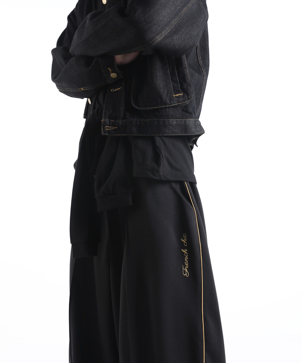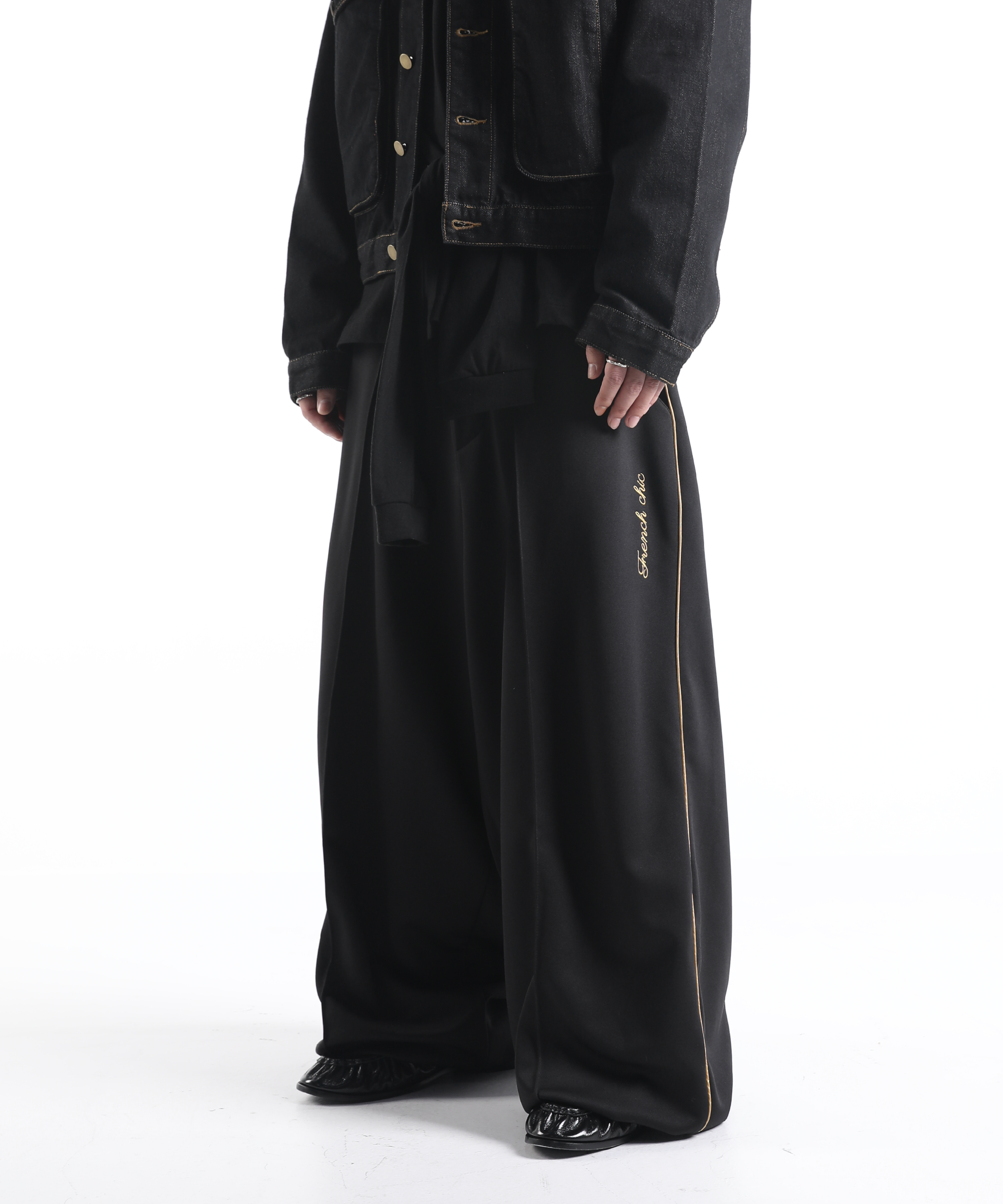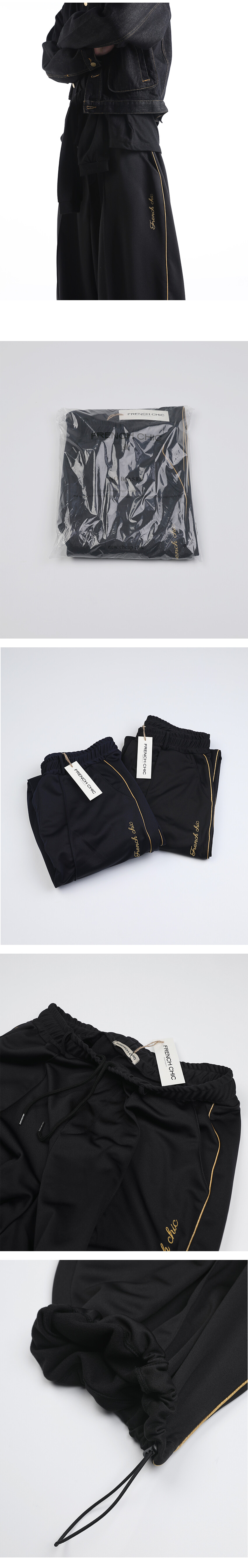 이번에 소개드릴 제품은 와이드한 실루엣을 기반으로 여유롭게 떨어지는 핏의 프렌치 시크 트랙 팬츠입니다.