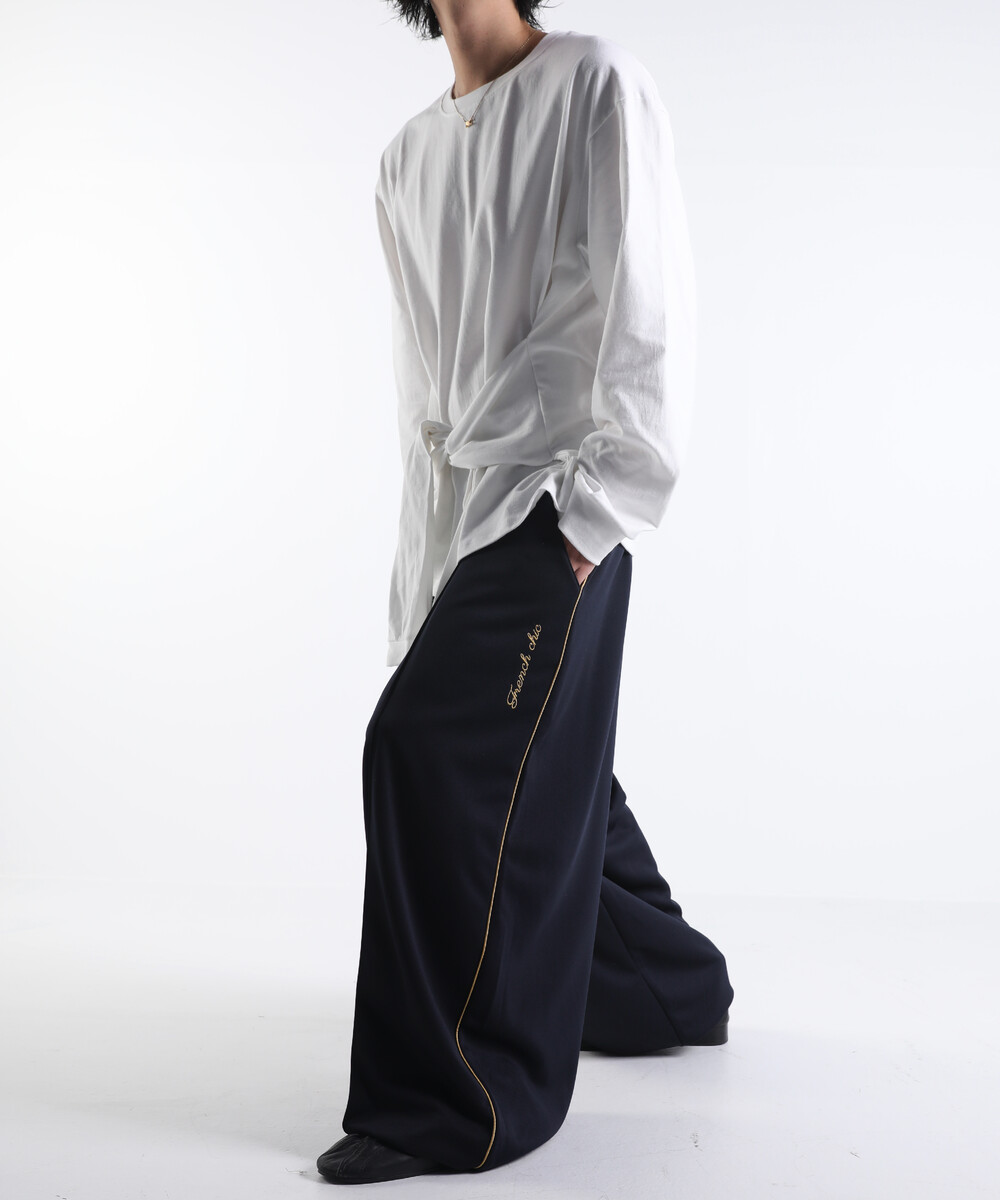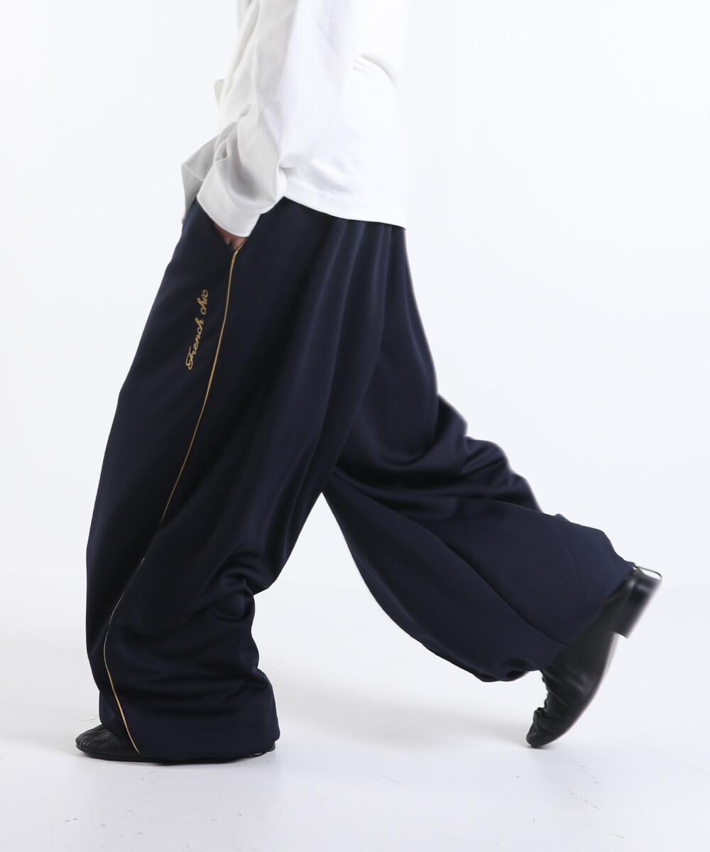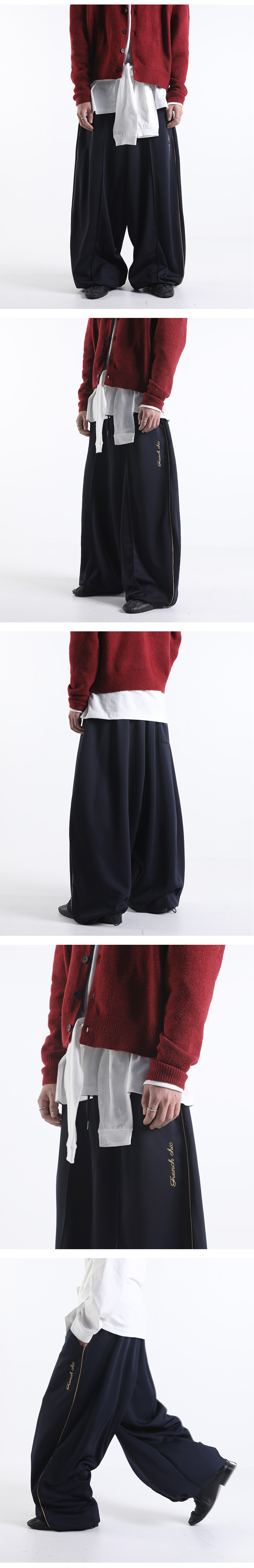 이번에 소개드릴 제품은 와이드한 실루엣을 기반으로 여유롭게 떨어지는 핏의 프렌치 시크 트랙 팬츠입니다.