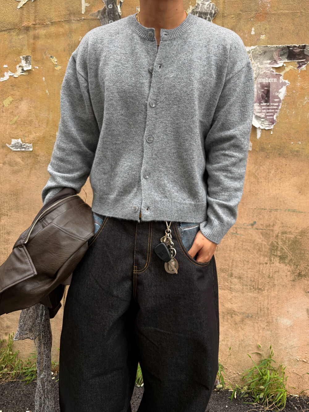 부드러운 도토함 원사로 제작된 크롭 실루엣의 라운드 가디건