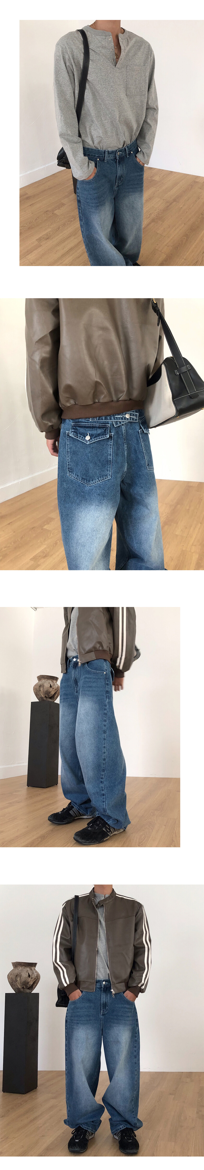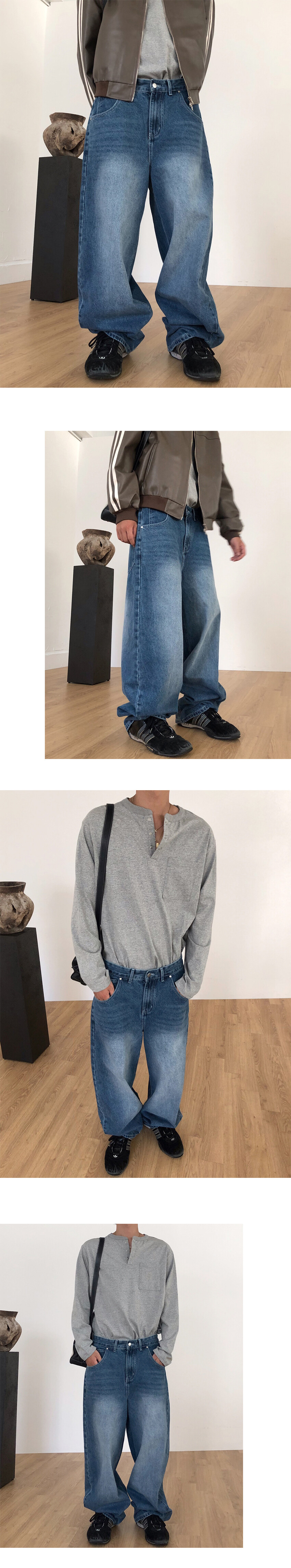 미드불루 컬러감의 와이드 데님