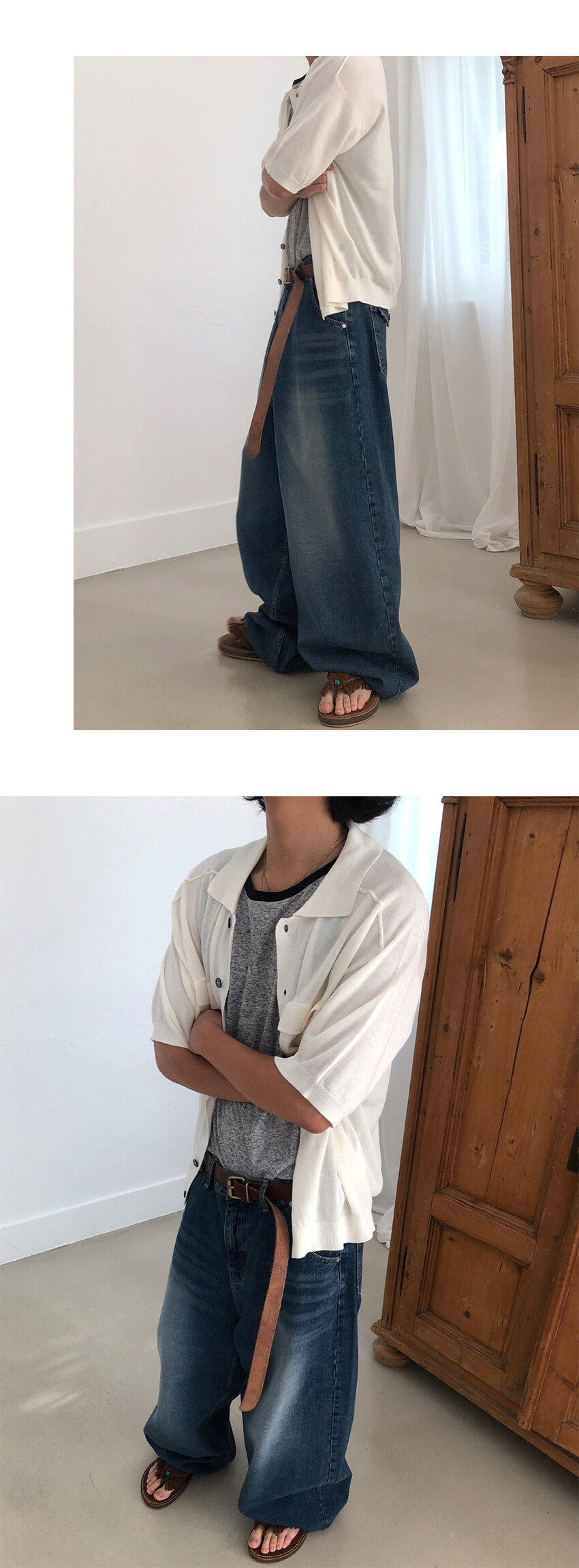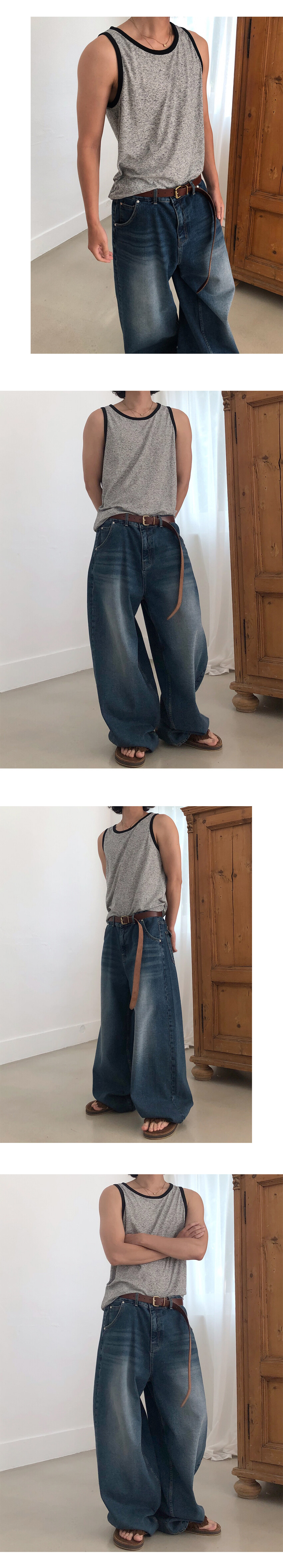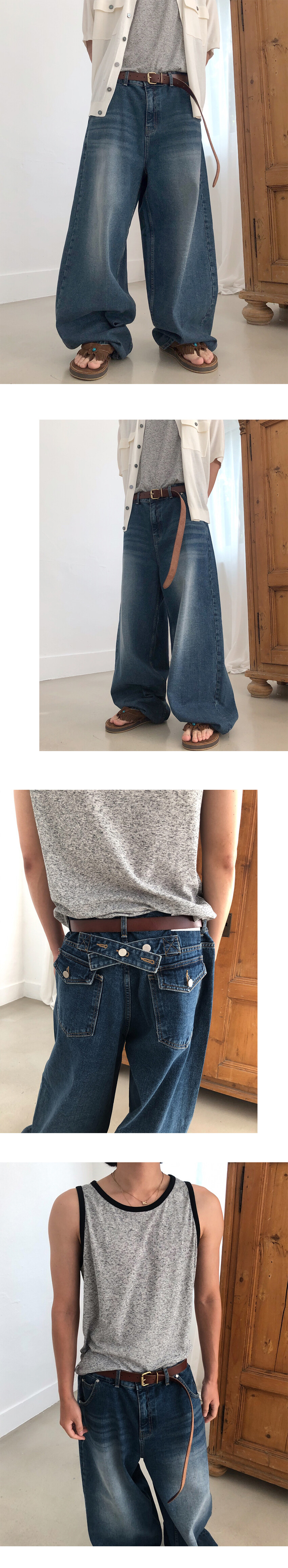 와이드한 실루엣의 데님팬츠