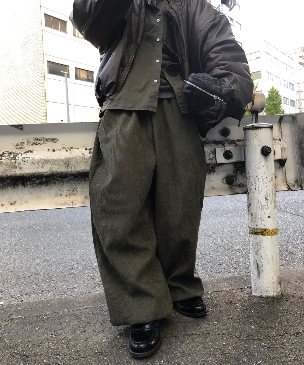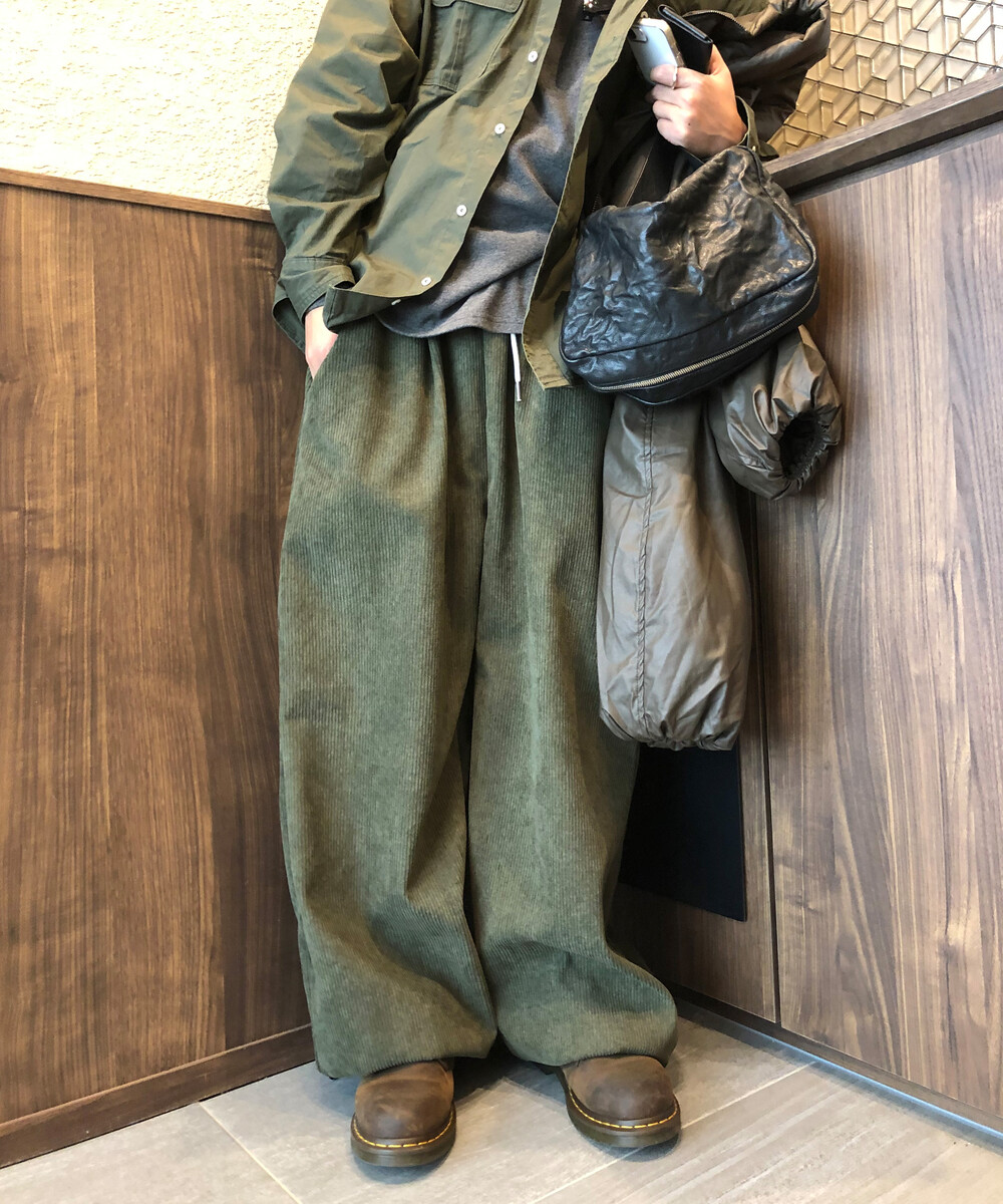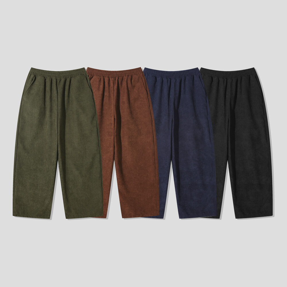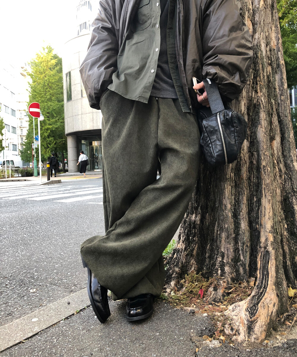 따뜻한 질감과 여유로운 실루엣으로 제작된 코듀로이 팬츠입니다.