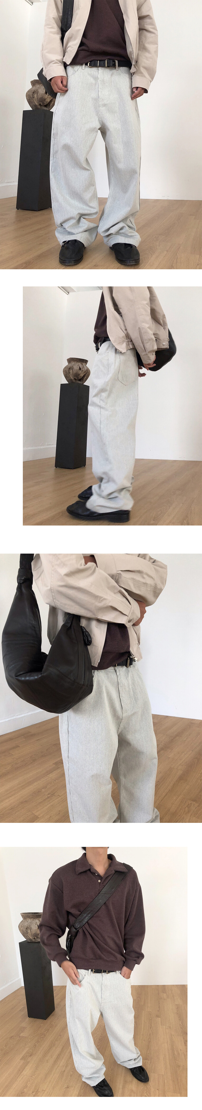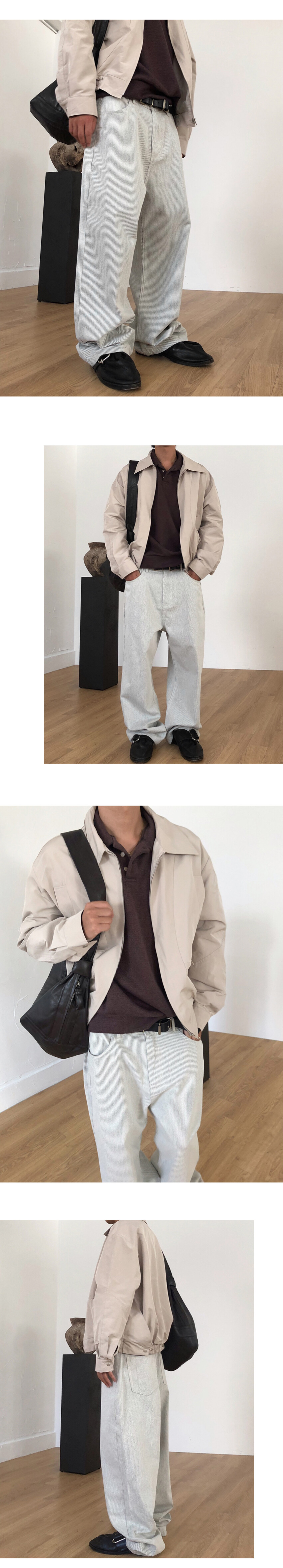 클래식한 핀스트라이프 패턴의 데님 원단 사용