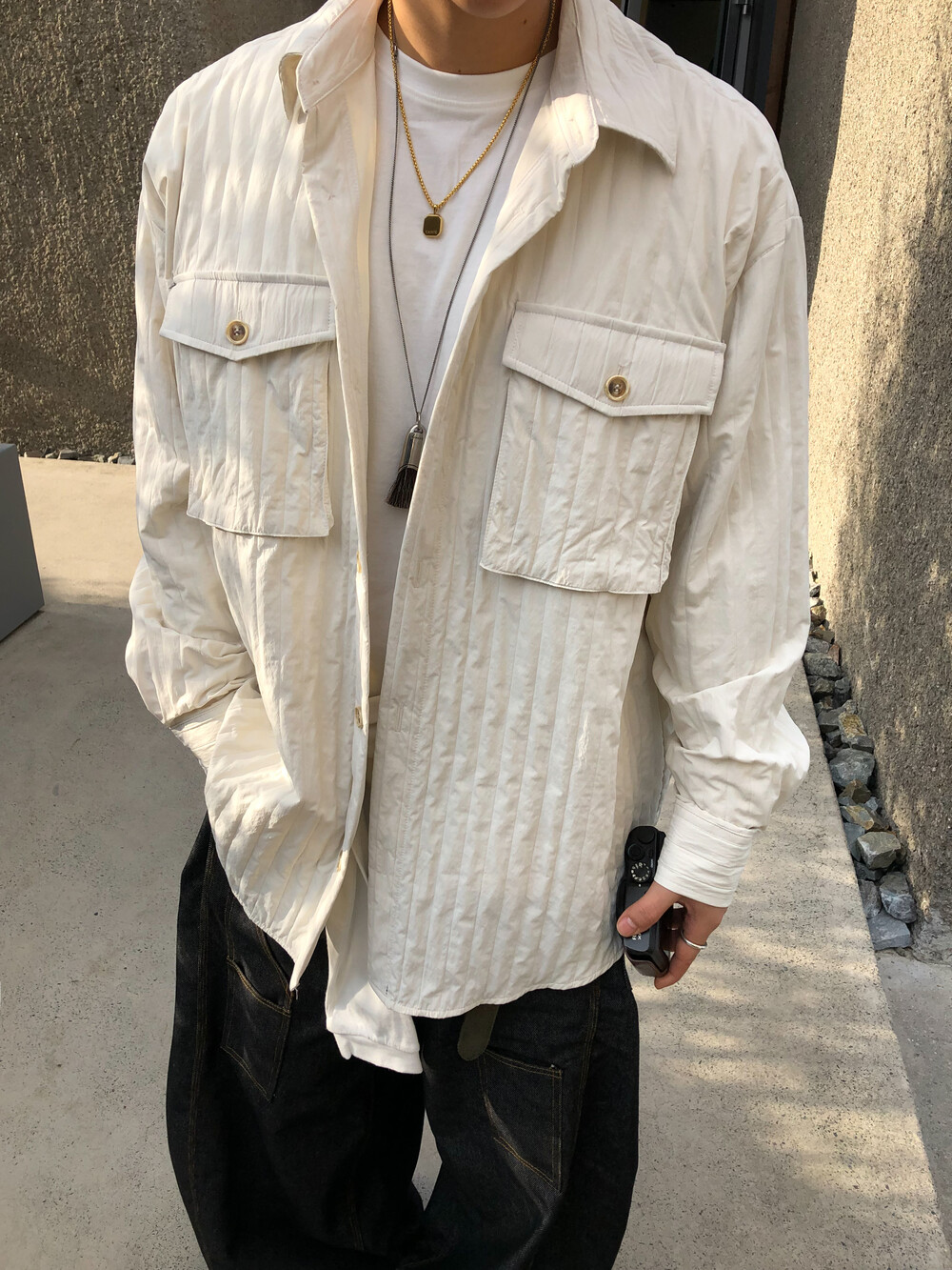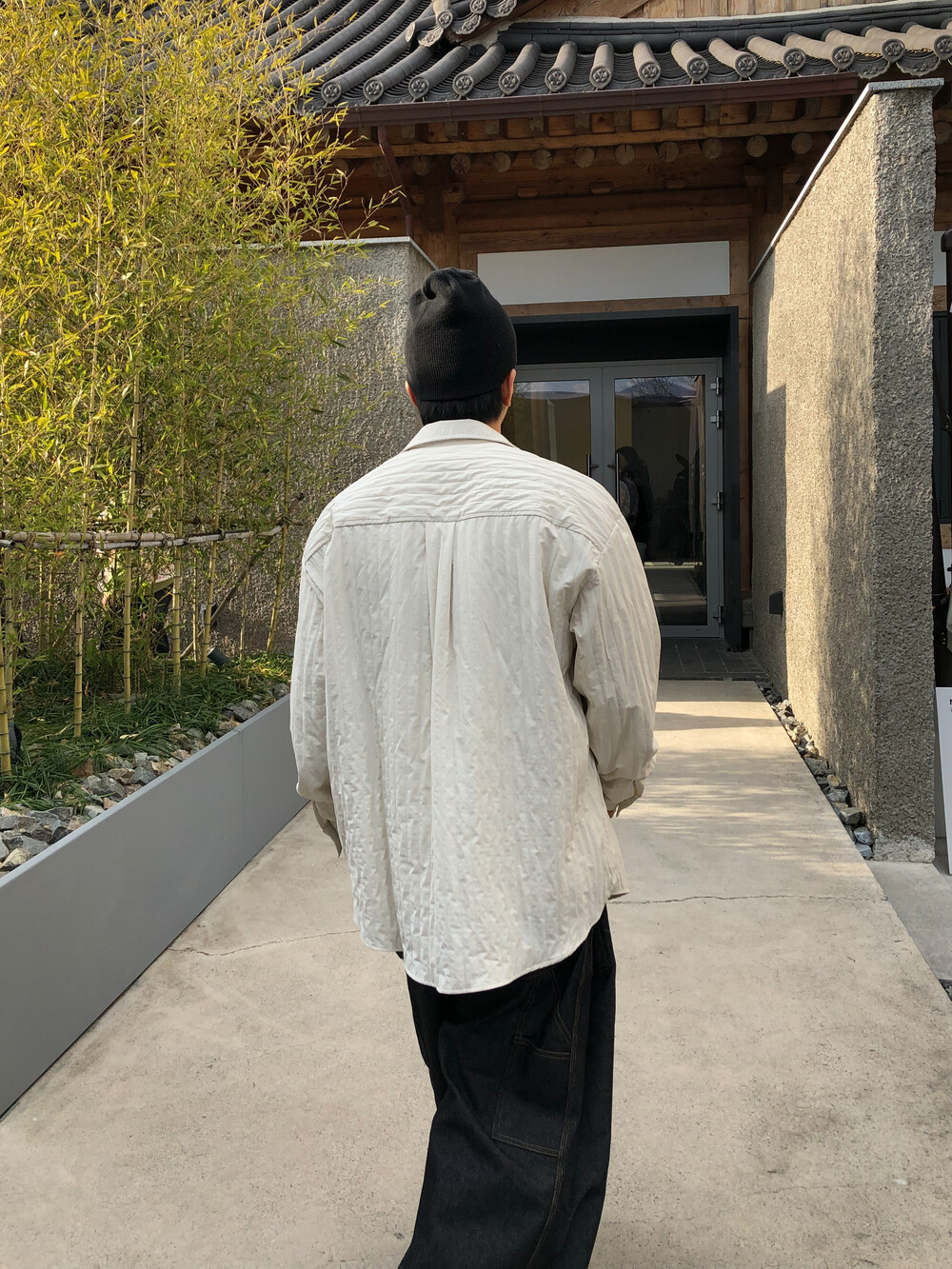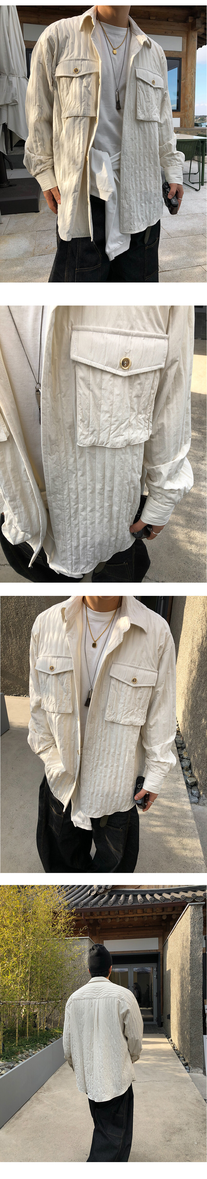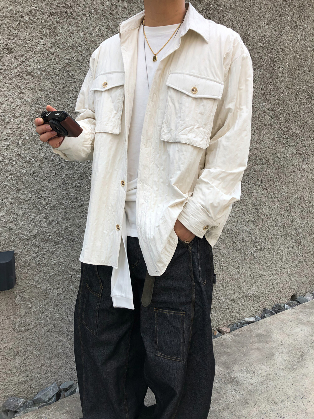 에어 퀼팅 원단으로 제작된 오버셔츠로, 폭신폭신한 터치감이 특징입니다.
