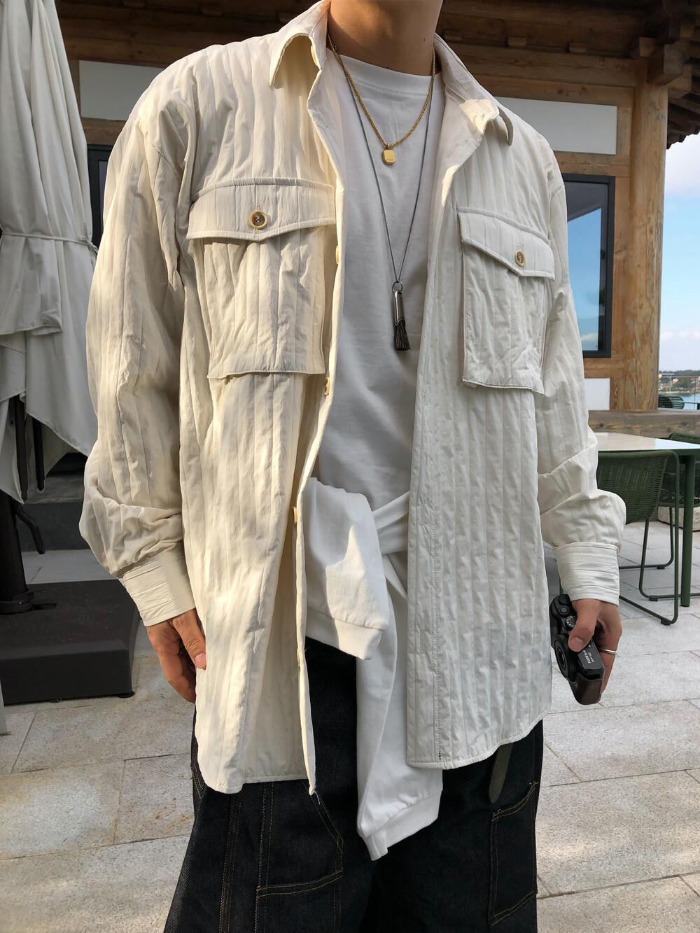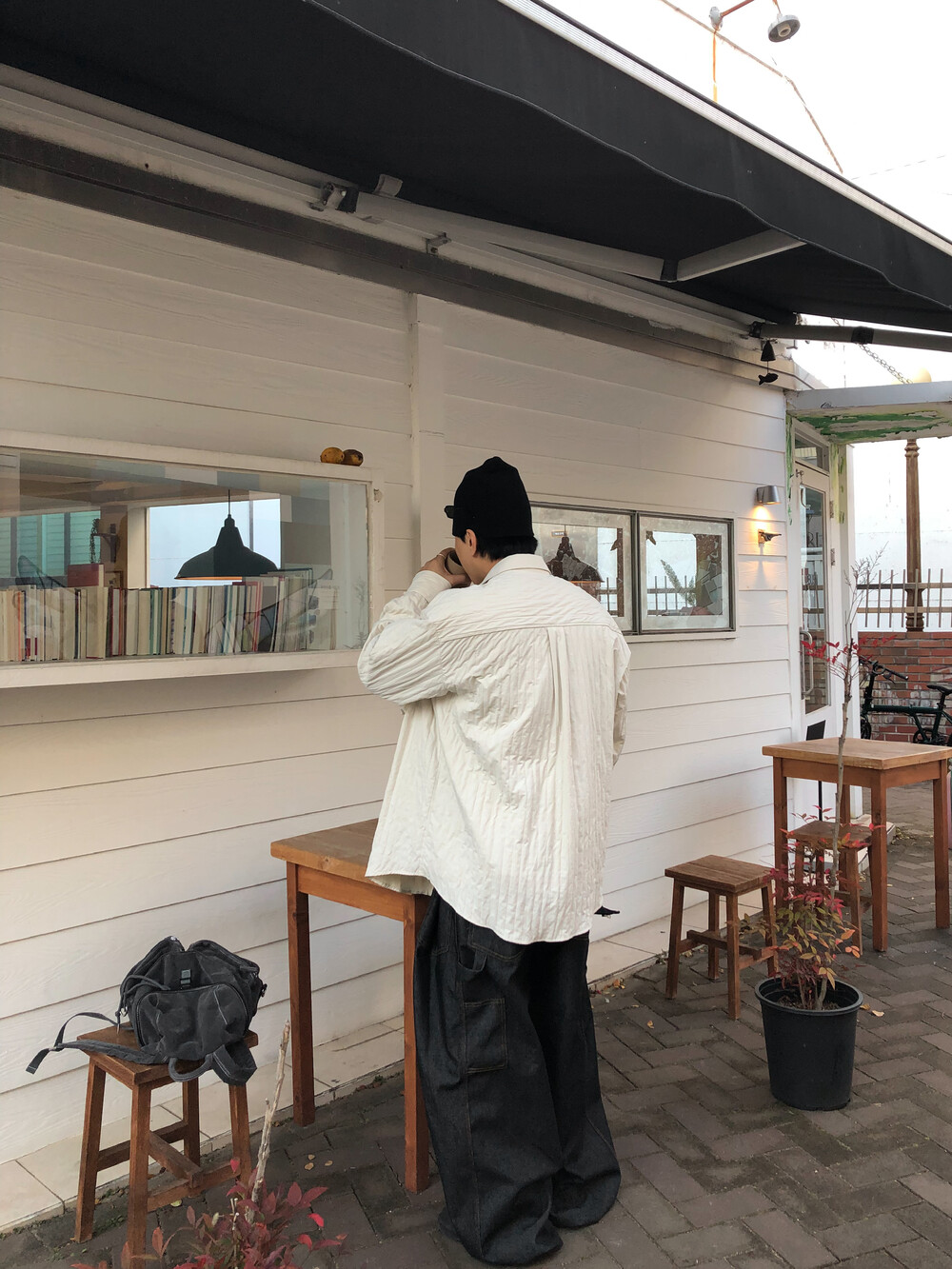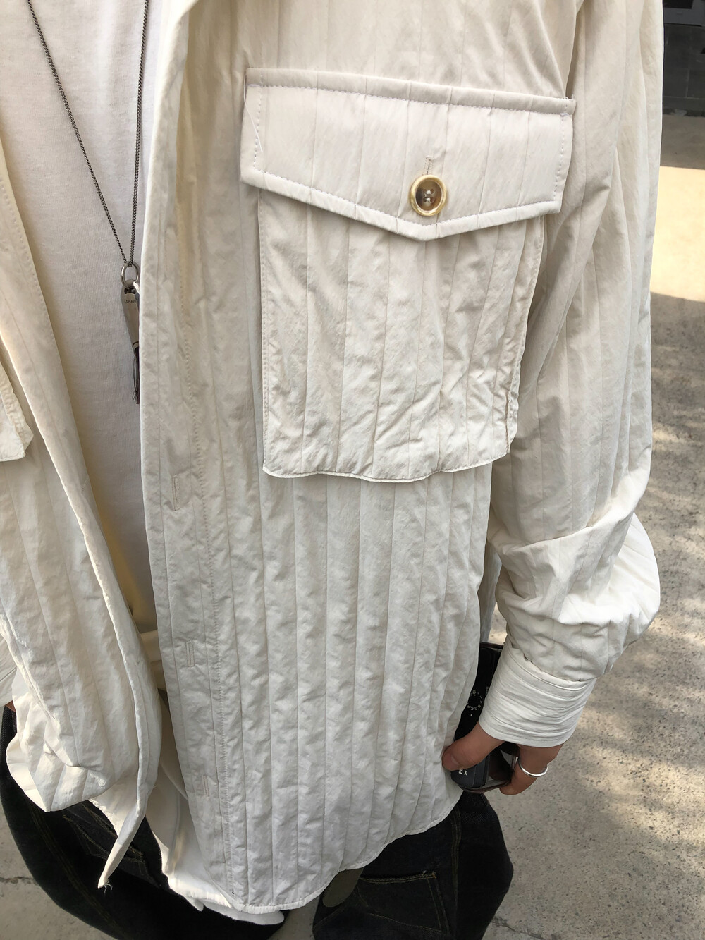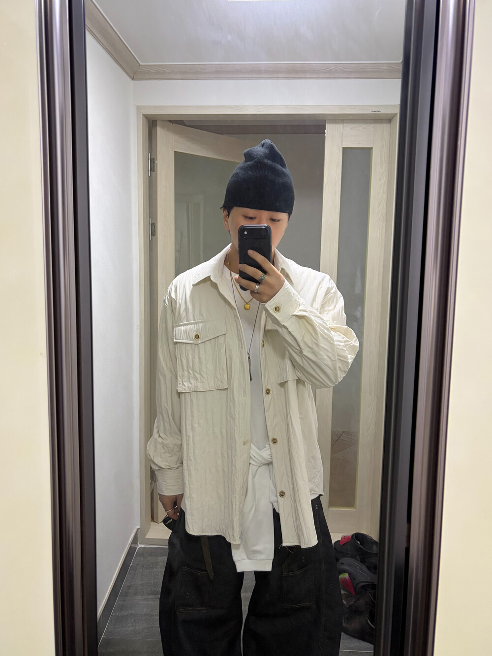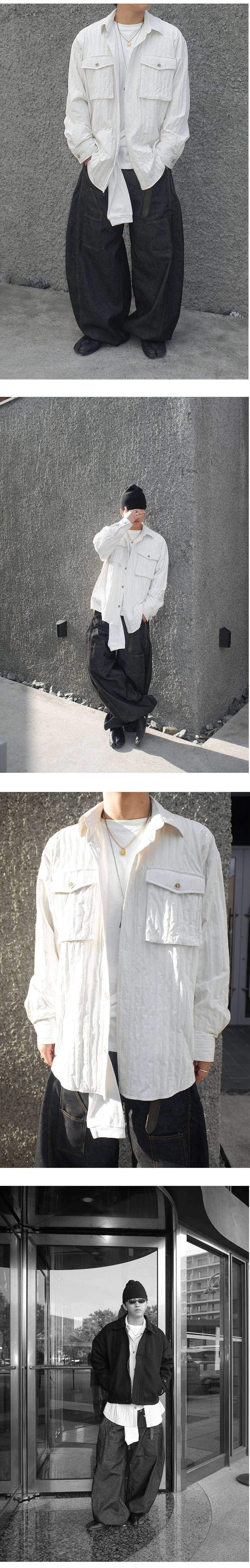 에어 퀼팅 원단으로 제작된 오버셔츠로, 폭신폭신한 터치감이 특징입니다.