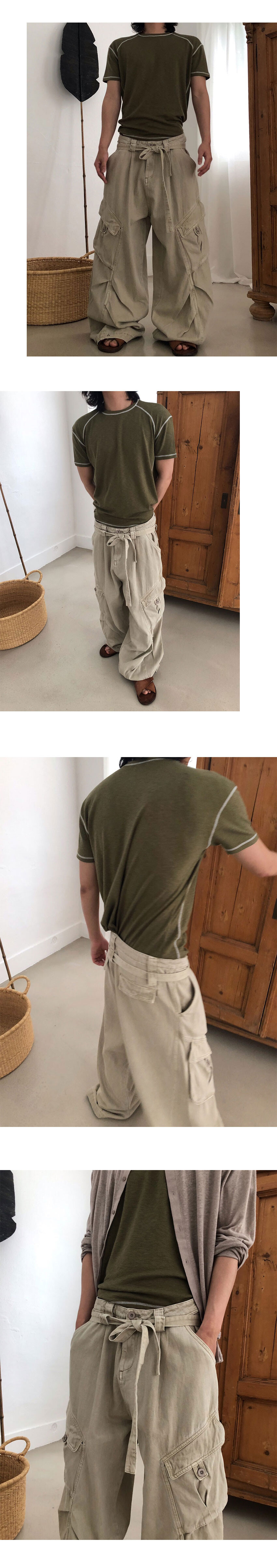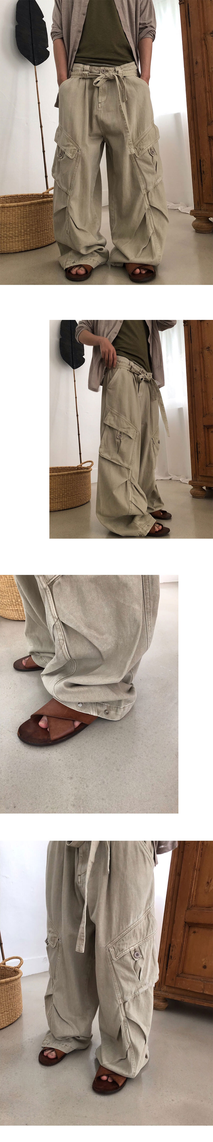 knotted belt dyed cargo wide pants