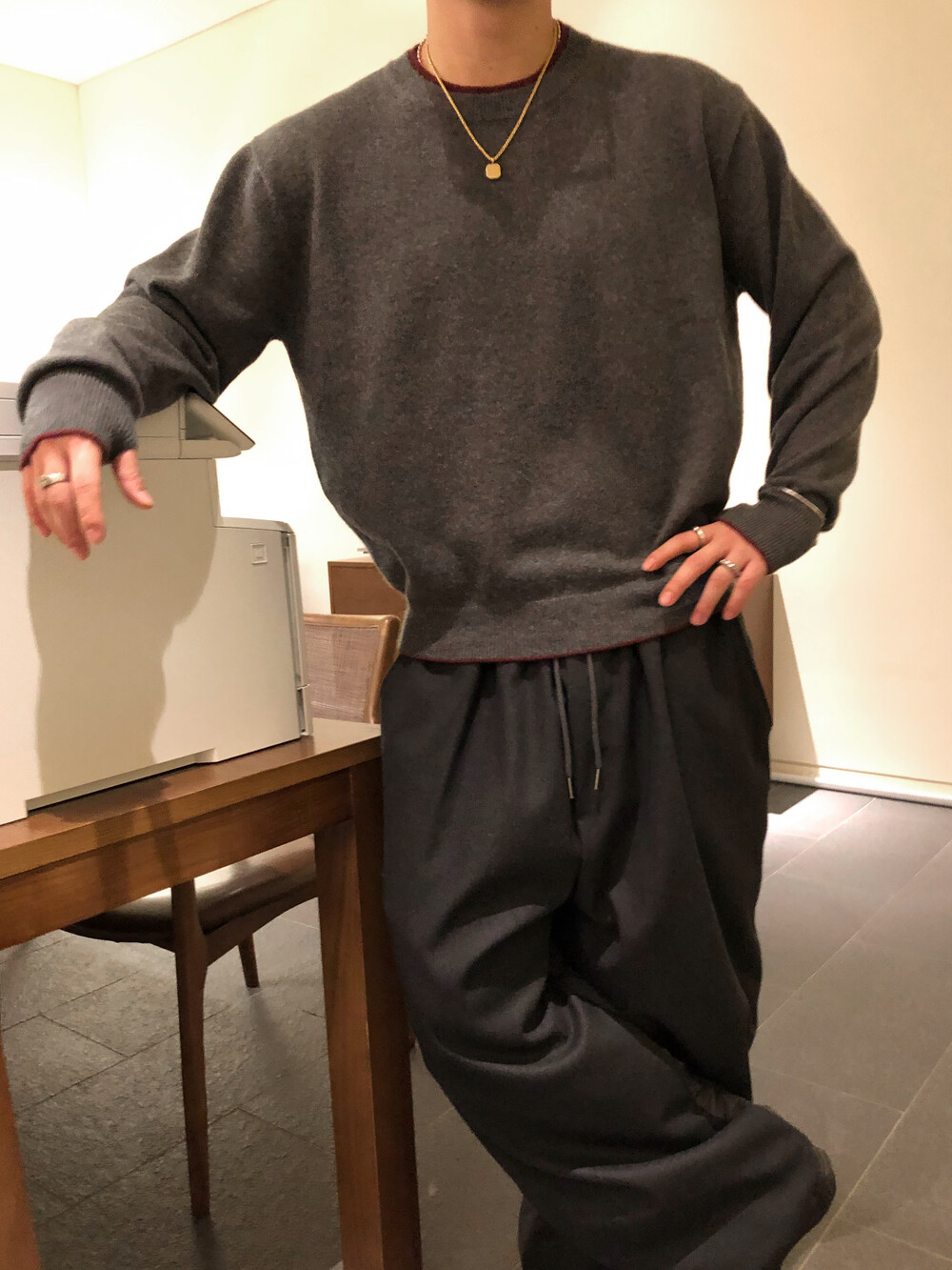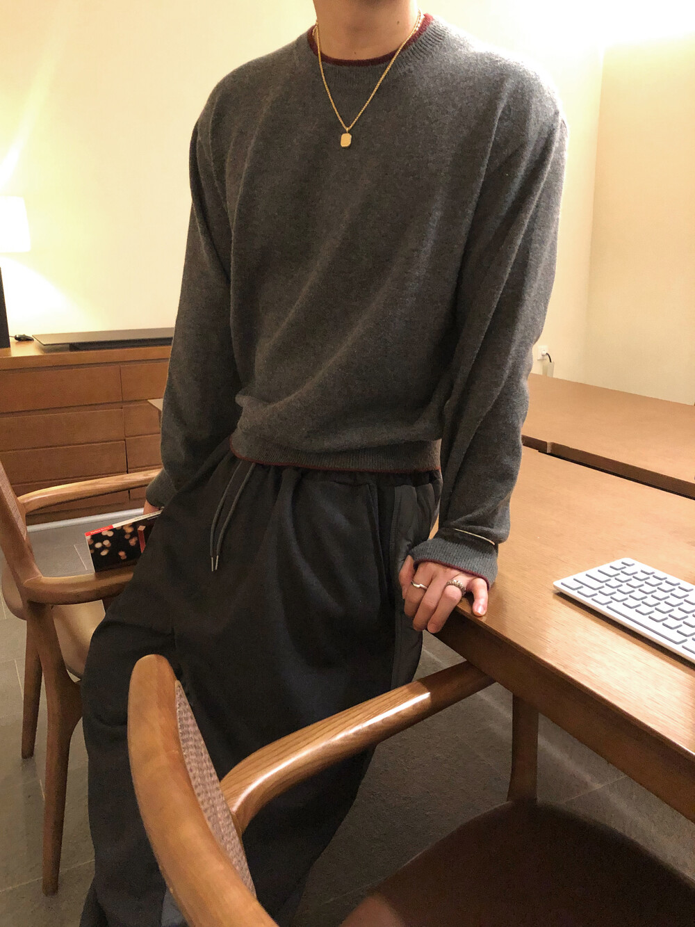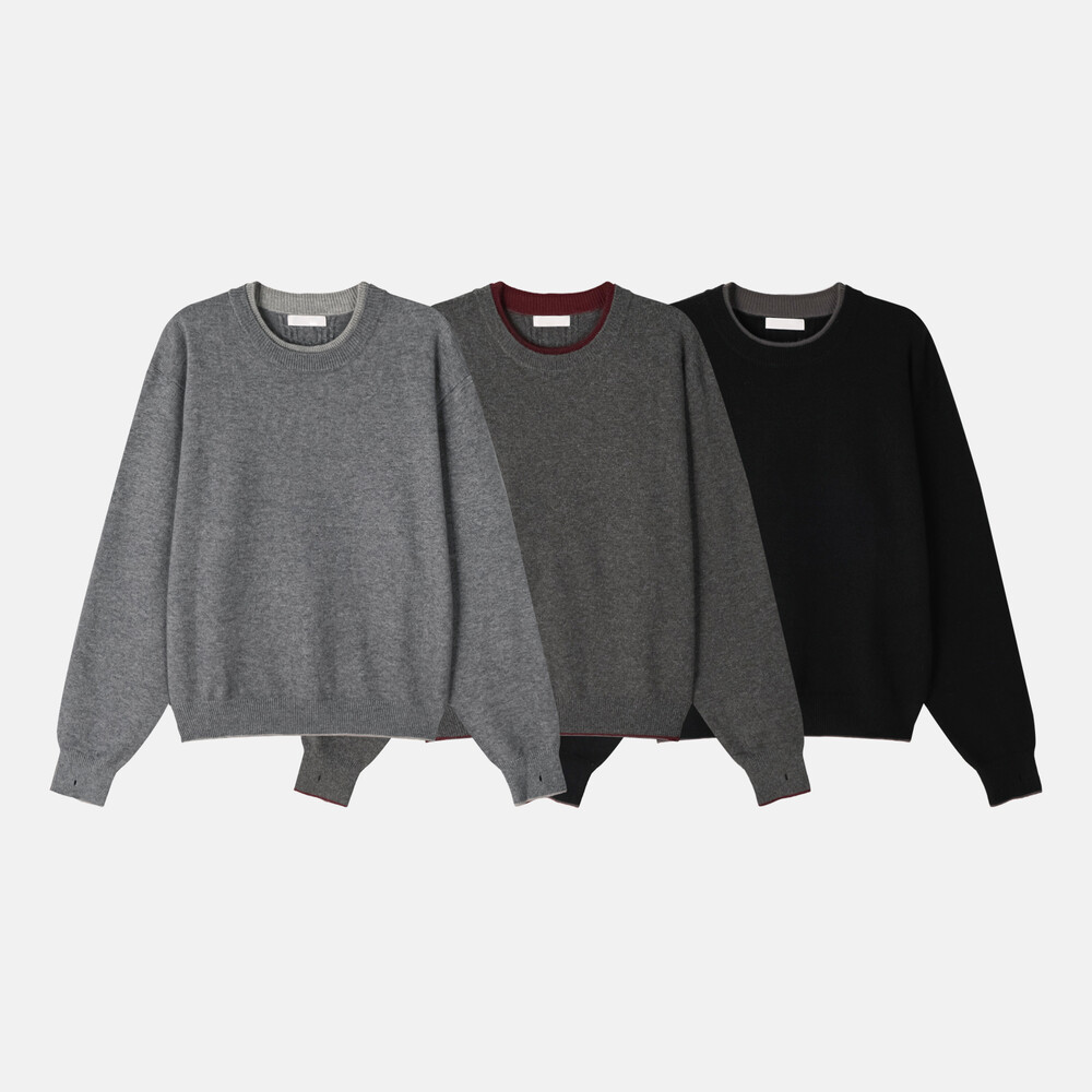 넥 부분의 레이어드 배색 디테일이 은은한 포인트가 되어 단독 착용 시에도 충분한 존재감을 더해줍니다.