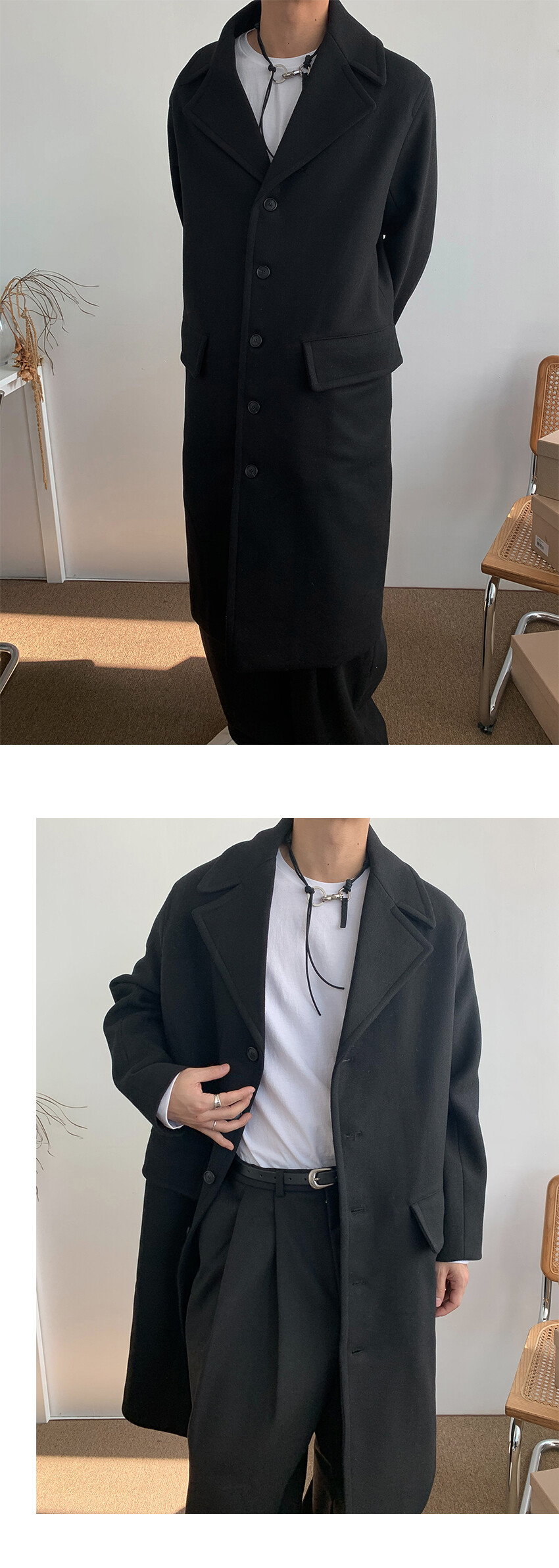 5 button single wool coat