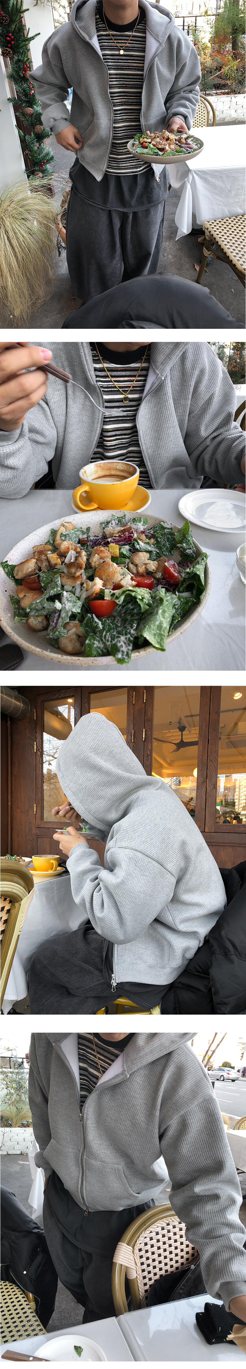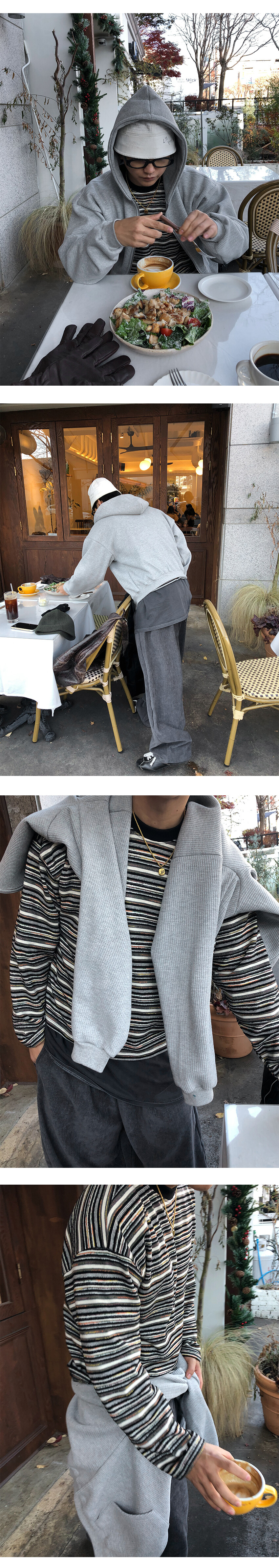여유 있는 후드 쉐입과 투웨이 지퍼 디테일로 다양한 연출이 가능해, 오픈·클로징에 따라 전혀 다른 분위기를 즐길 수 있습니다.