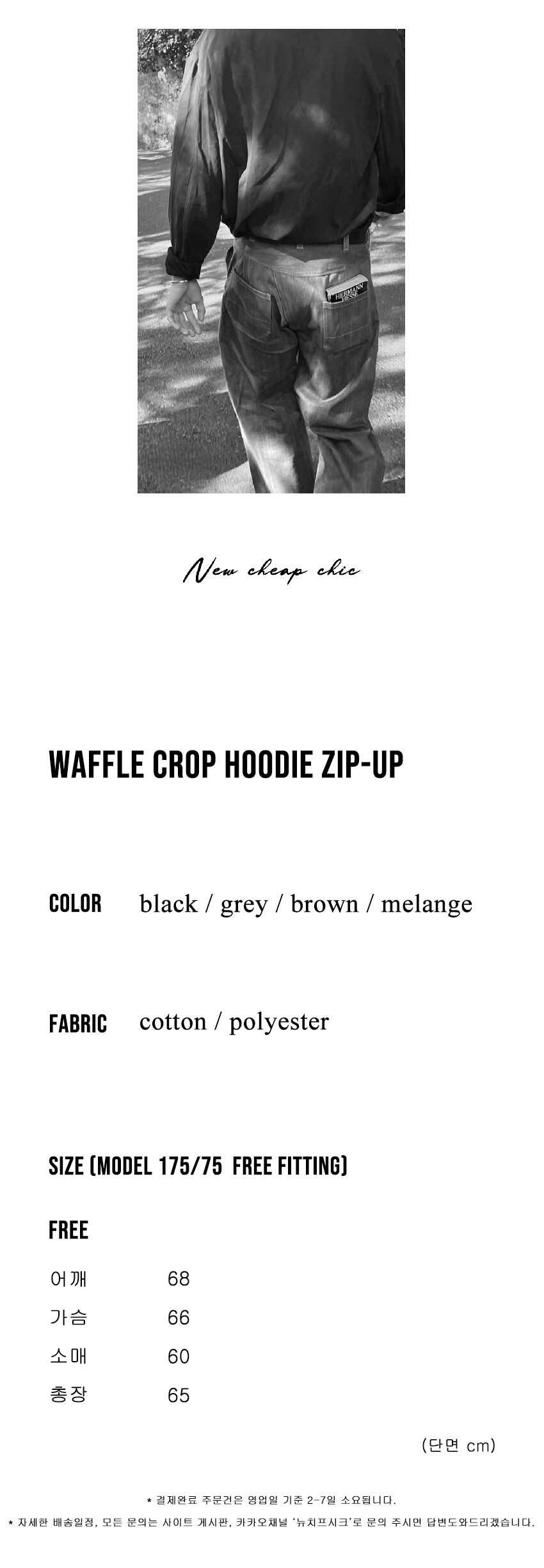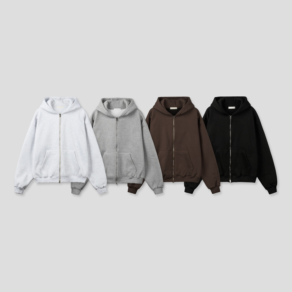 와플 질감과 균형 잡힌 실루엣이 조화를 이루는 와플 크롭 후드 집업입니다.