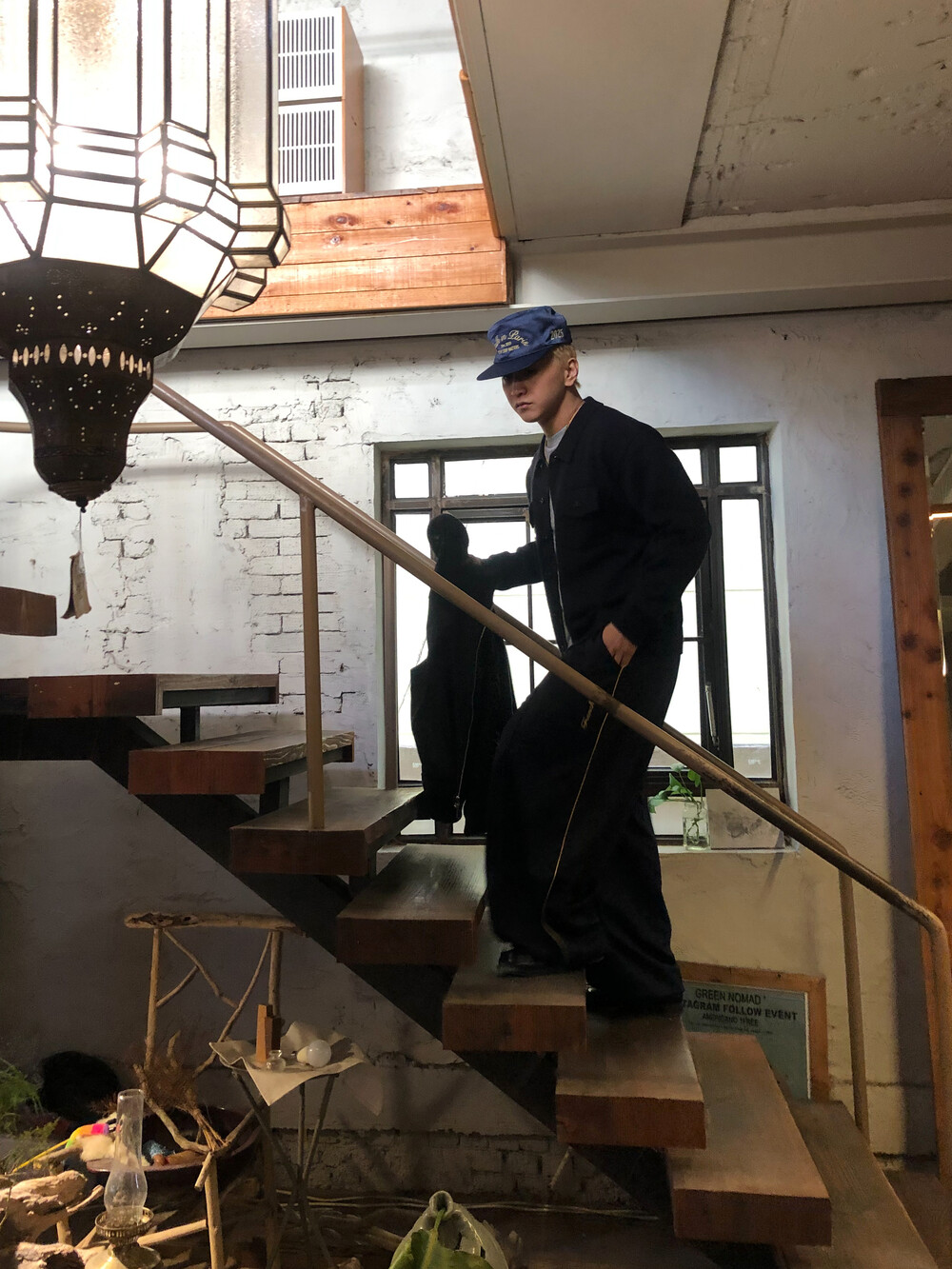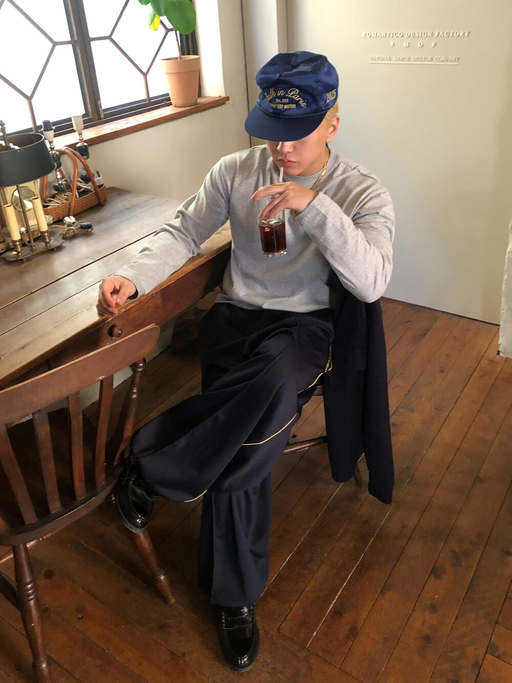 미디움 사이즈는 보다 핏한 느낌으로,라지 사이즈는 여유 있는 실루엣으로 연출되어