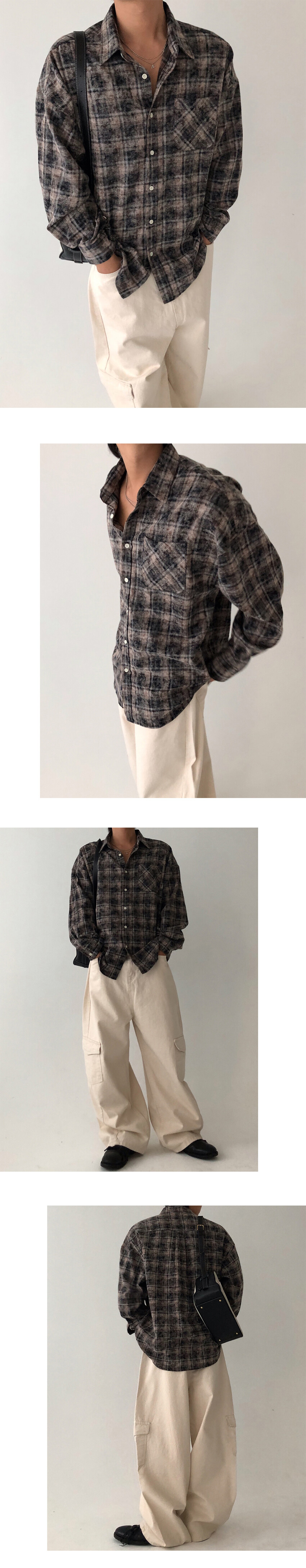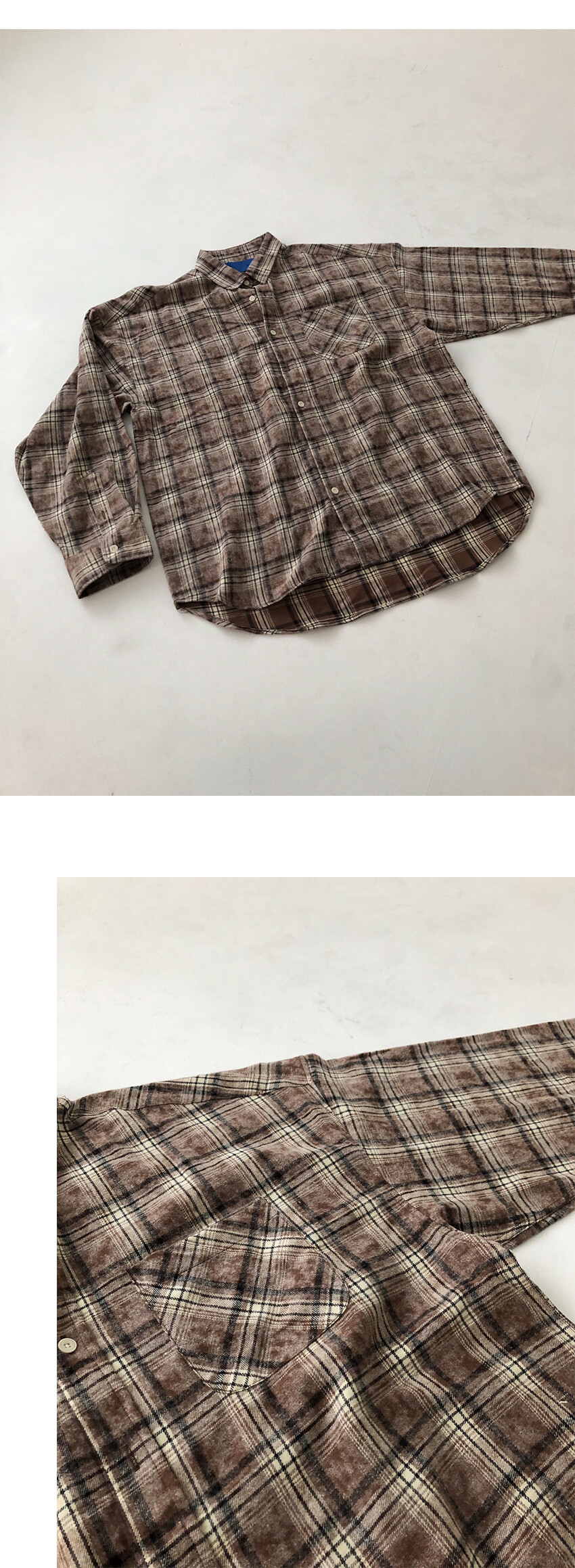 따뜻한 기모원단의 체크패턴 셔츠