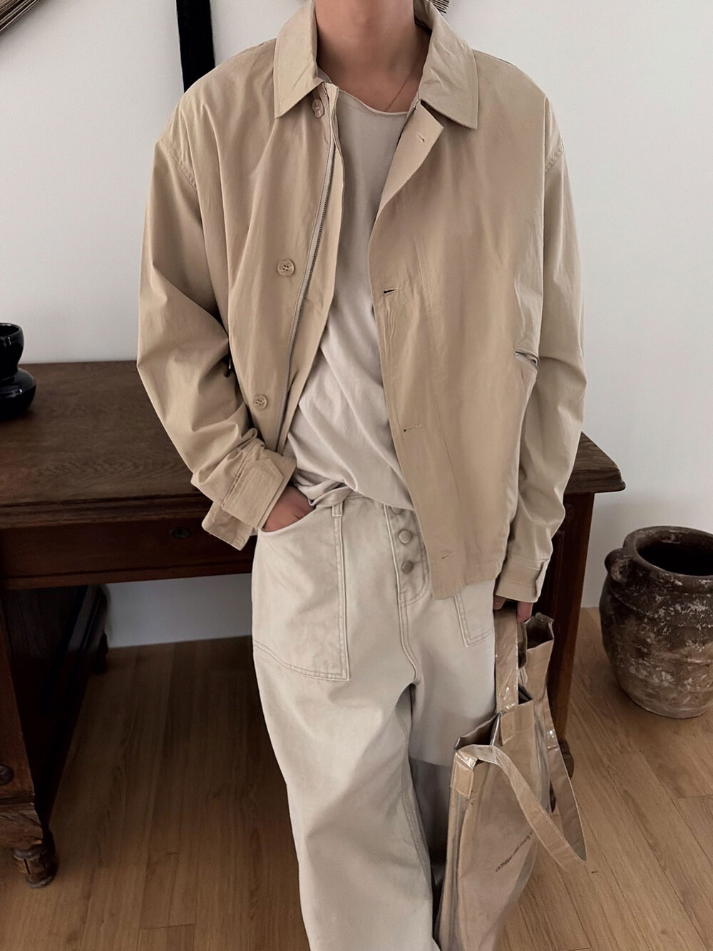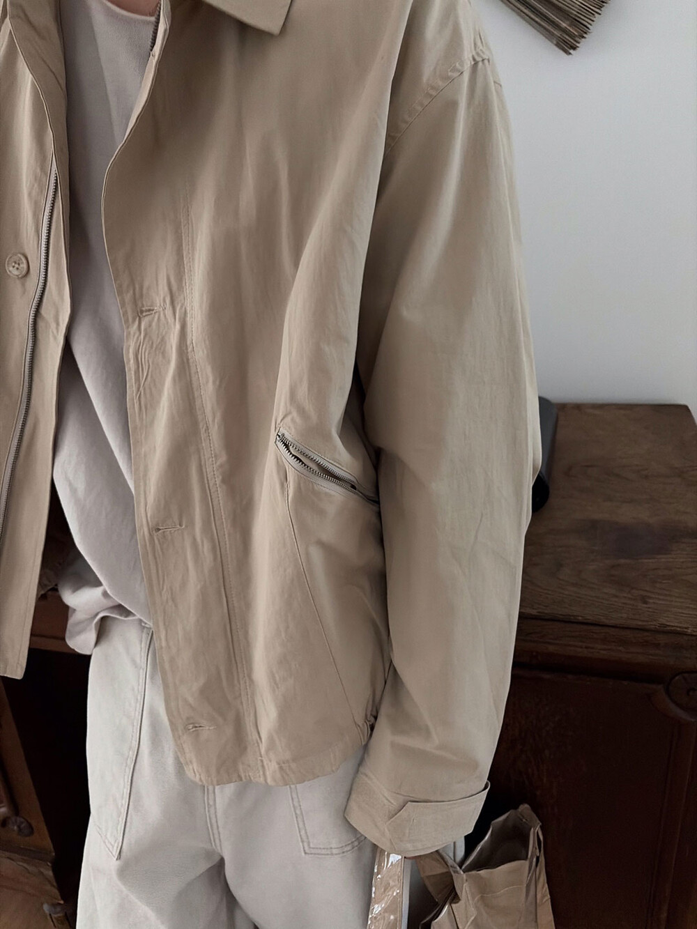 Slant pocket cotton jacket