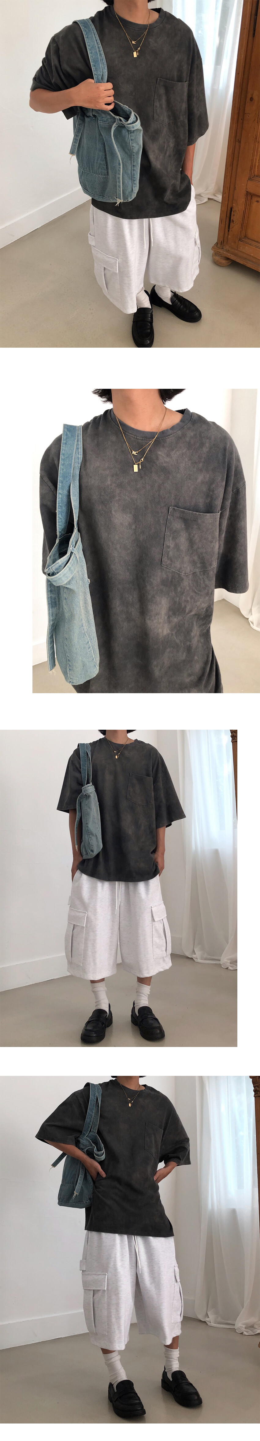 오버한 실루엣의 반팔 티셔츠