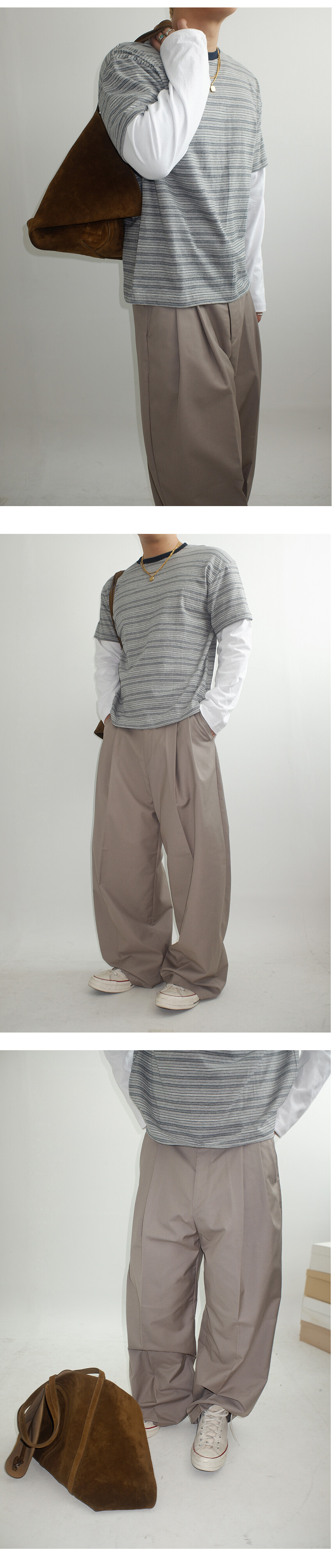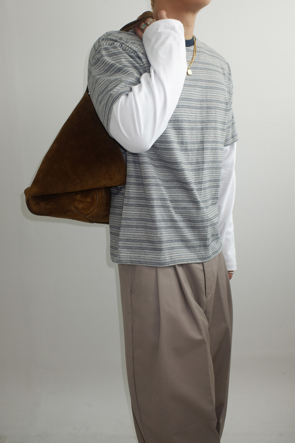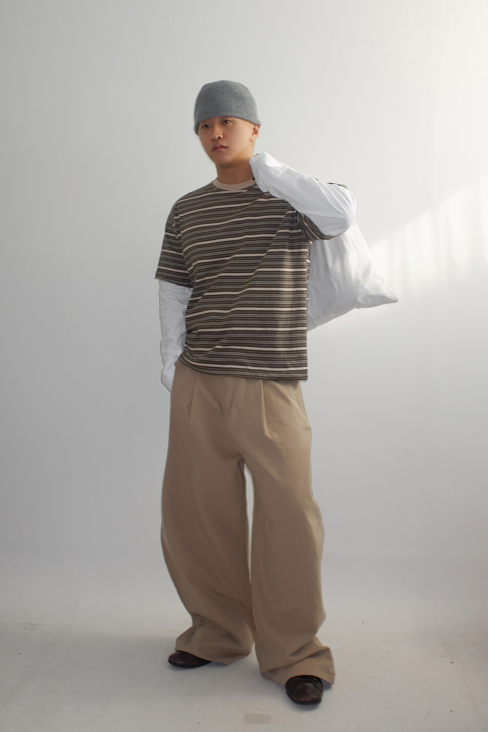 캐주얼한 무드의 스트라이프 짜임을 베이스로단조롭지 않은 표면감을 더했으며,데일리하게 부담 없이 매치하기 좋은 아이템입니다.