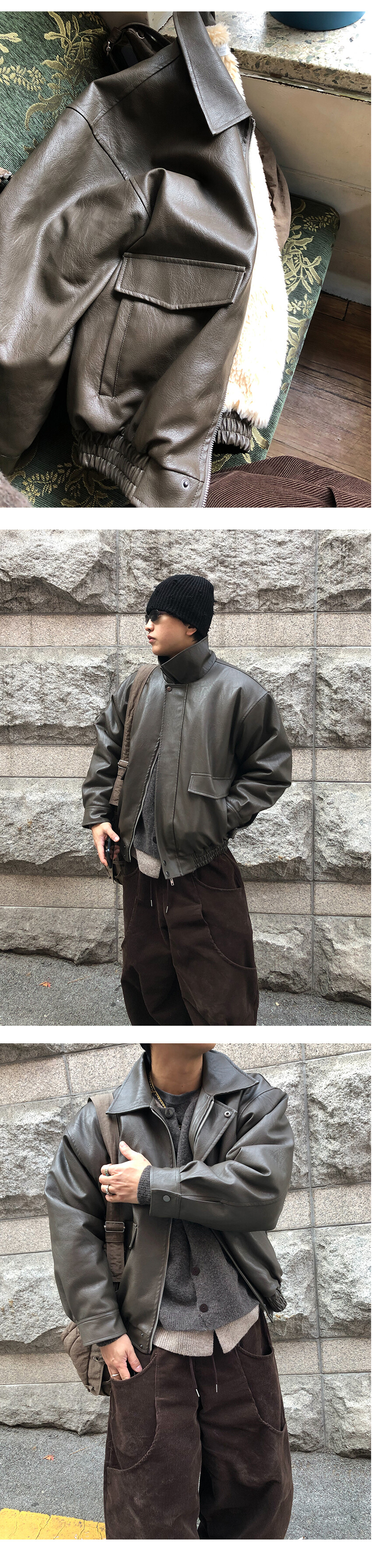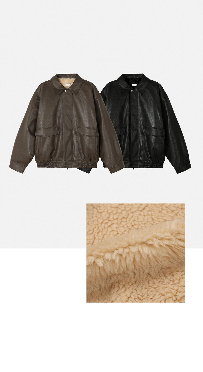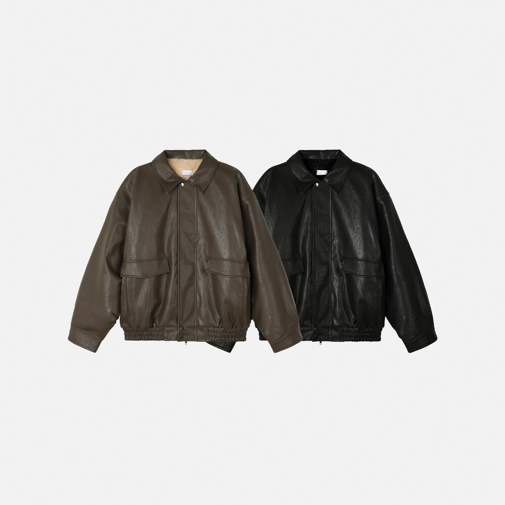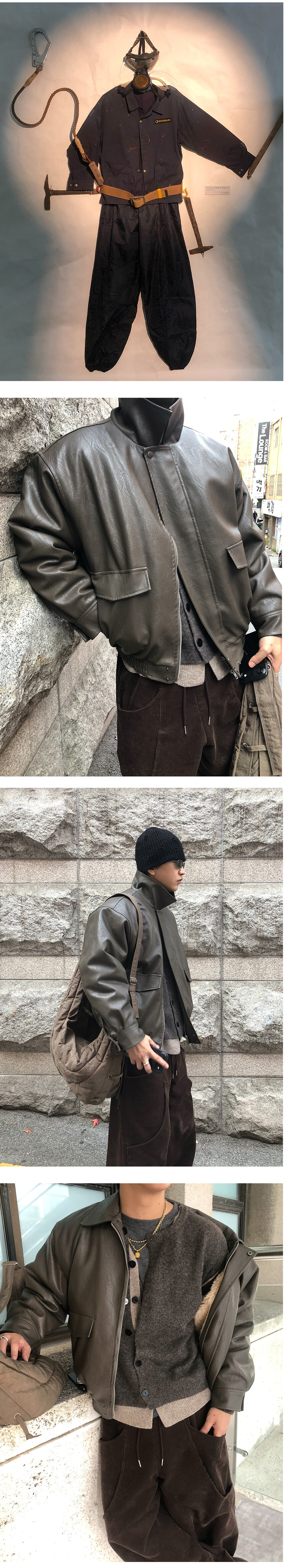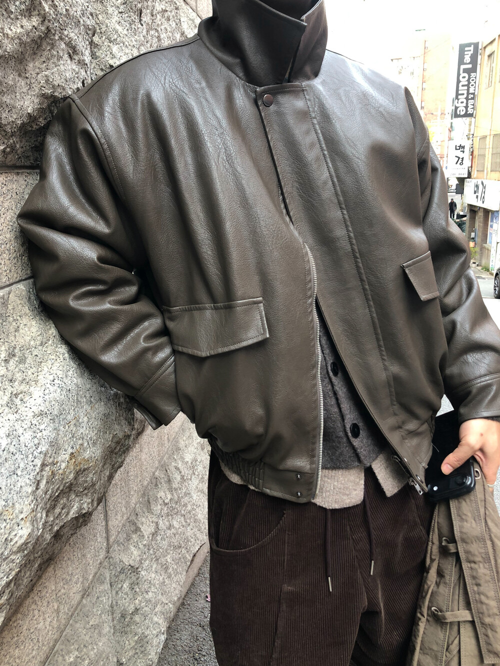 비행사 무드를 모티브로 제작된 레더 자켓입니다.