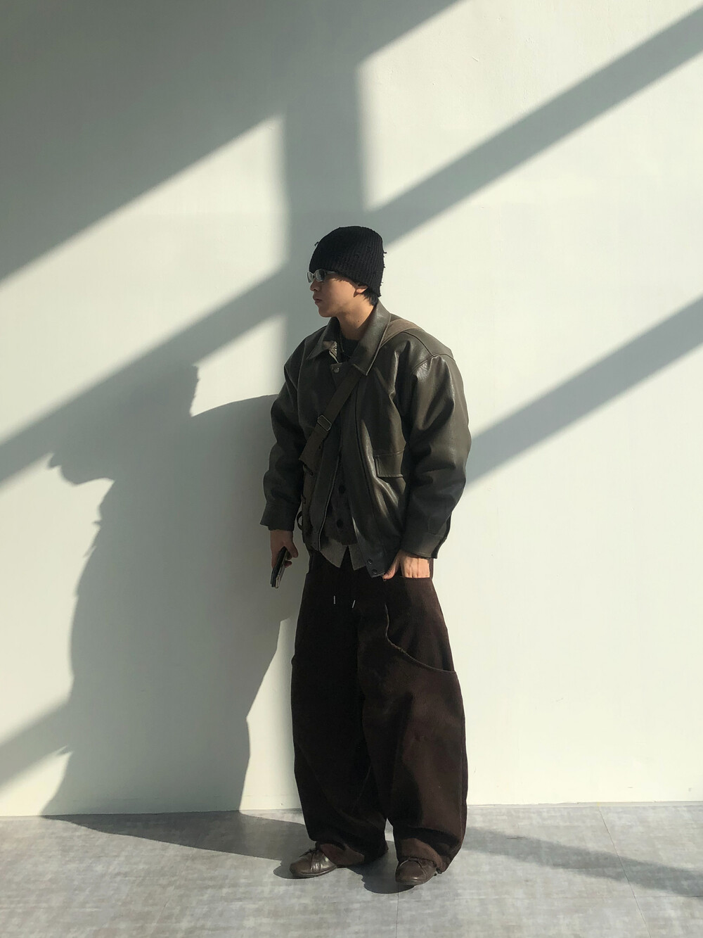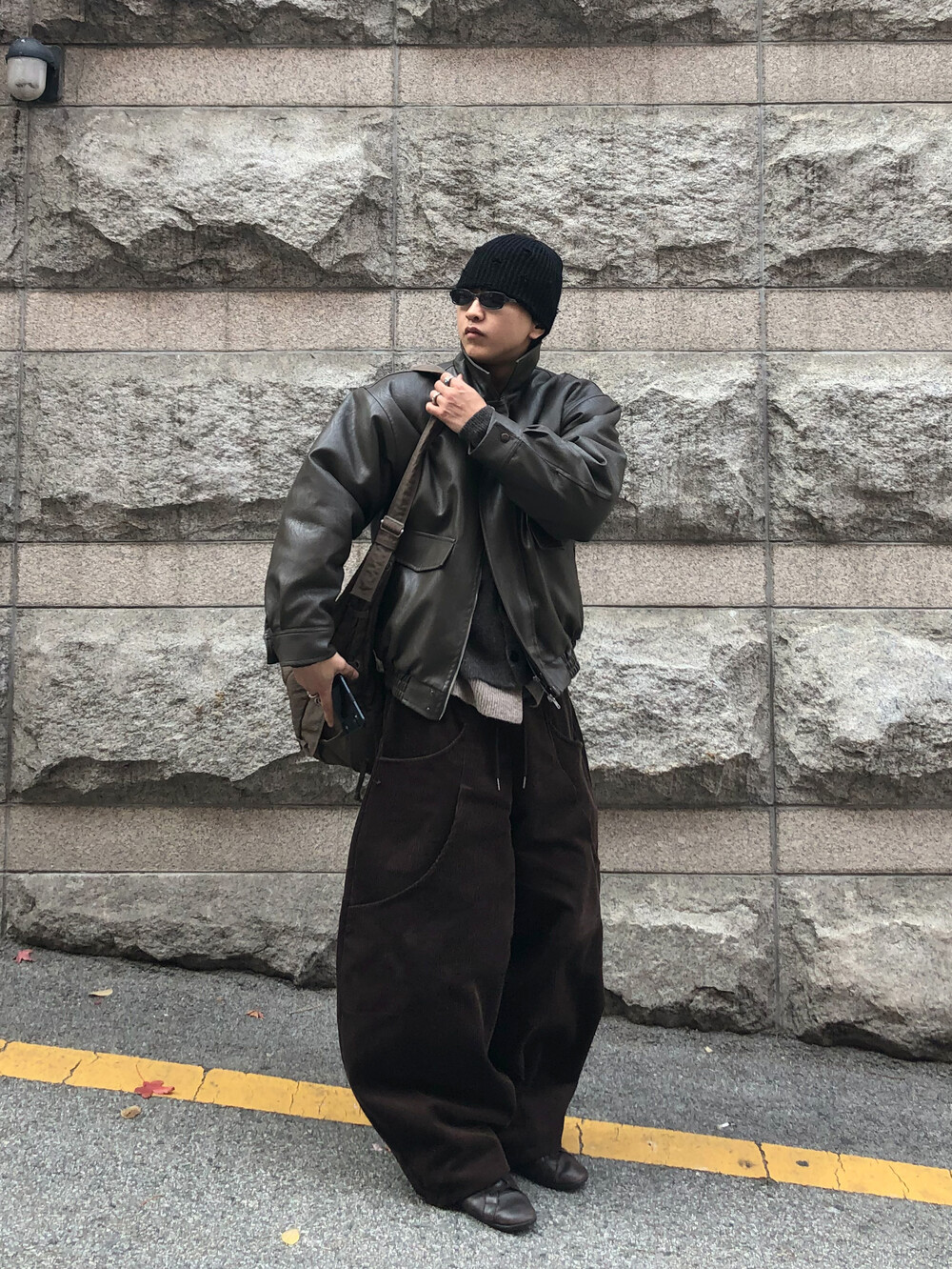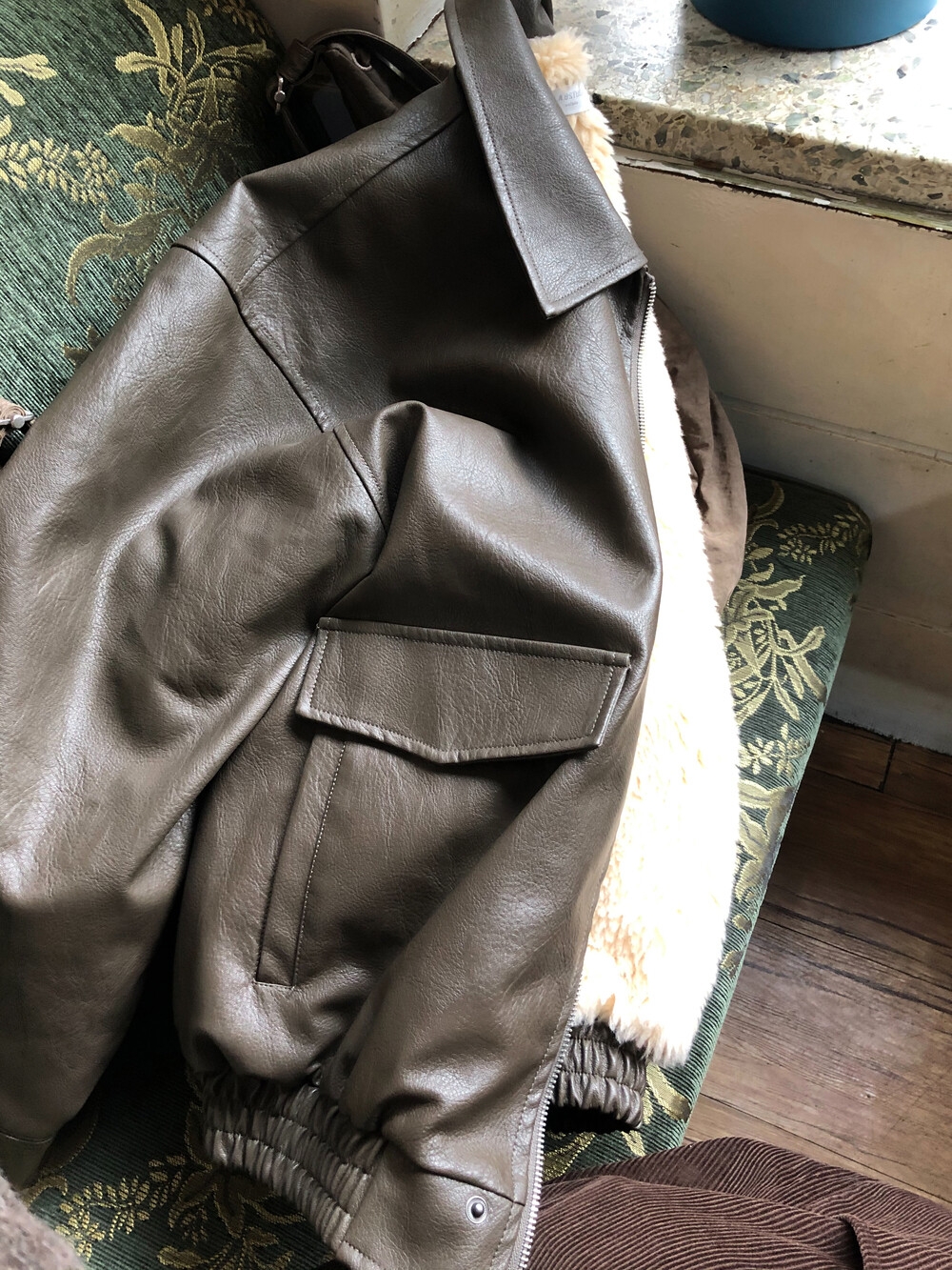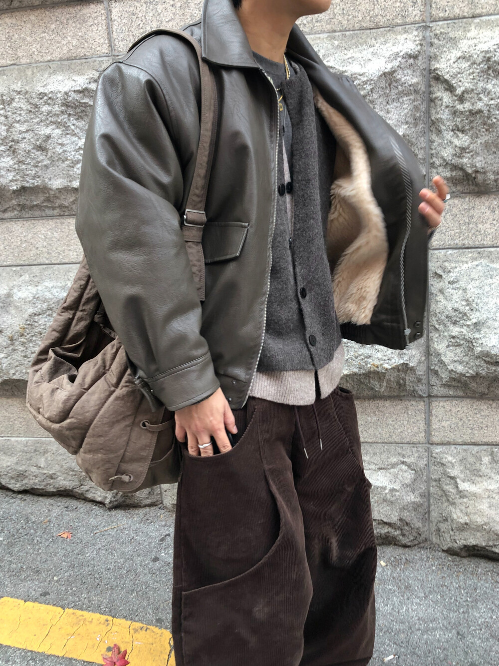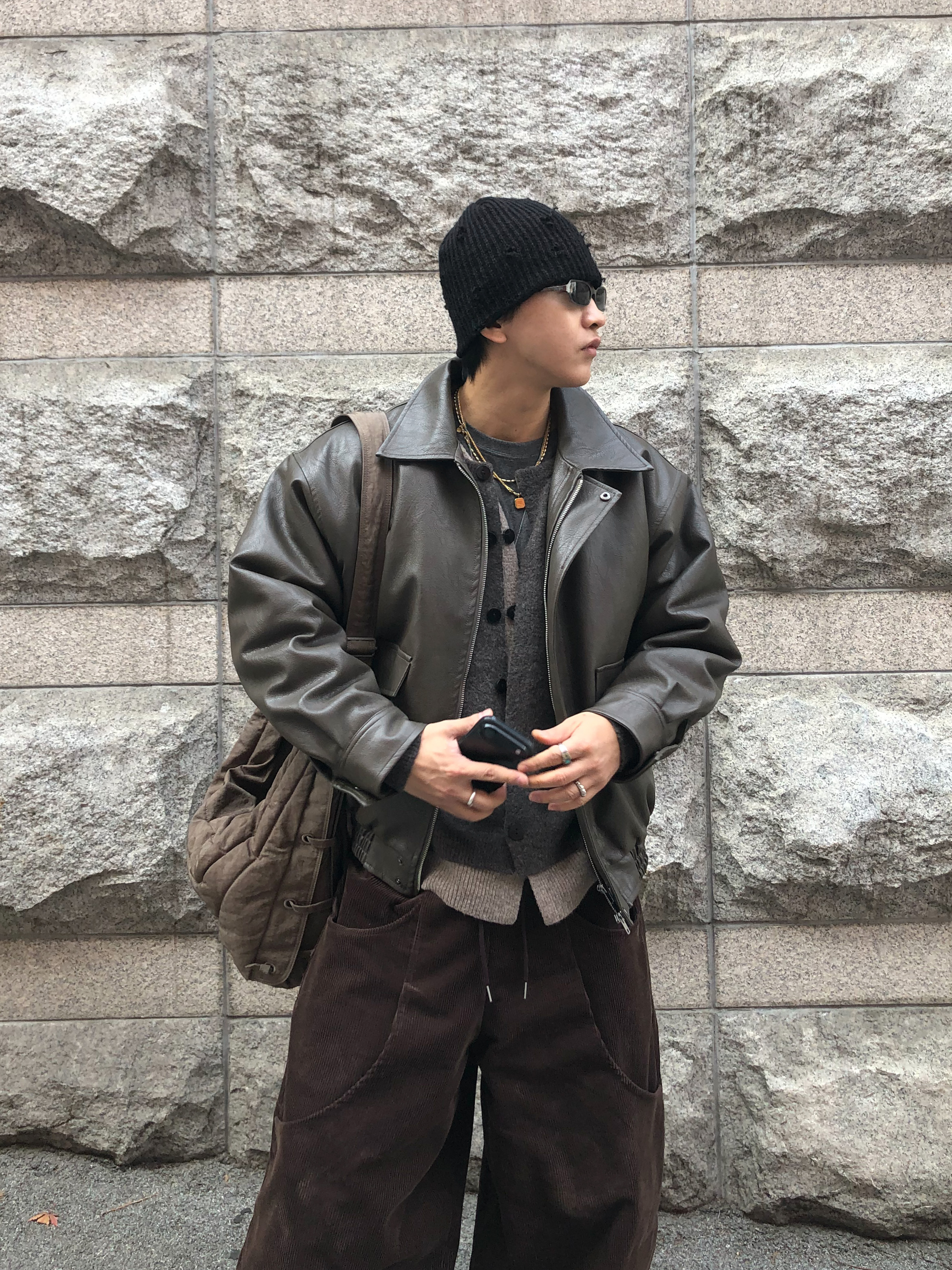 비행사 무드를 모티브로 제작된 레더 자켓입니다.