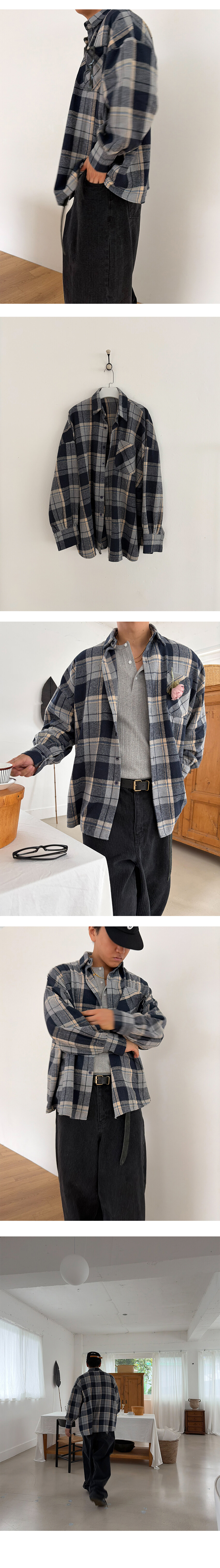 woolen check over shirts (navy)