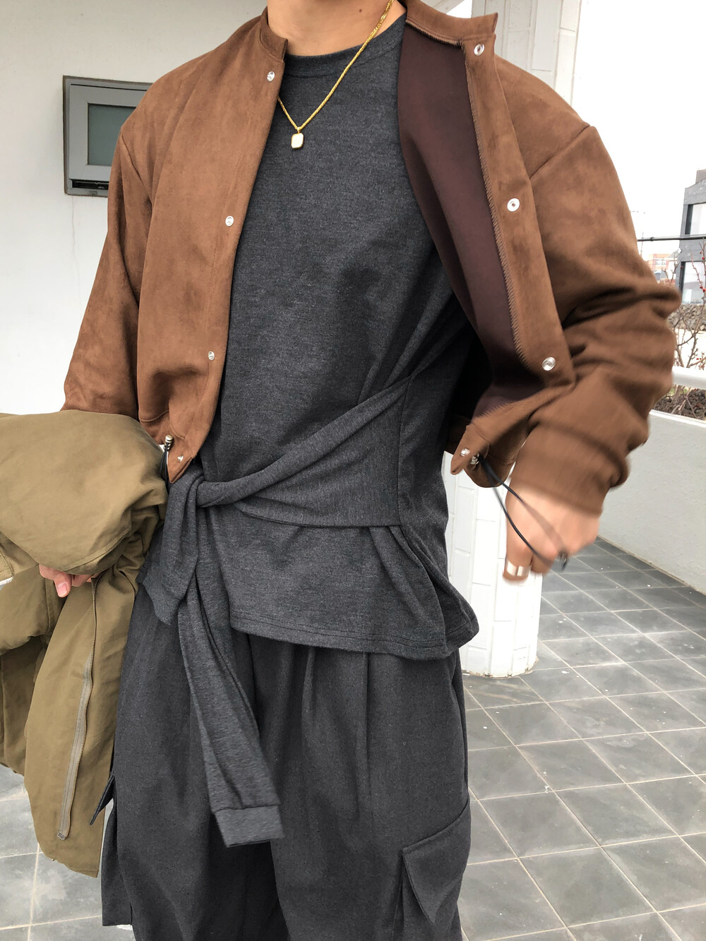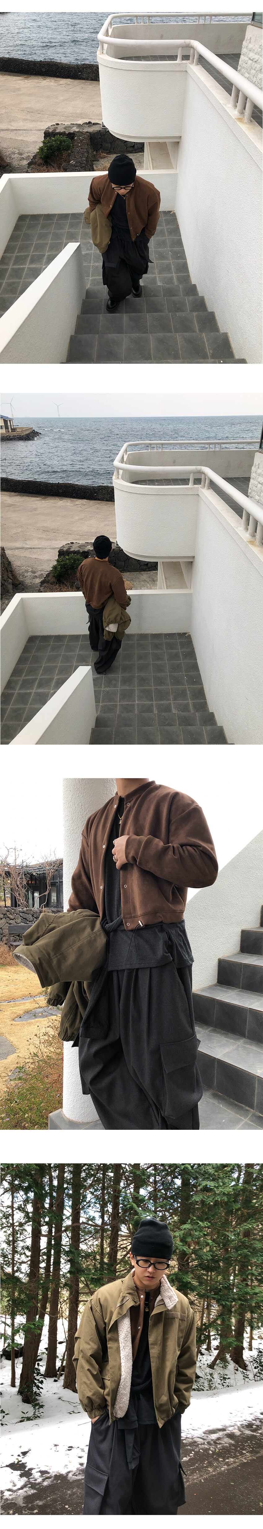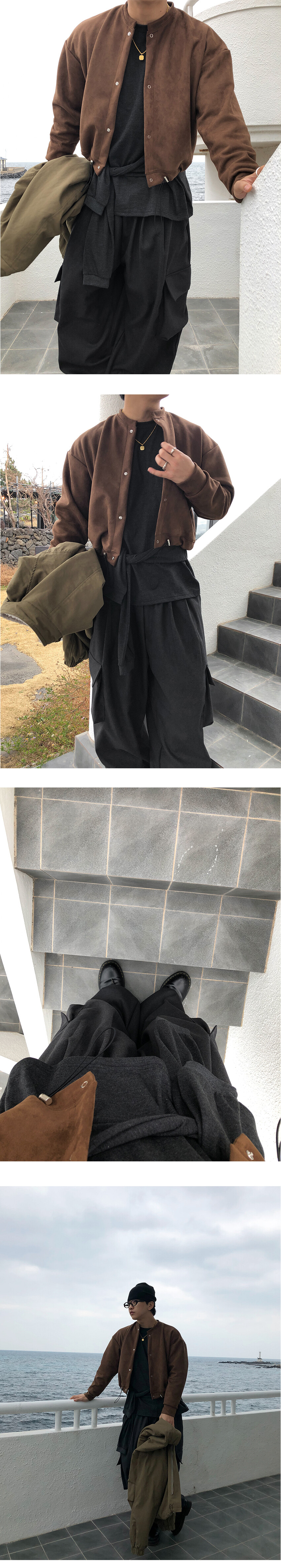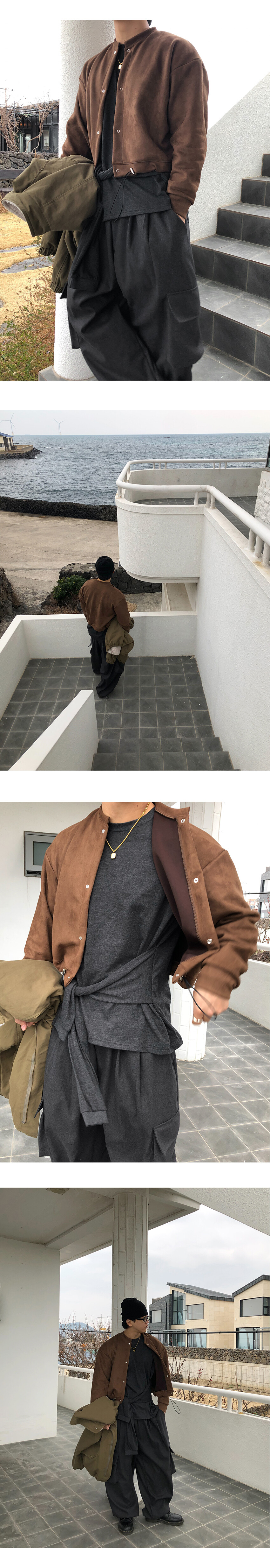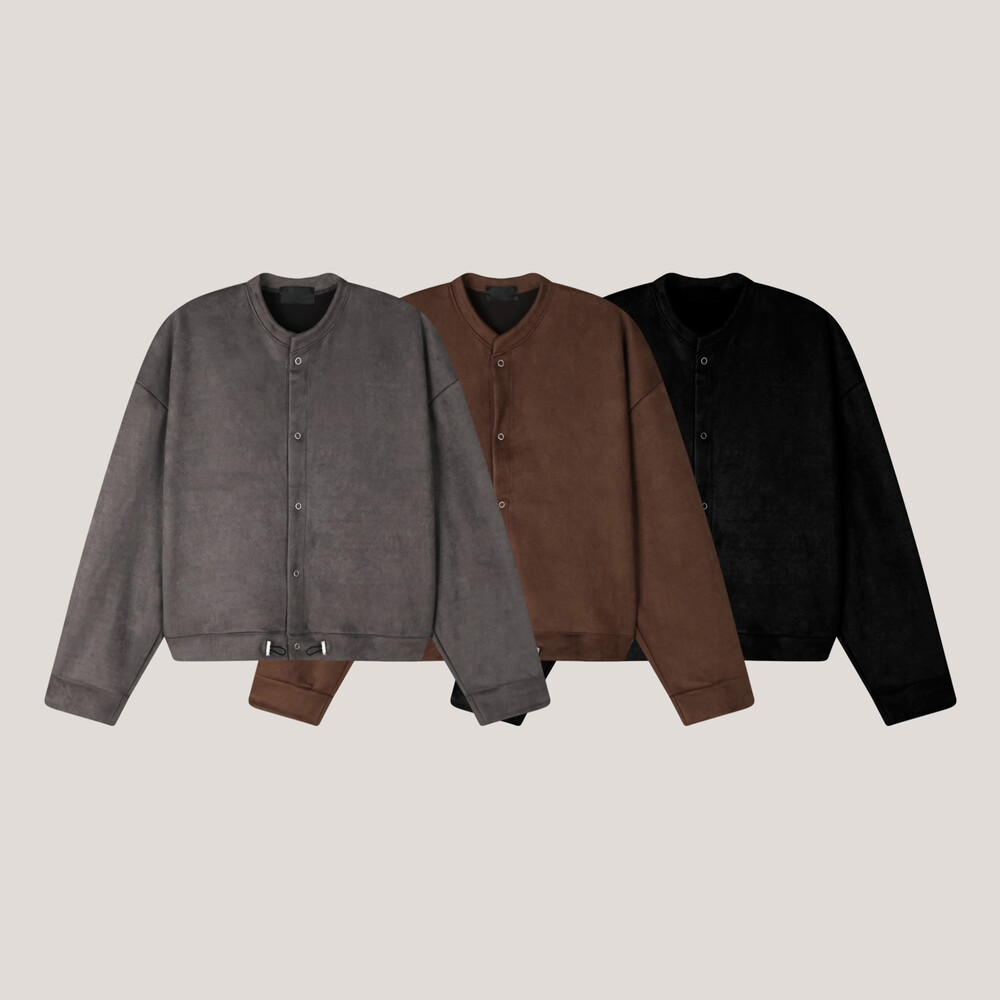 부드러운 스웨이드 텍스처가 더해져 차분하면서도 고급스러운 무드를 연출해 주며, 크롭한 실루엣으로 다양한 하의와 균형 있게 매치됩니다.