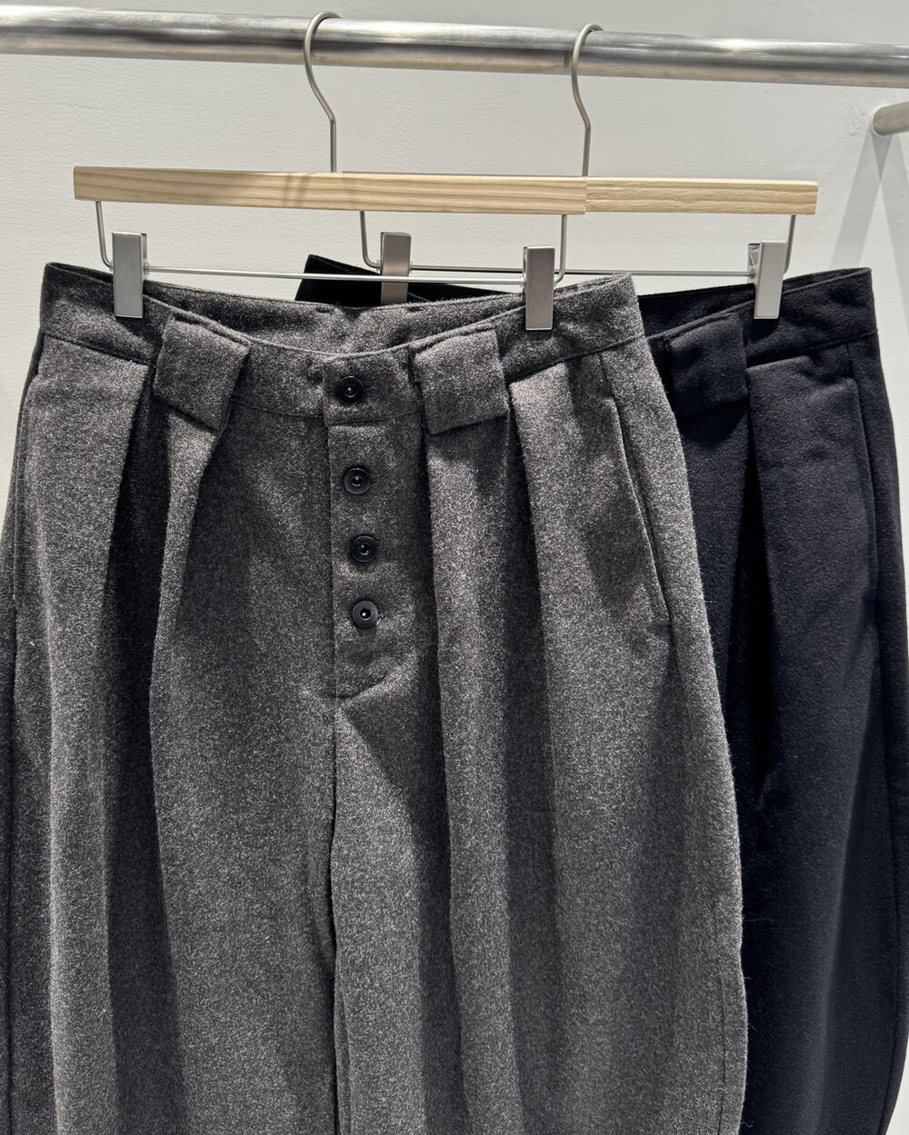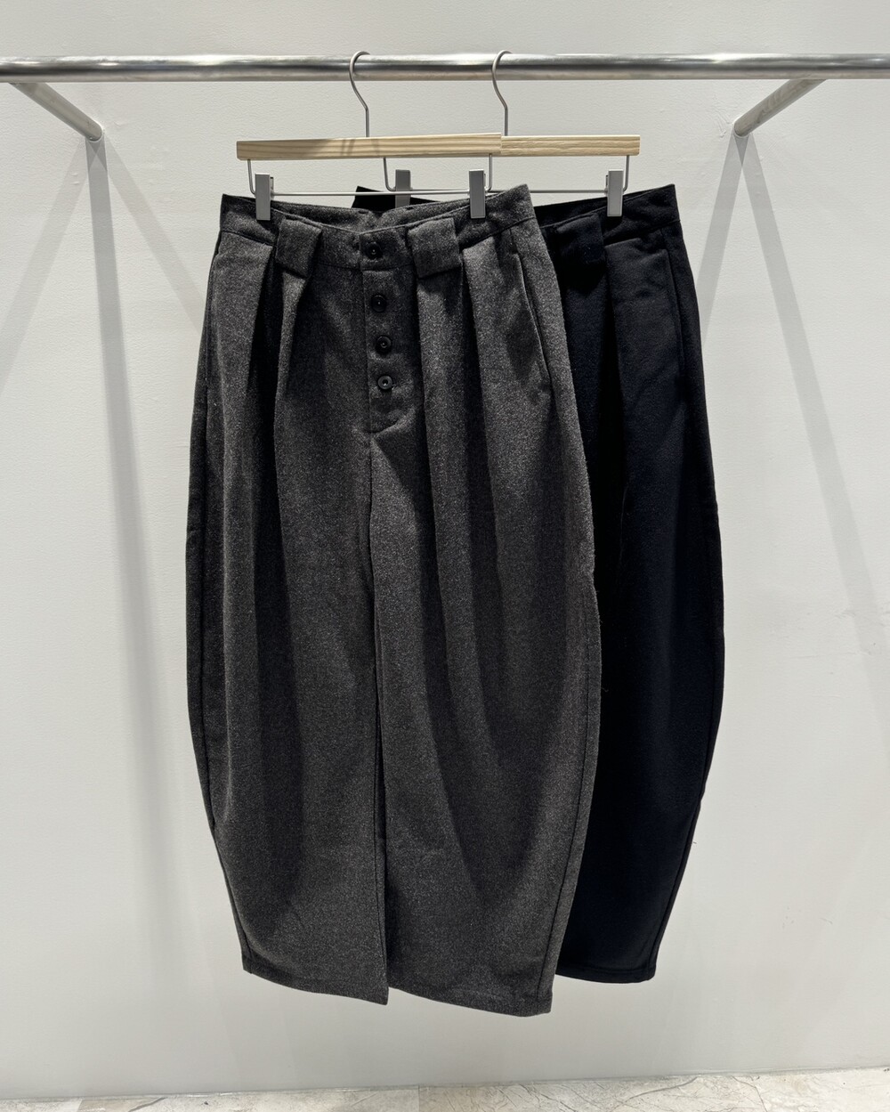 울 혼방의 도톰한 두께감의 슬랙스