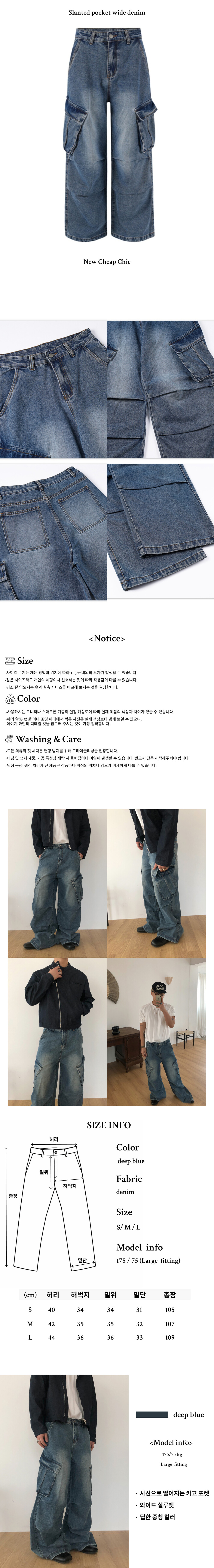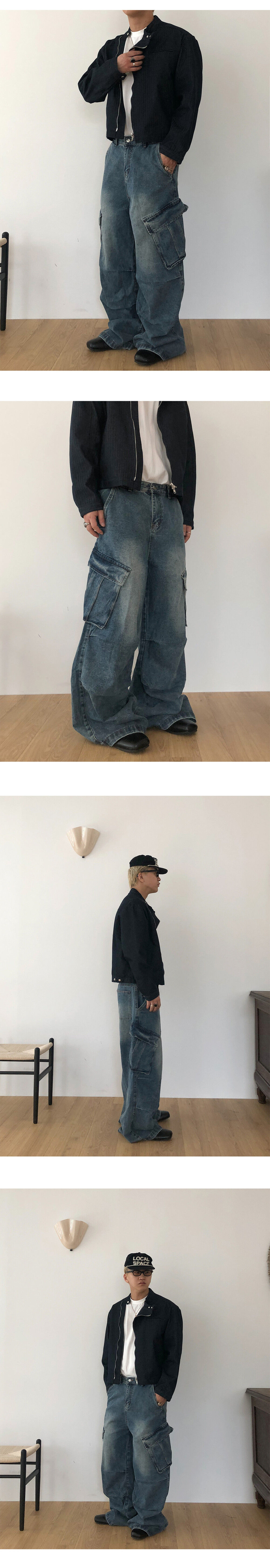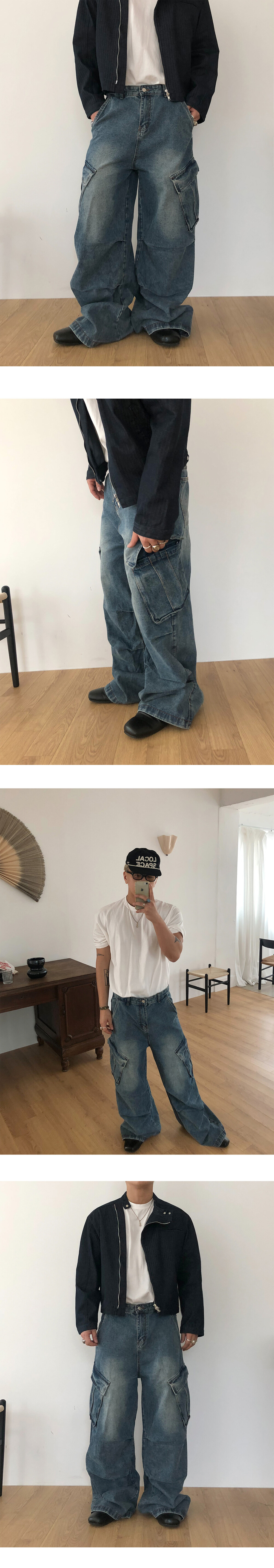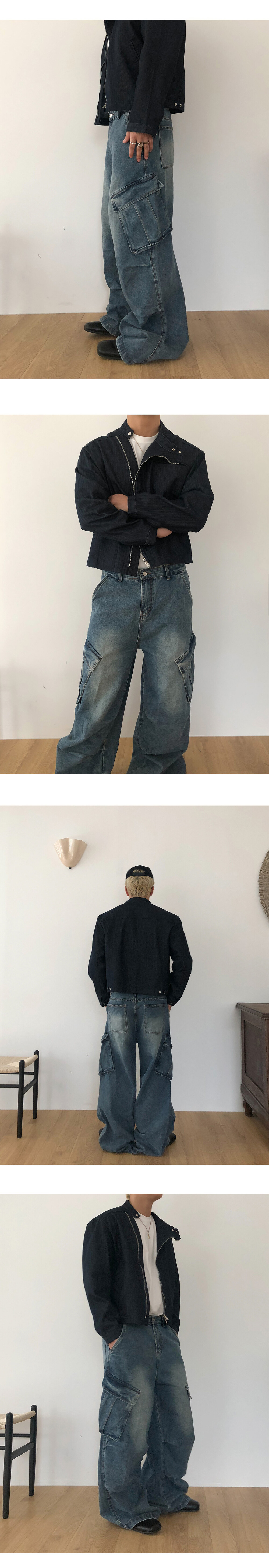 Slanted pocket wide denim
