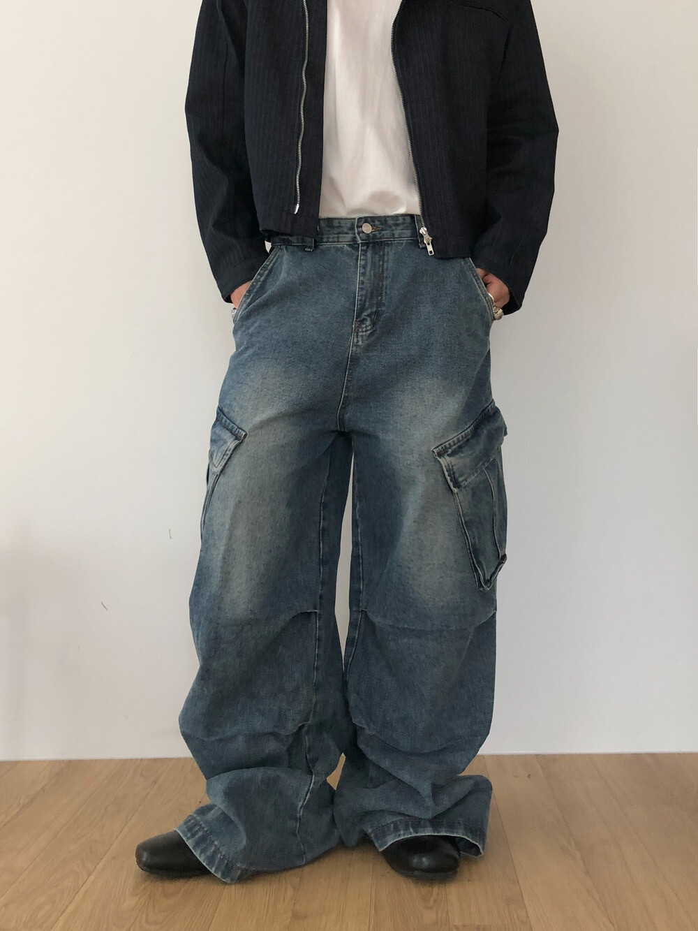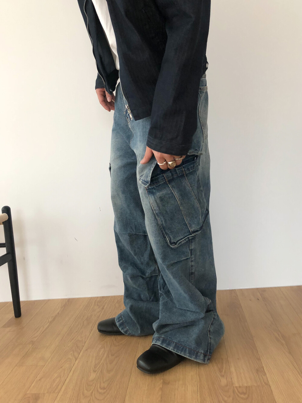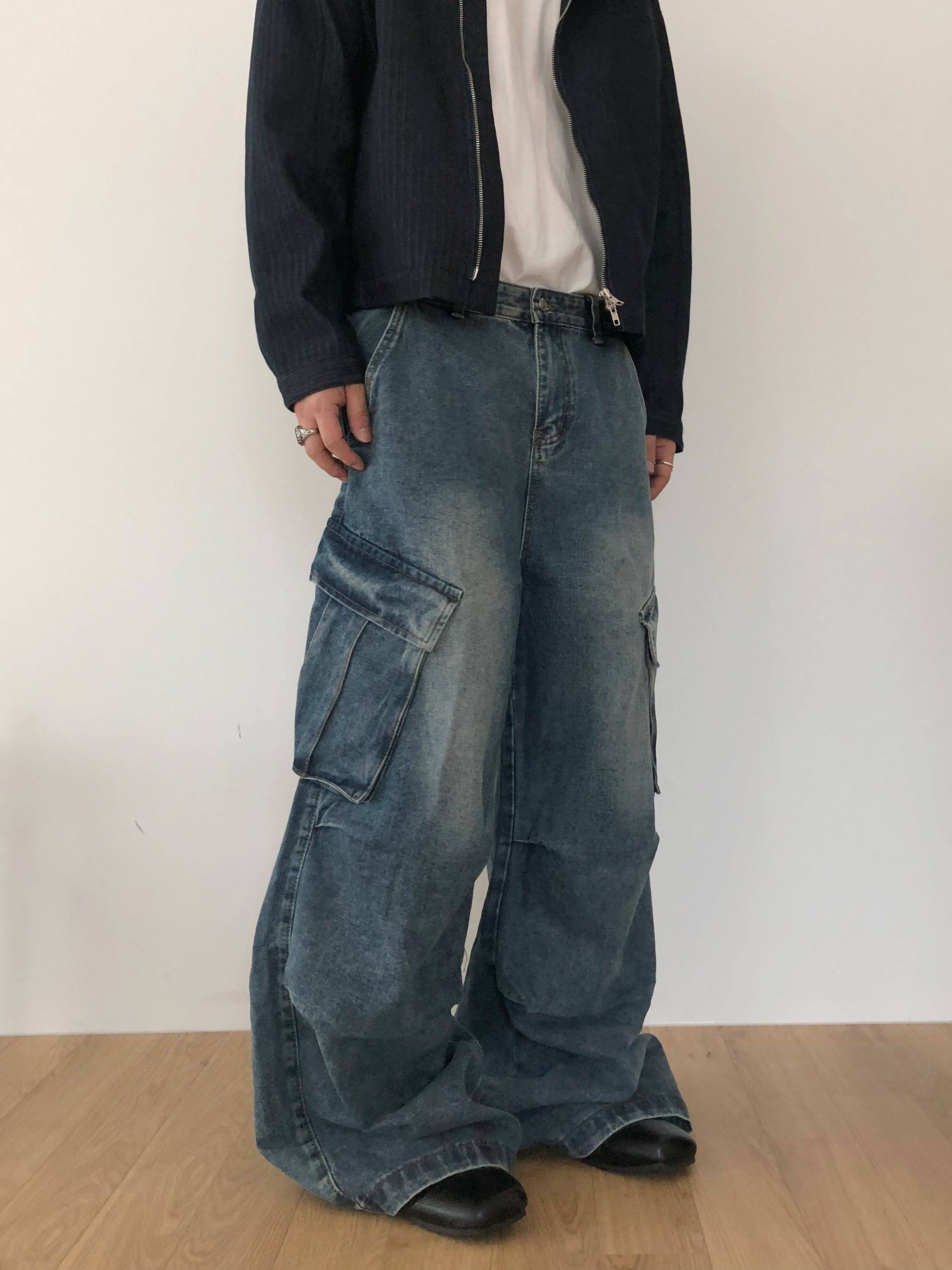 Slanted pocket wide denim