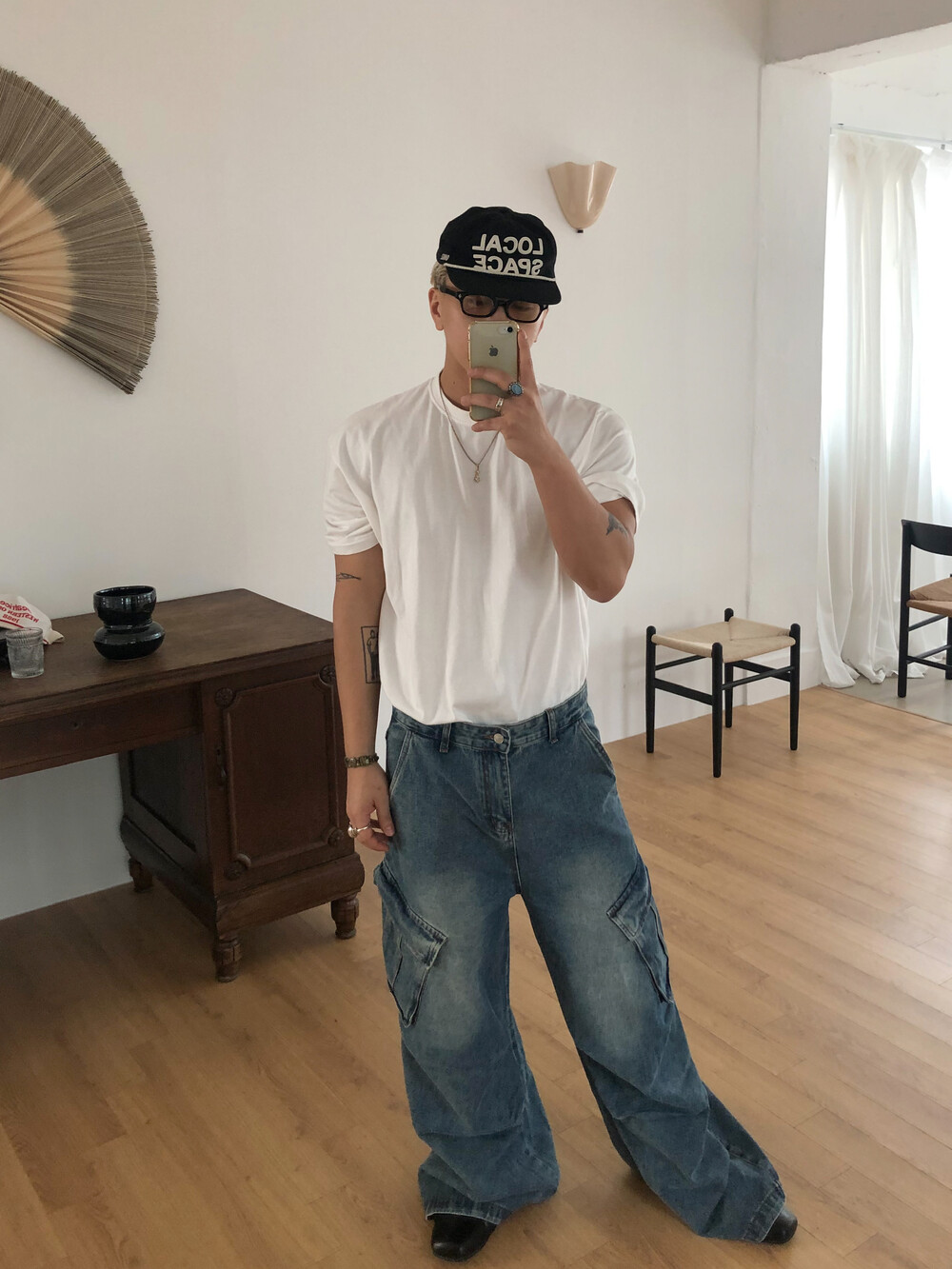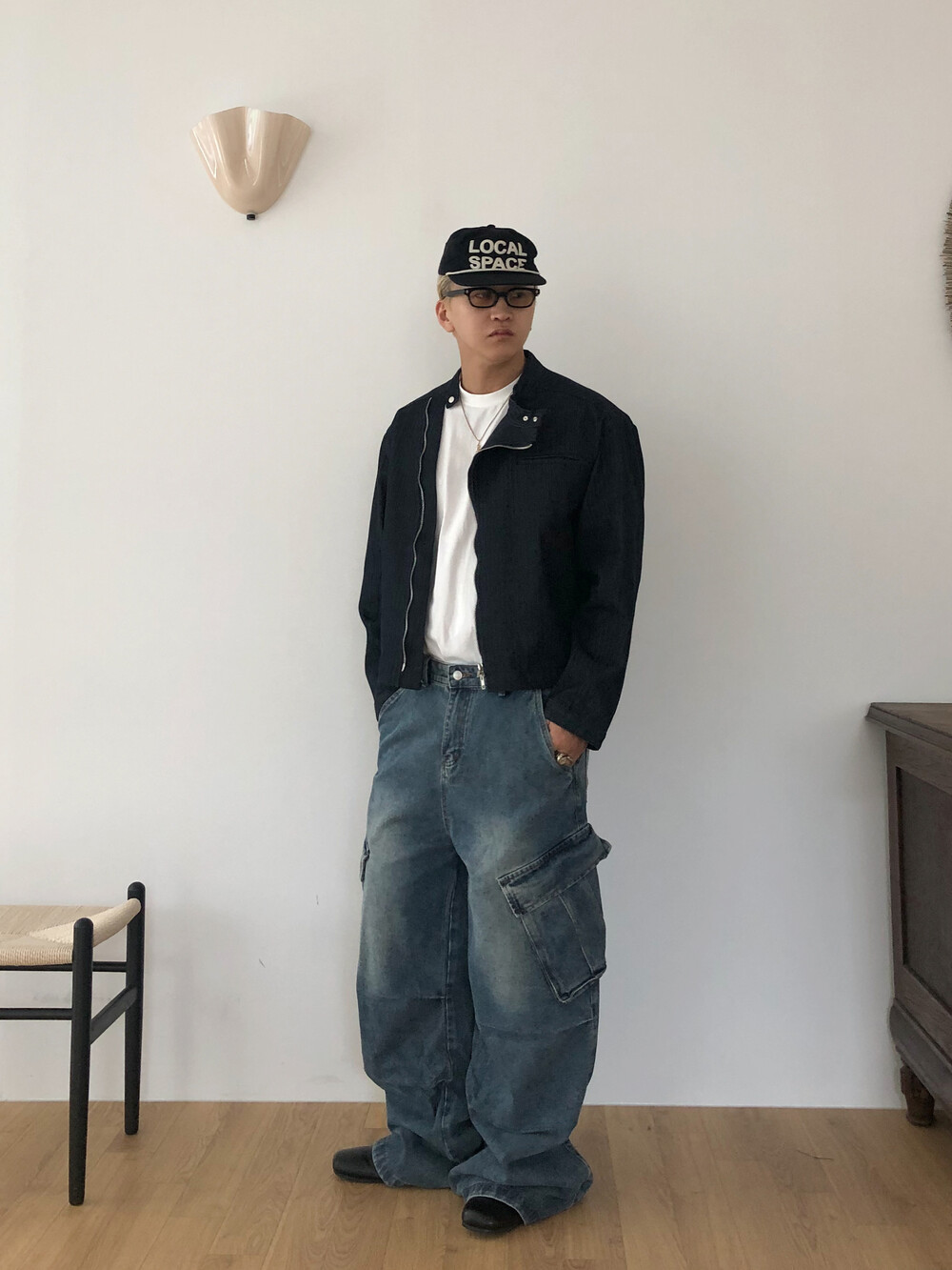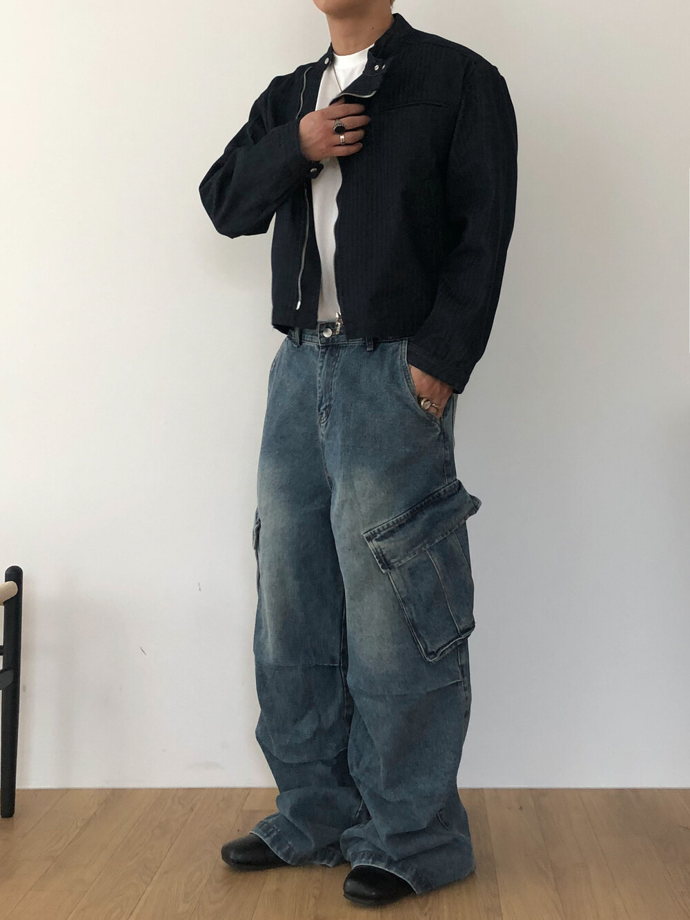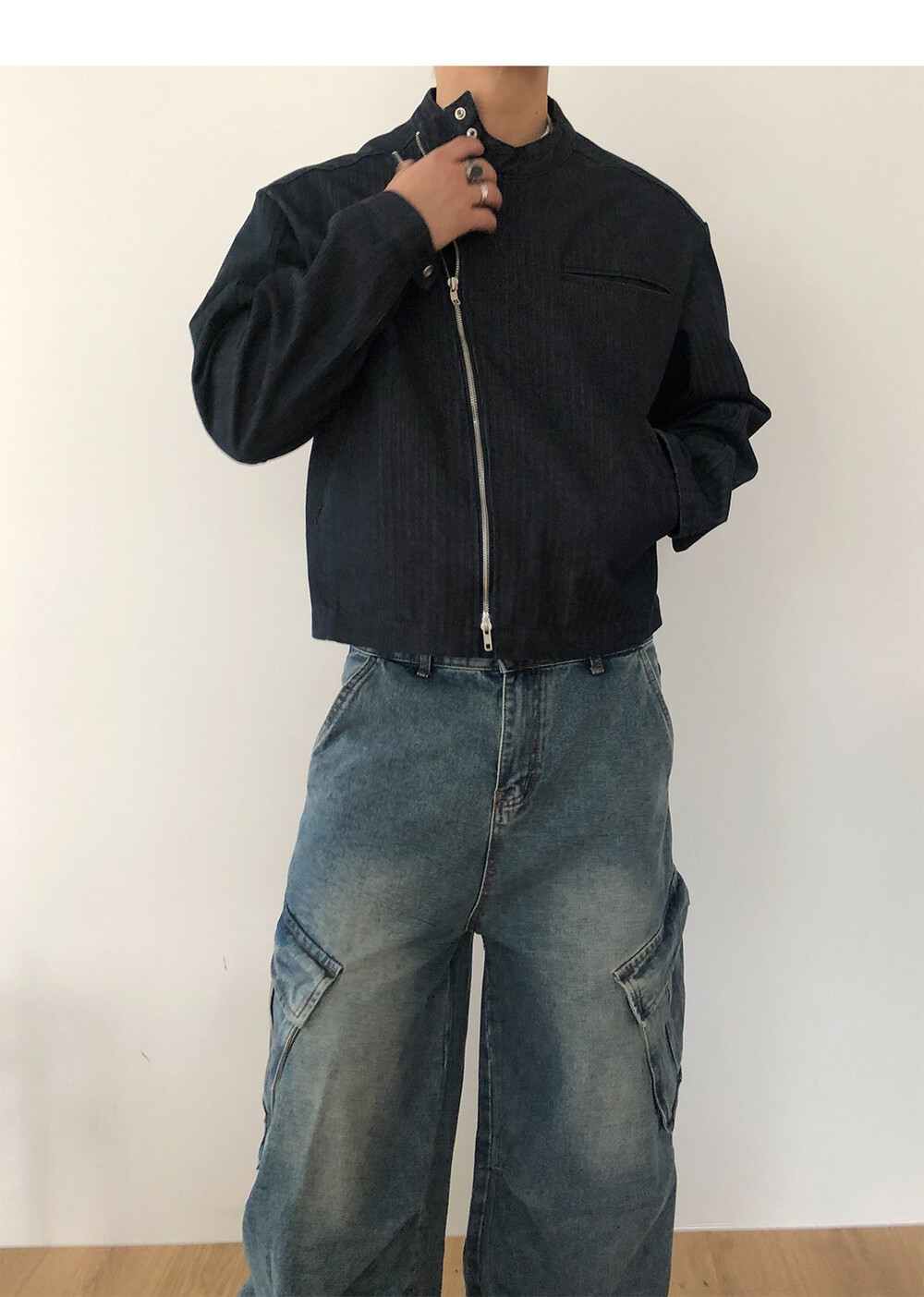 Slanted pocket wide denim