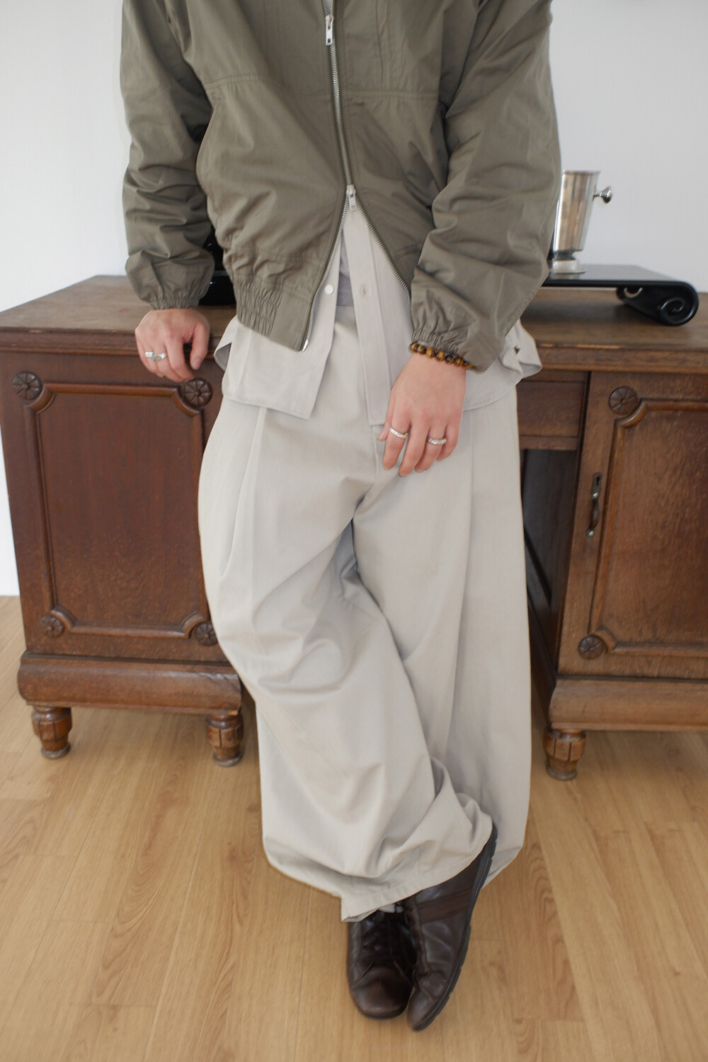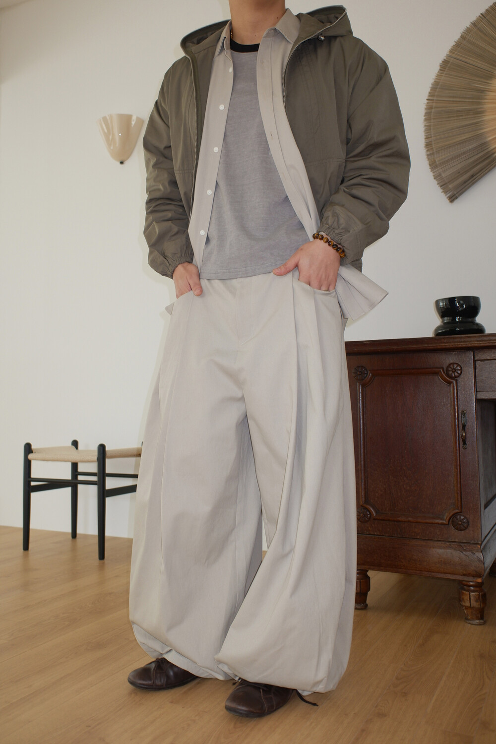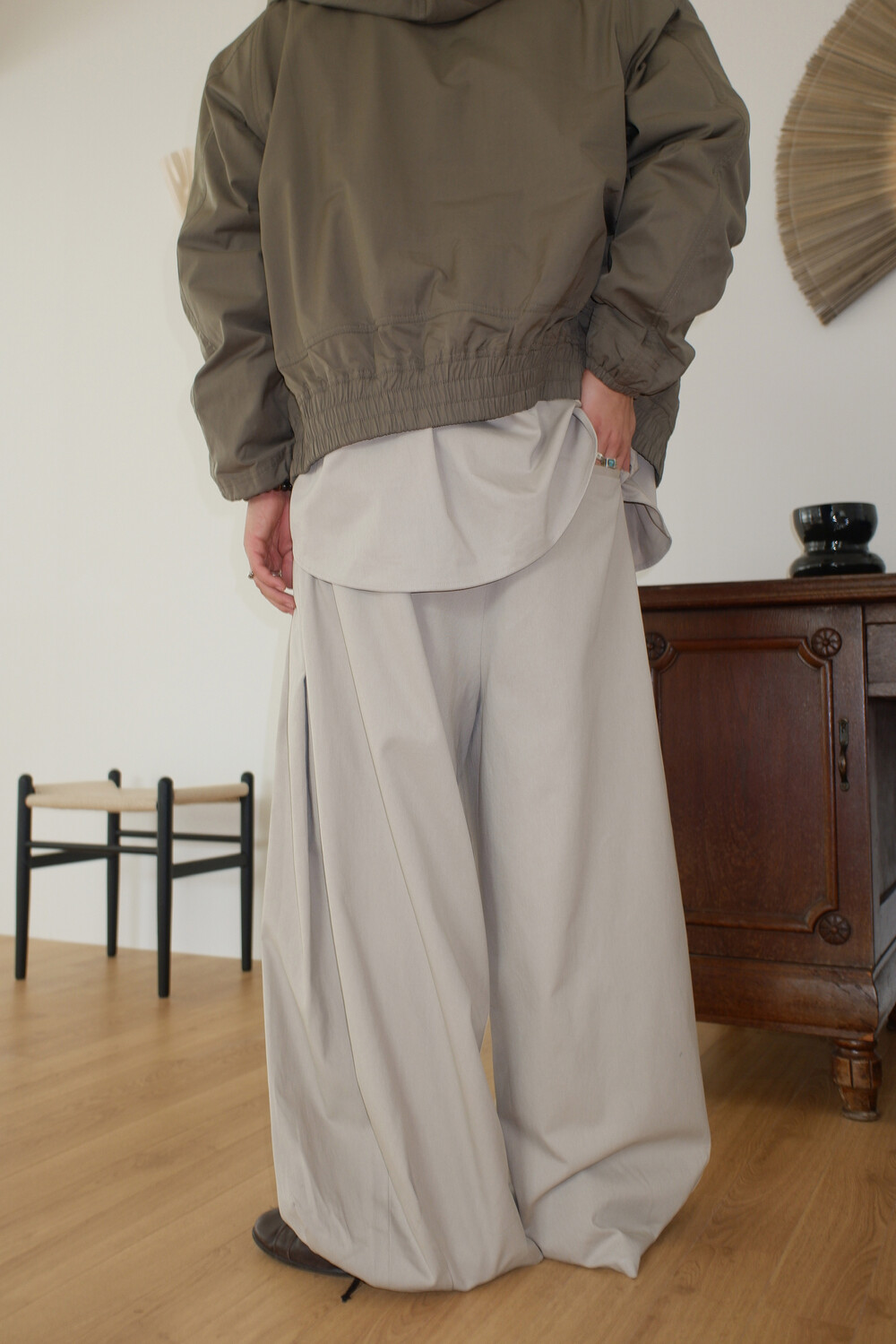Washed balloon cotton trousers