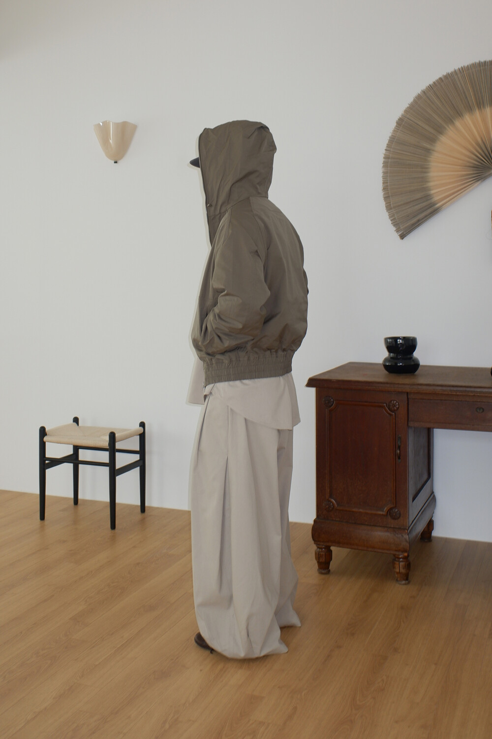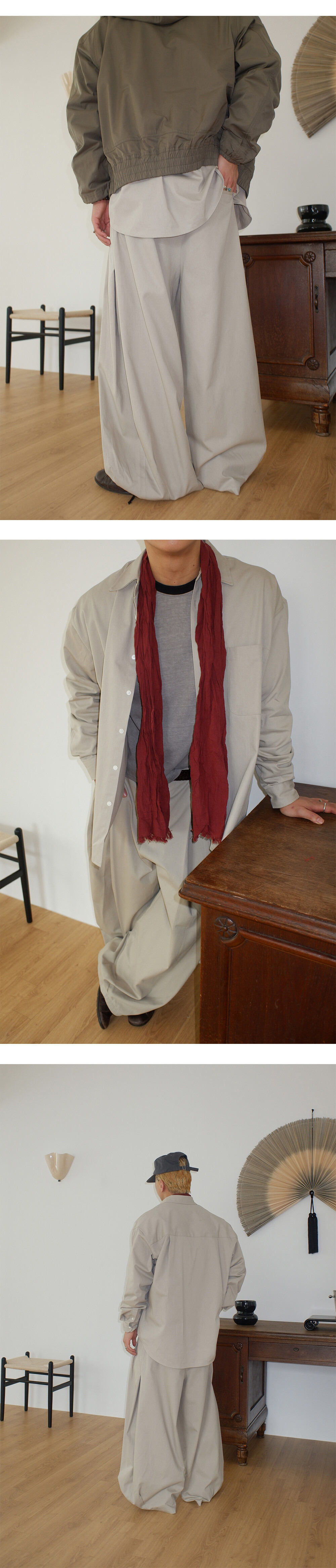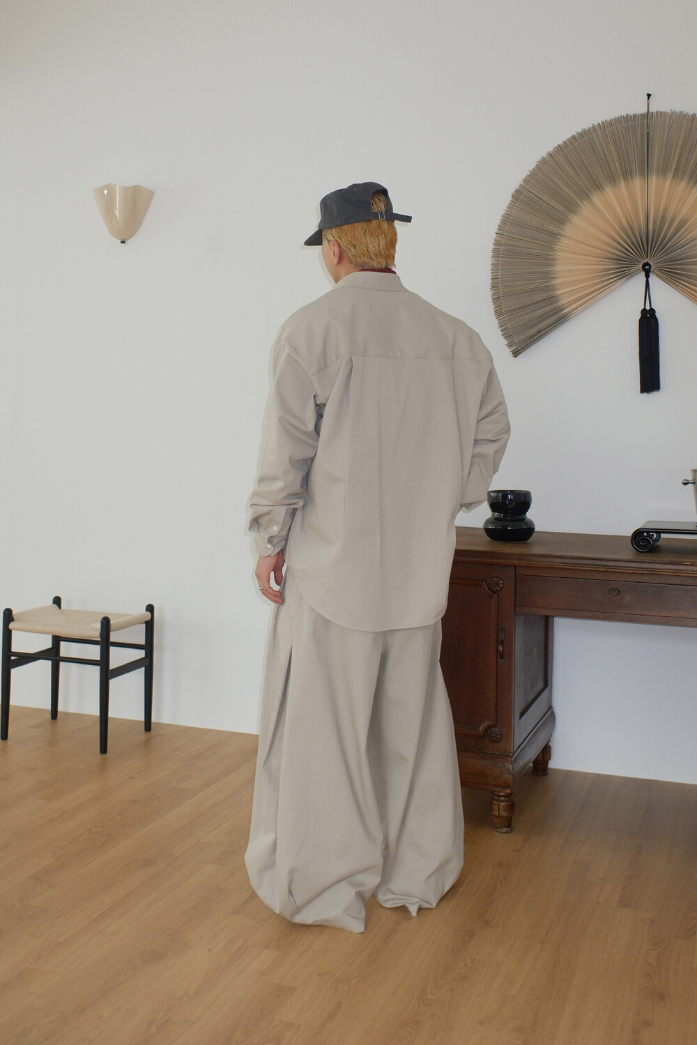 Washed balloon cotton trousers