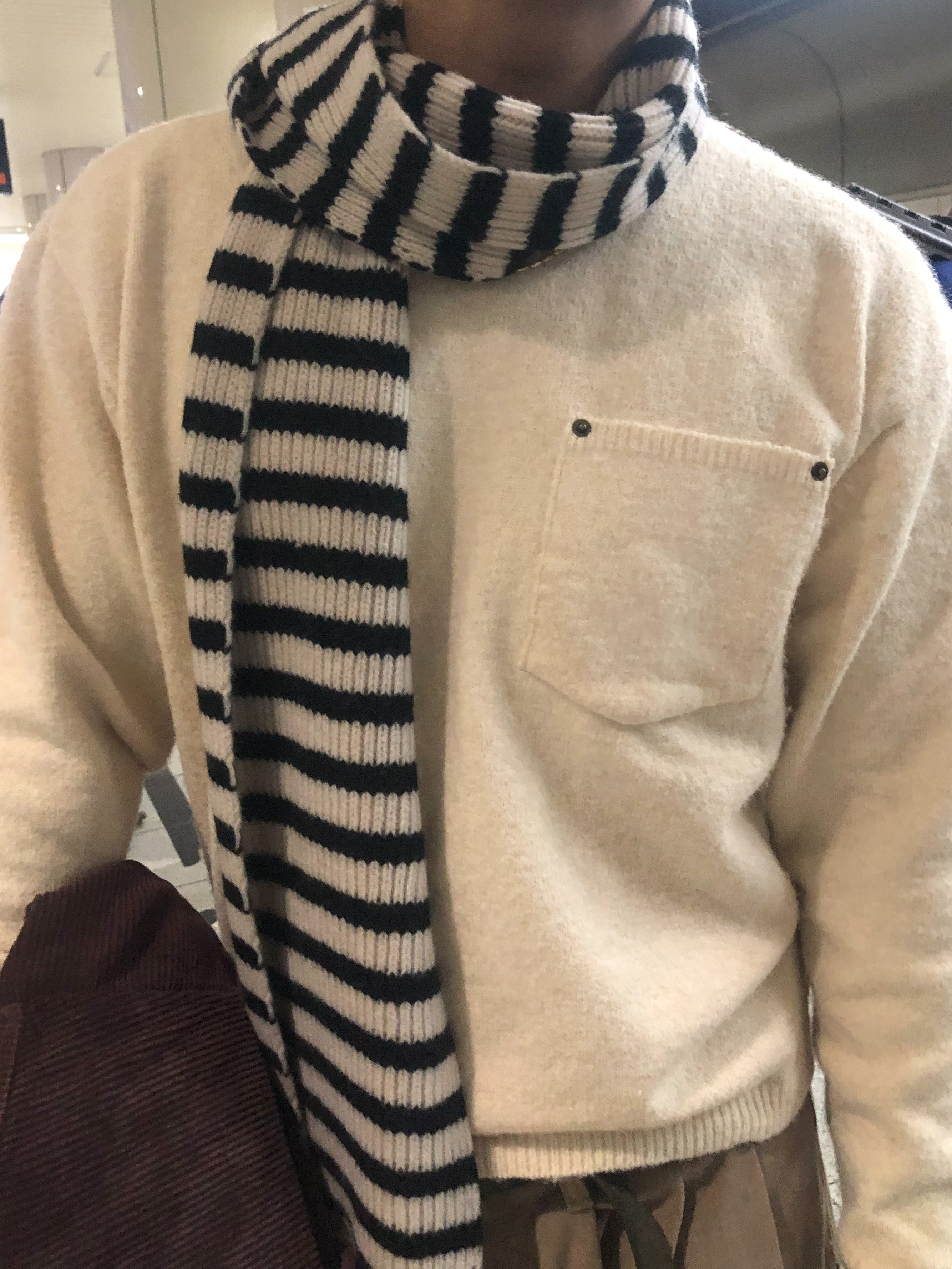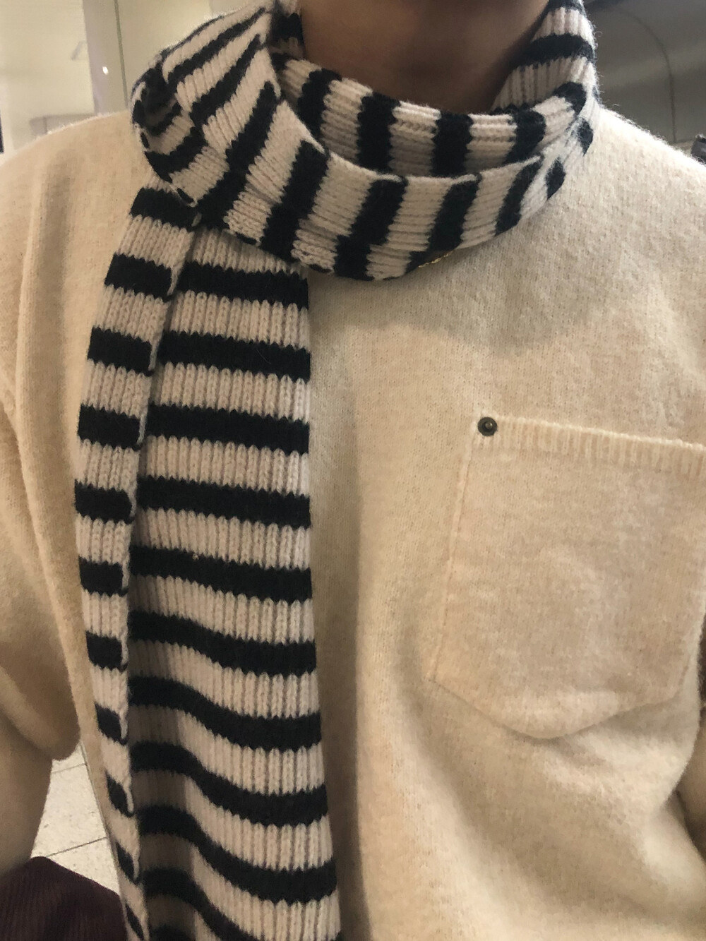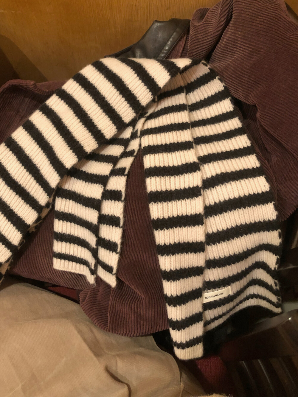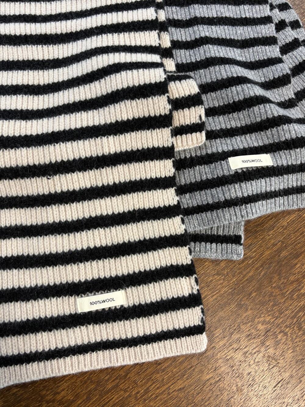 울 블렌드 원사로 짜여 부드럽고 포근한 착용감을 제공하며, 자연스럽게 들어간 스트라이프 패턴은 포인트가 되어 줍니다.