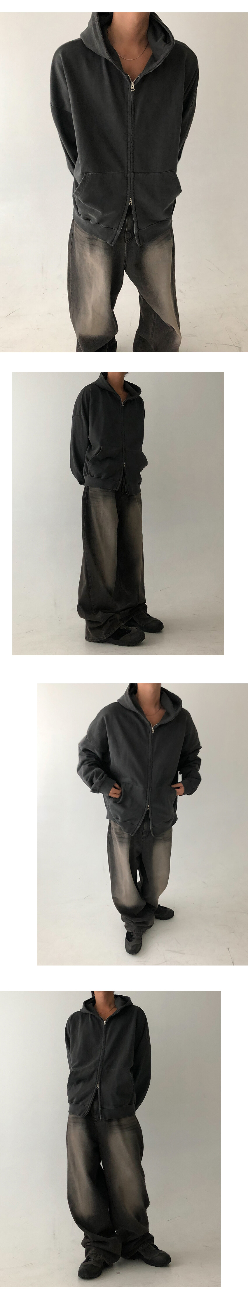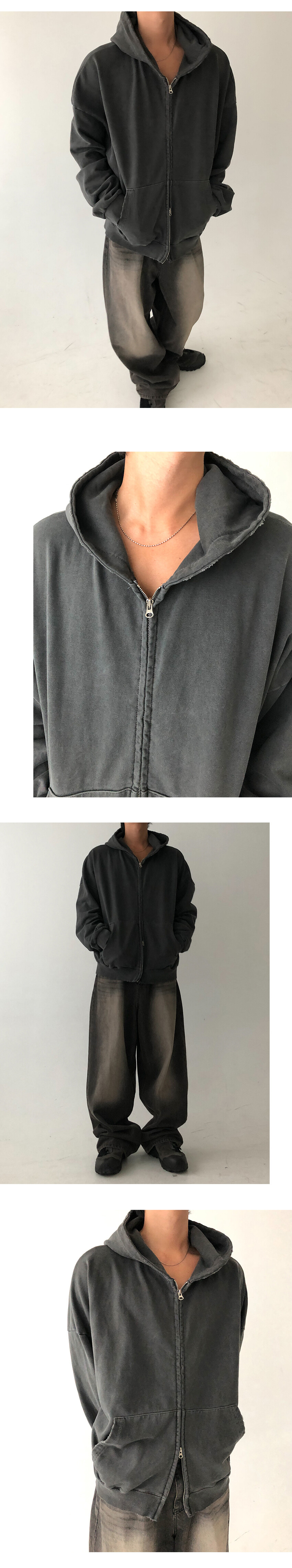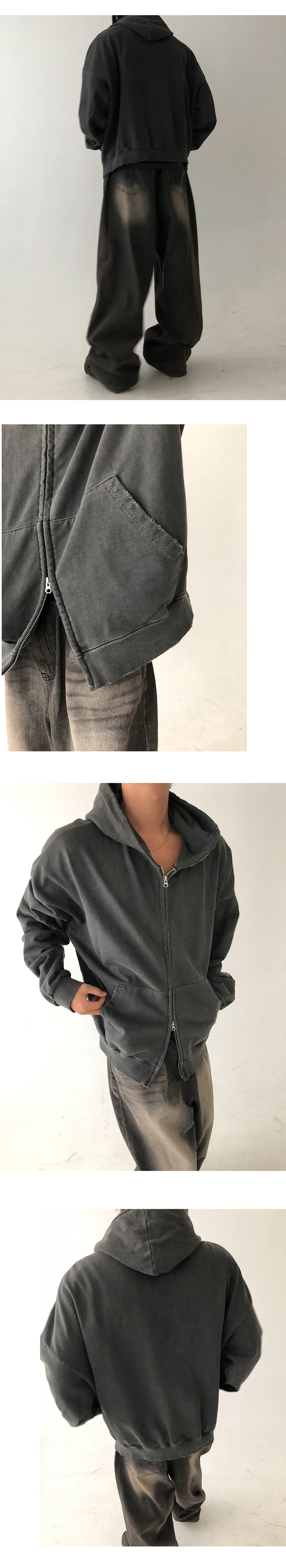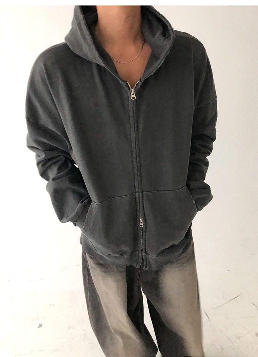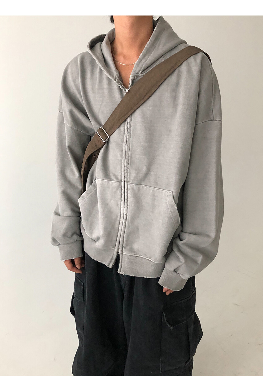 damaged pigment hood zip up