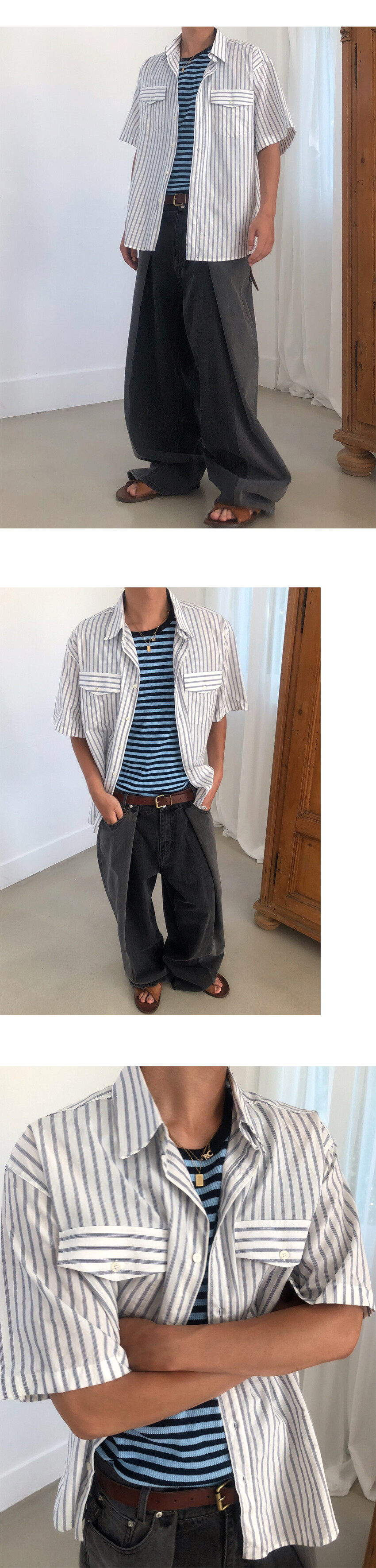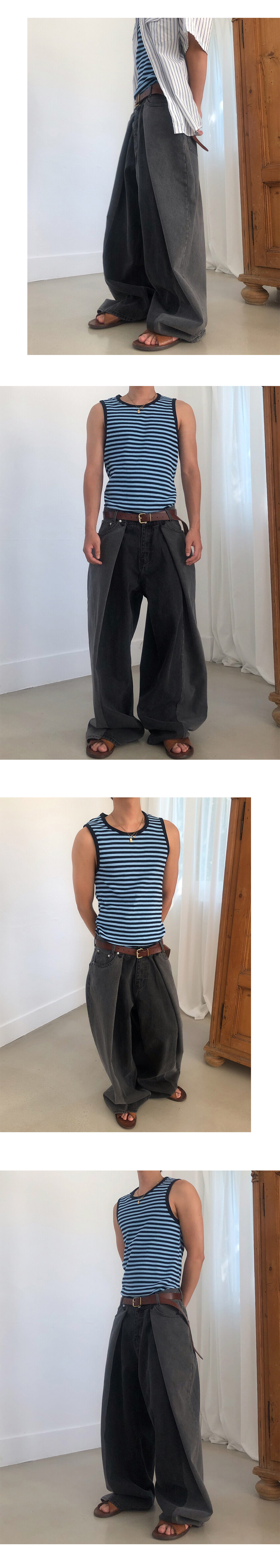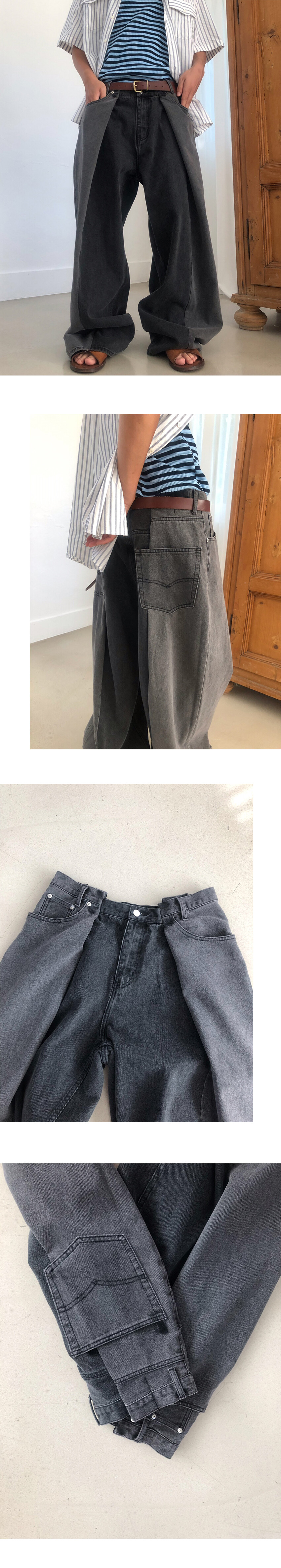 와이드한 실루엣의 데님팬츠
