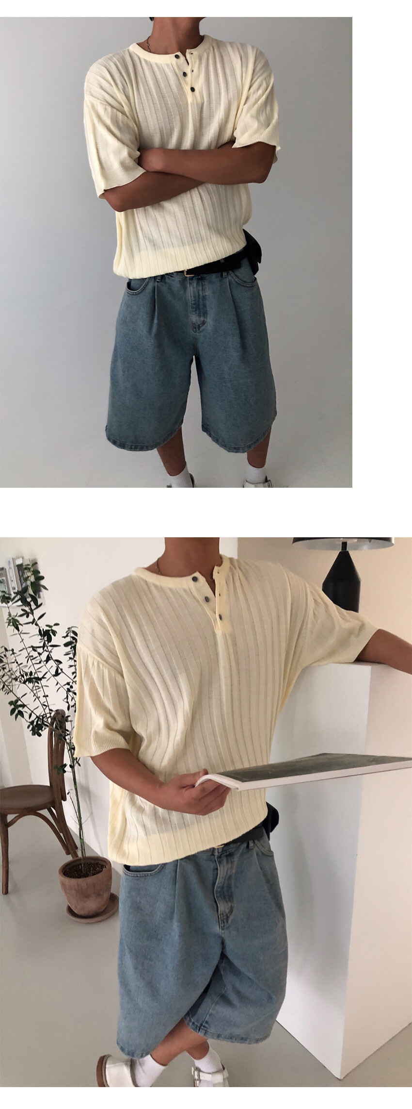 골지 짜임의 니트