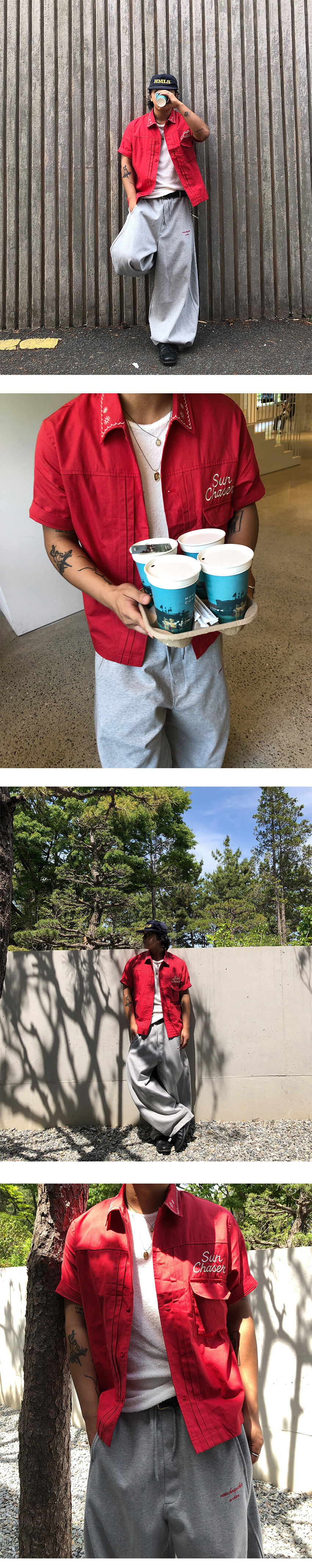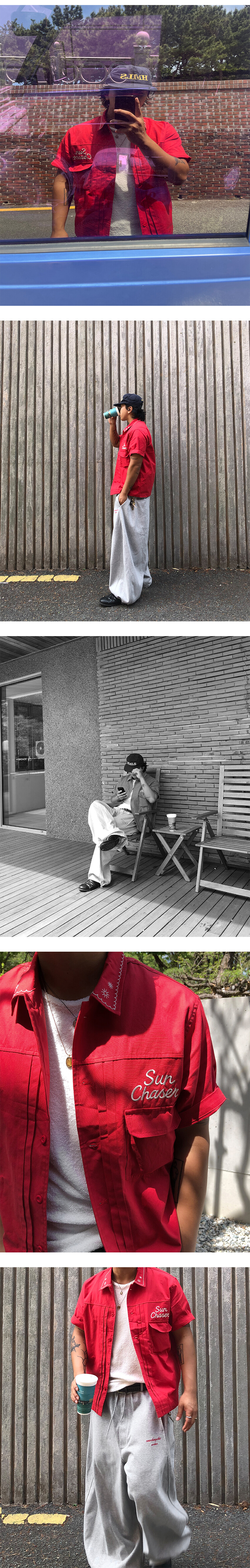 바스락거리는 코튼소재의 반팔 셔츠 자켓