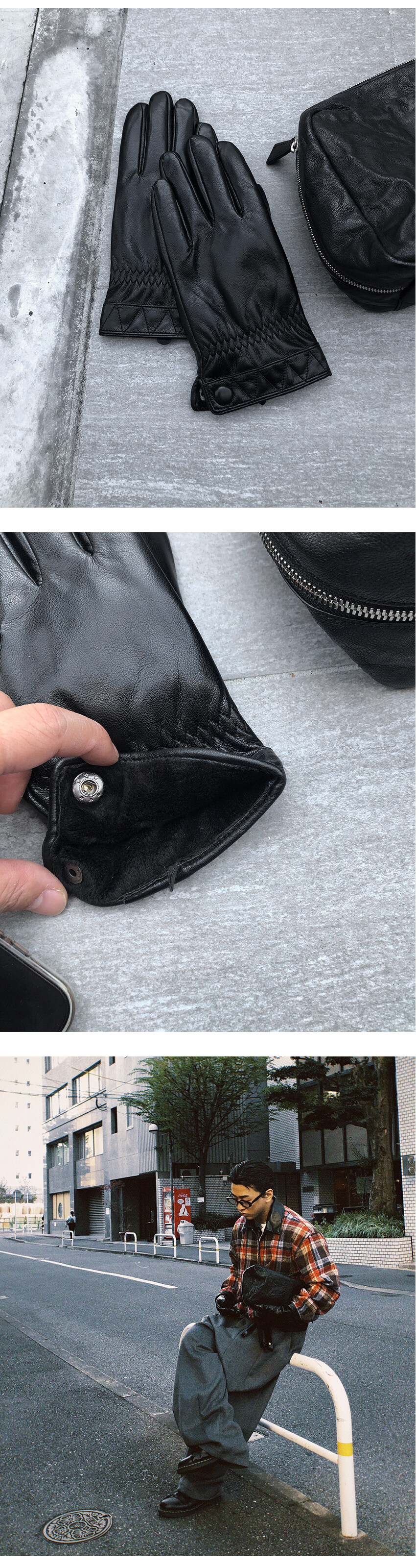 안감은 부드러운 후리스로 채워져 겨울철 따뜻한 보온성의 레더 장갑입니다.