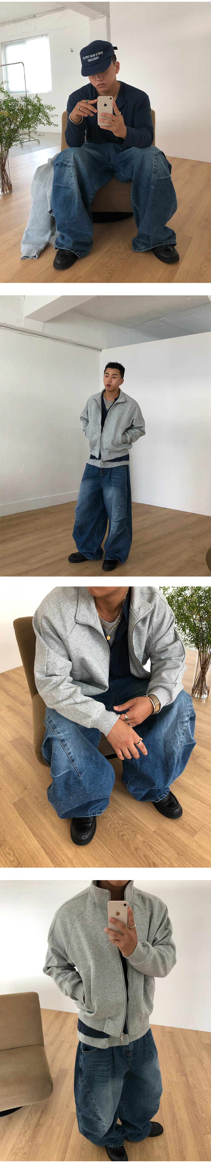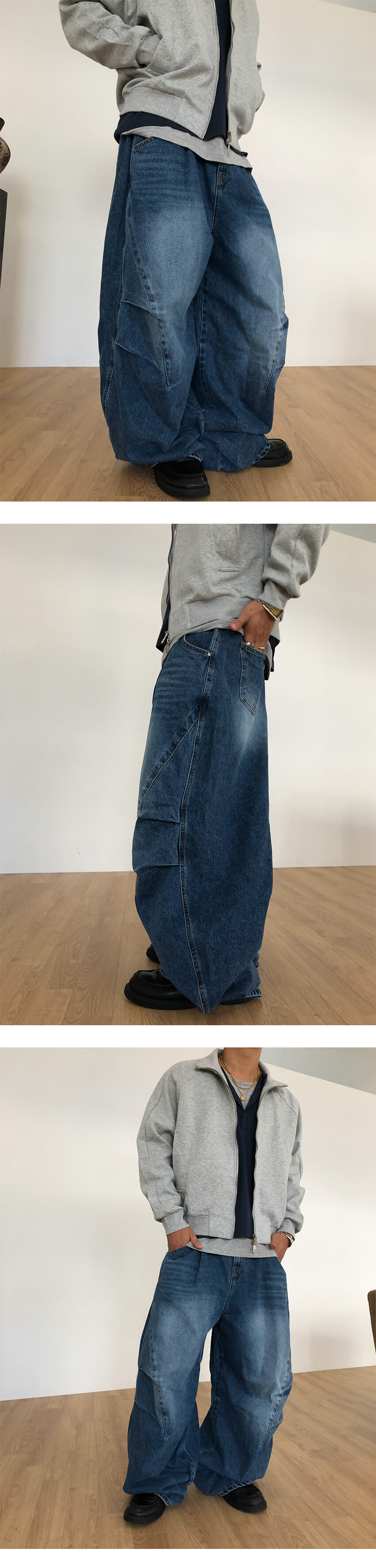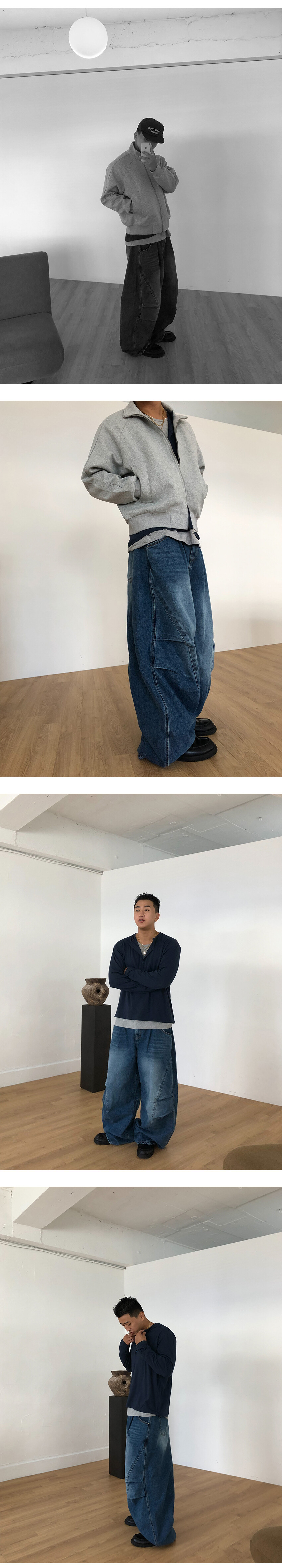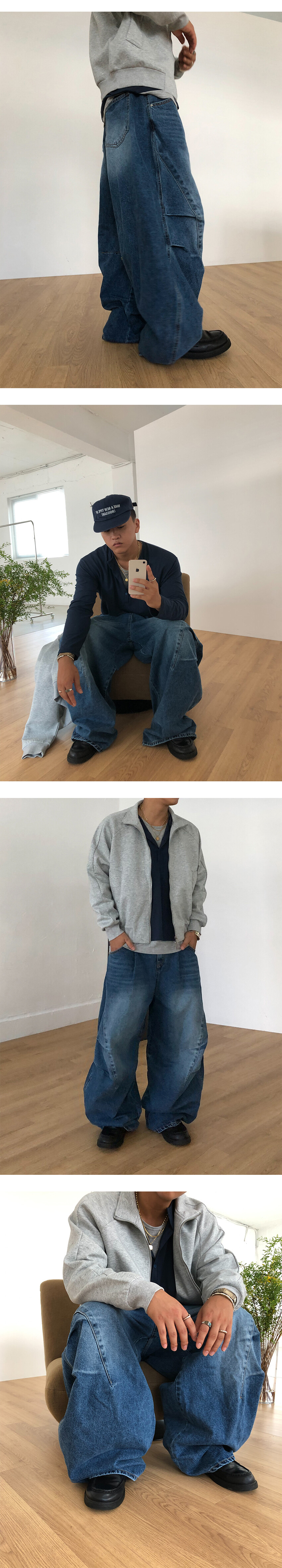 와이드한 실루엣의 데님팬츠