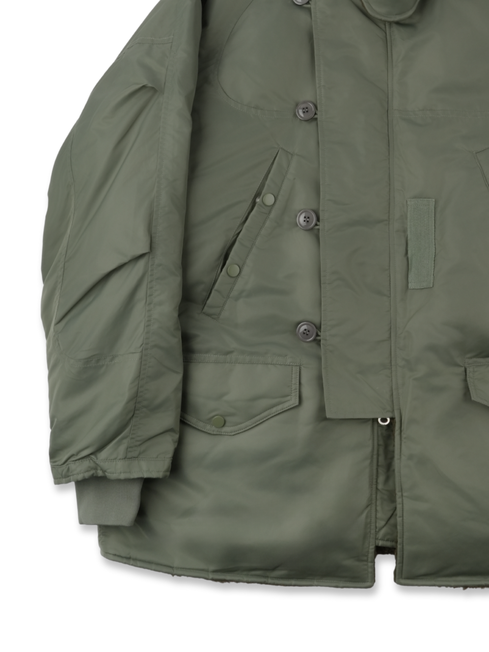N3B는 혹한 지역에서의 군용 아우터로 사용되던 디자인으로, 긴 기장감과 안정적인 보온 구조, 실용적인 디테일이 특징인 아이템입니다.