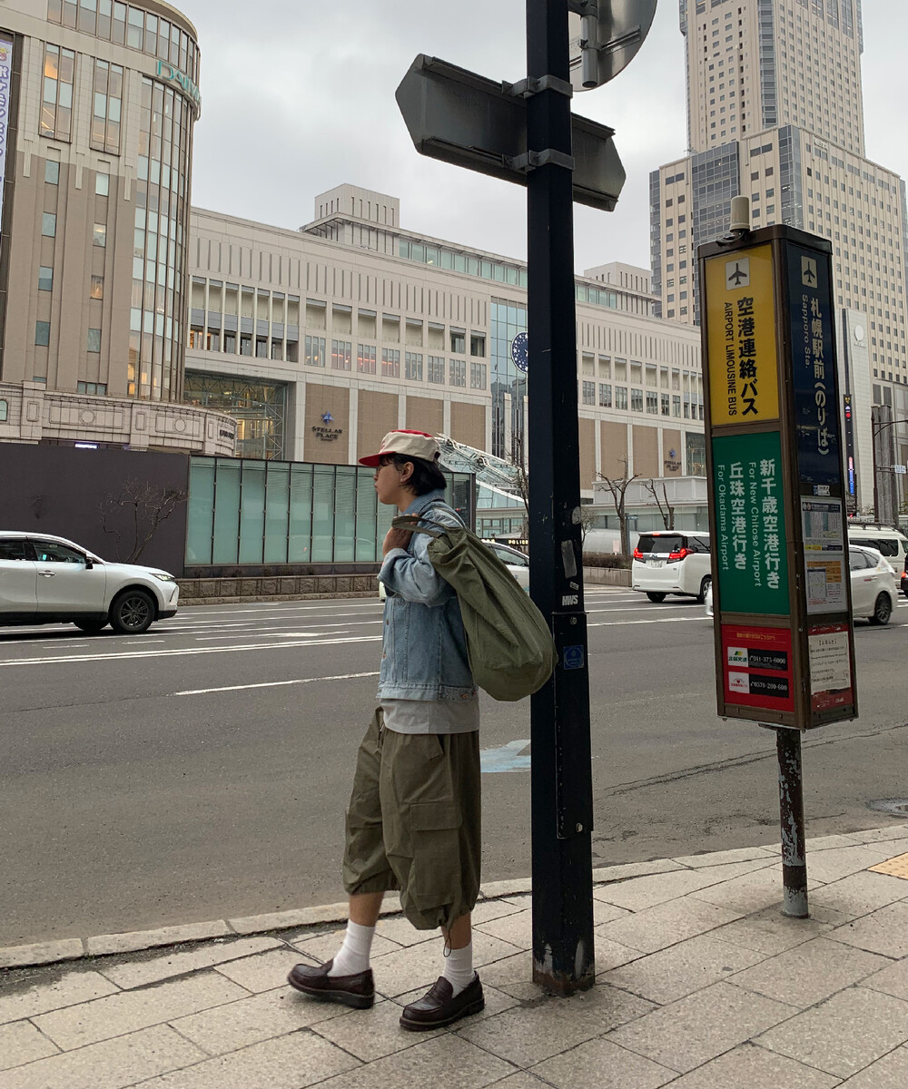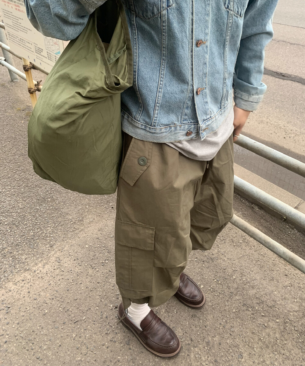 카고 포켓 ,무릎 턱 ,밑단 스트링