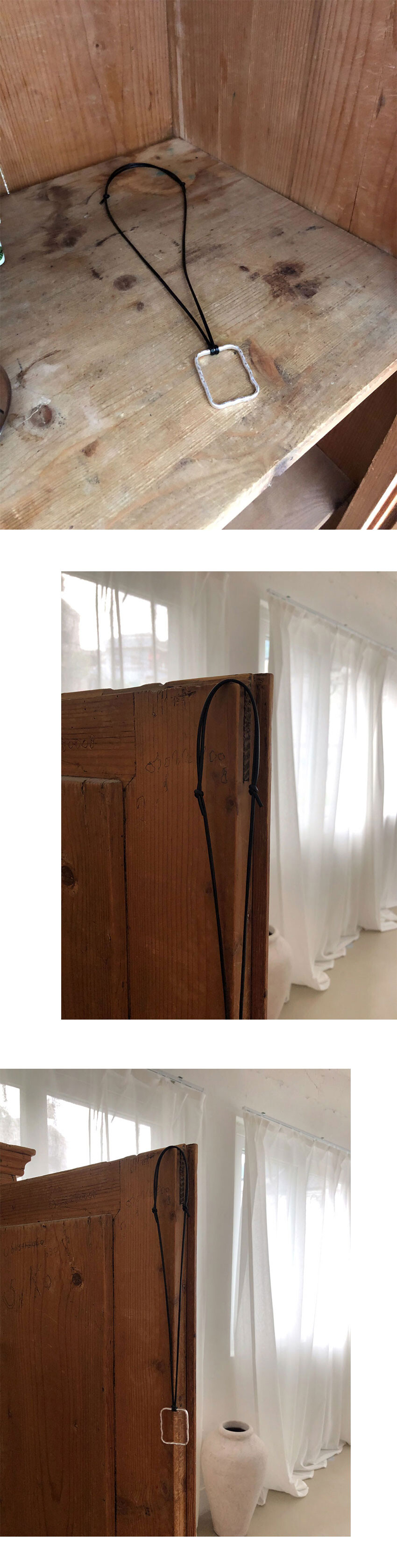 square pendant leather neckalce