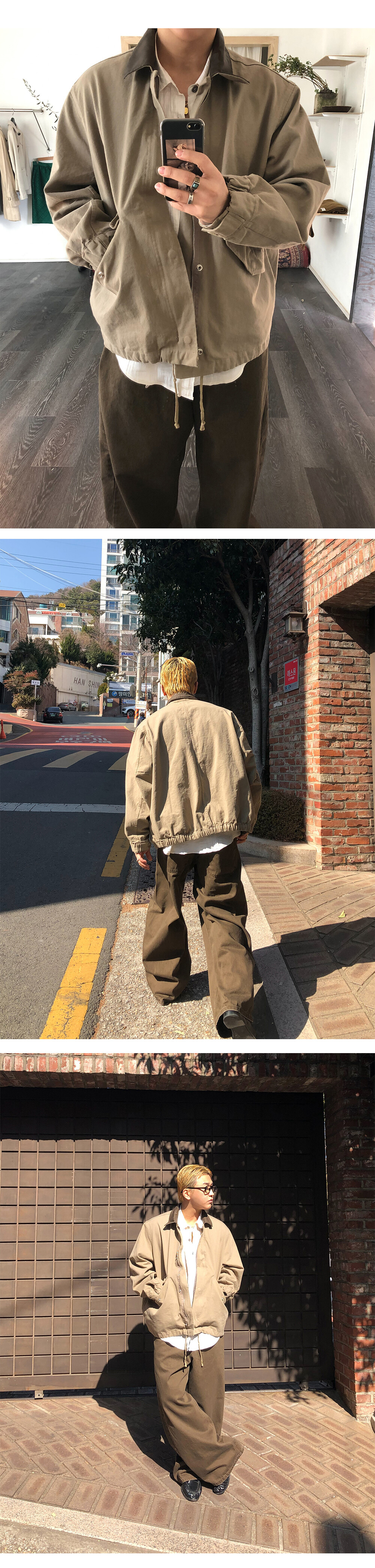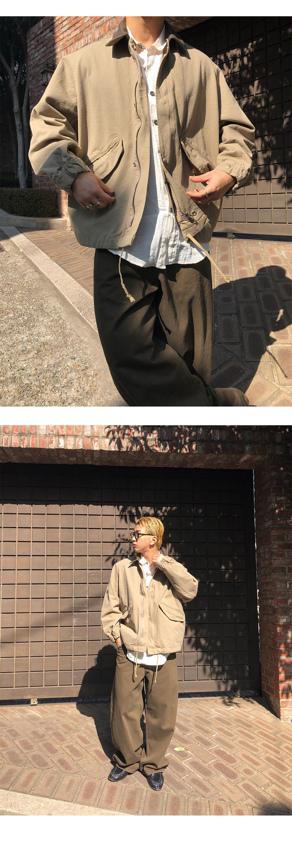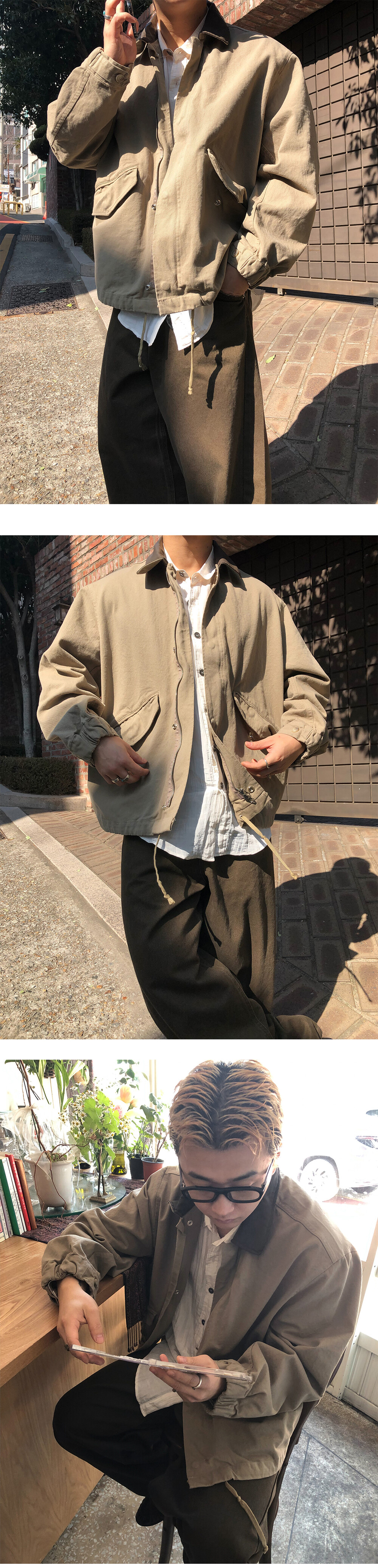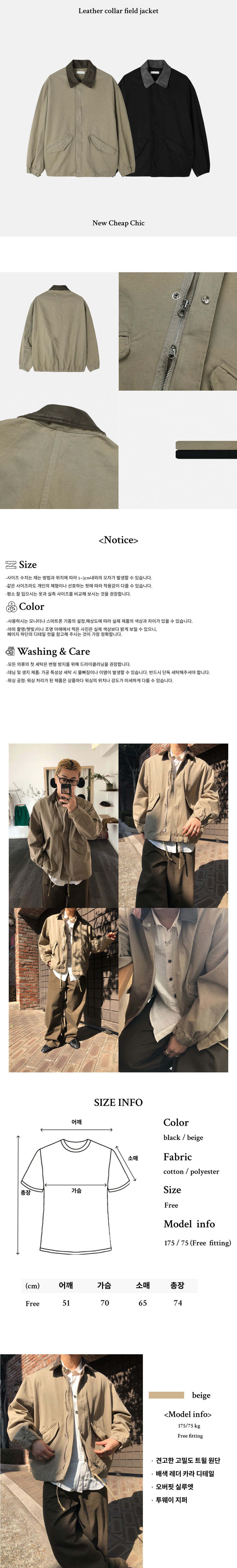 Leather collar field jacket
