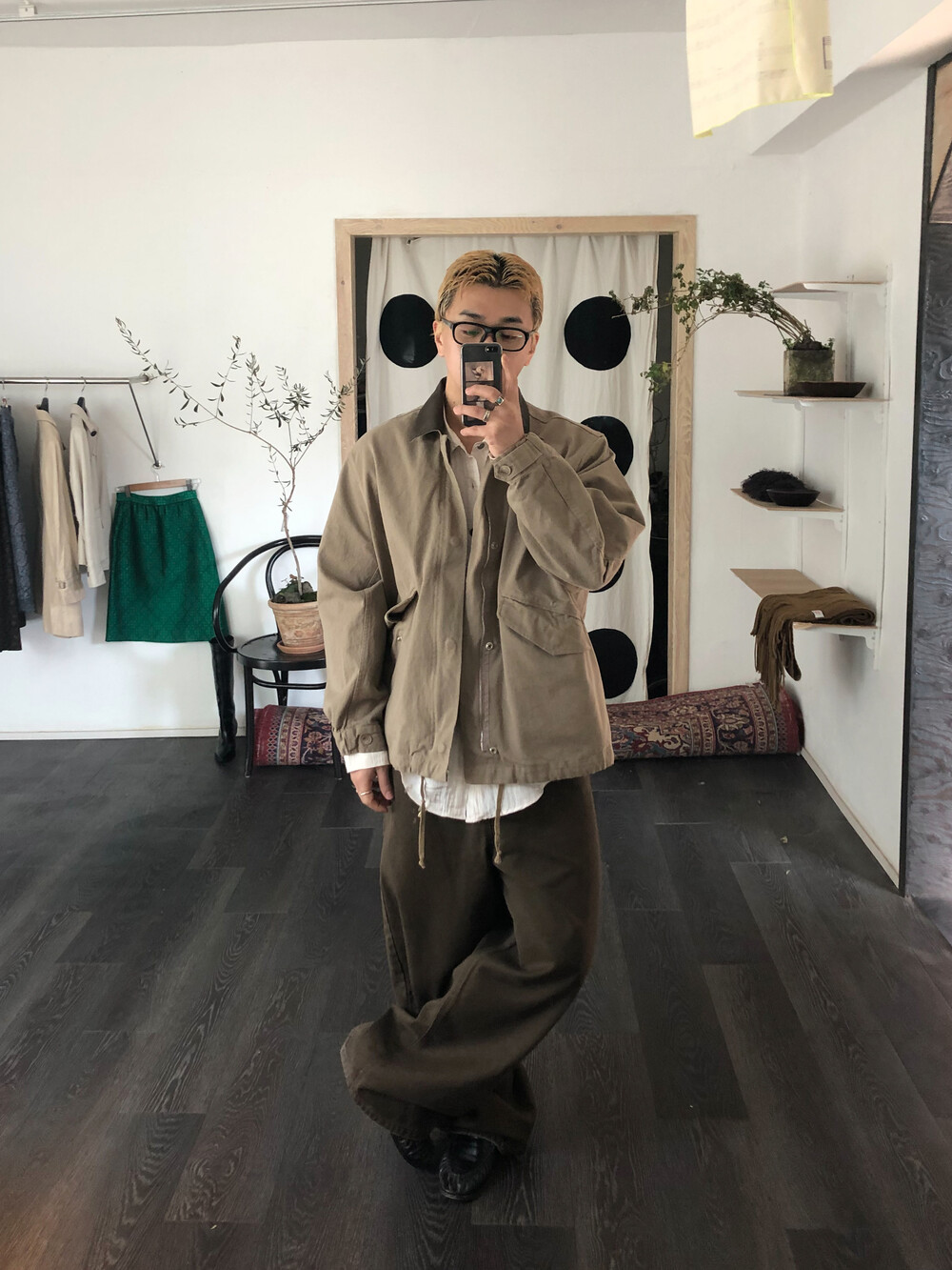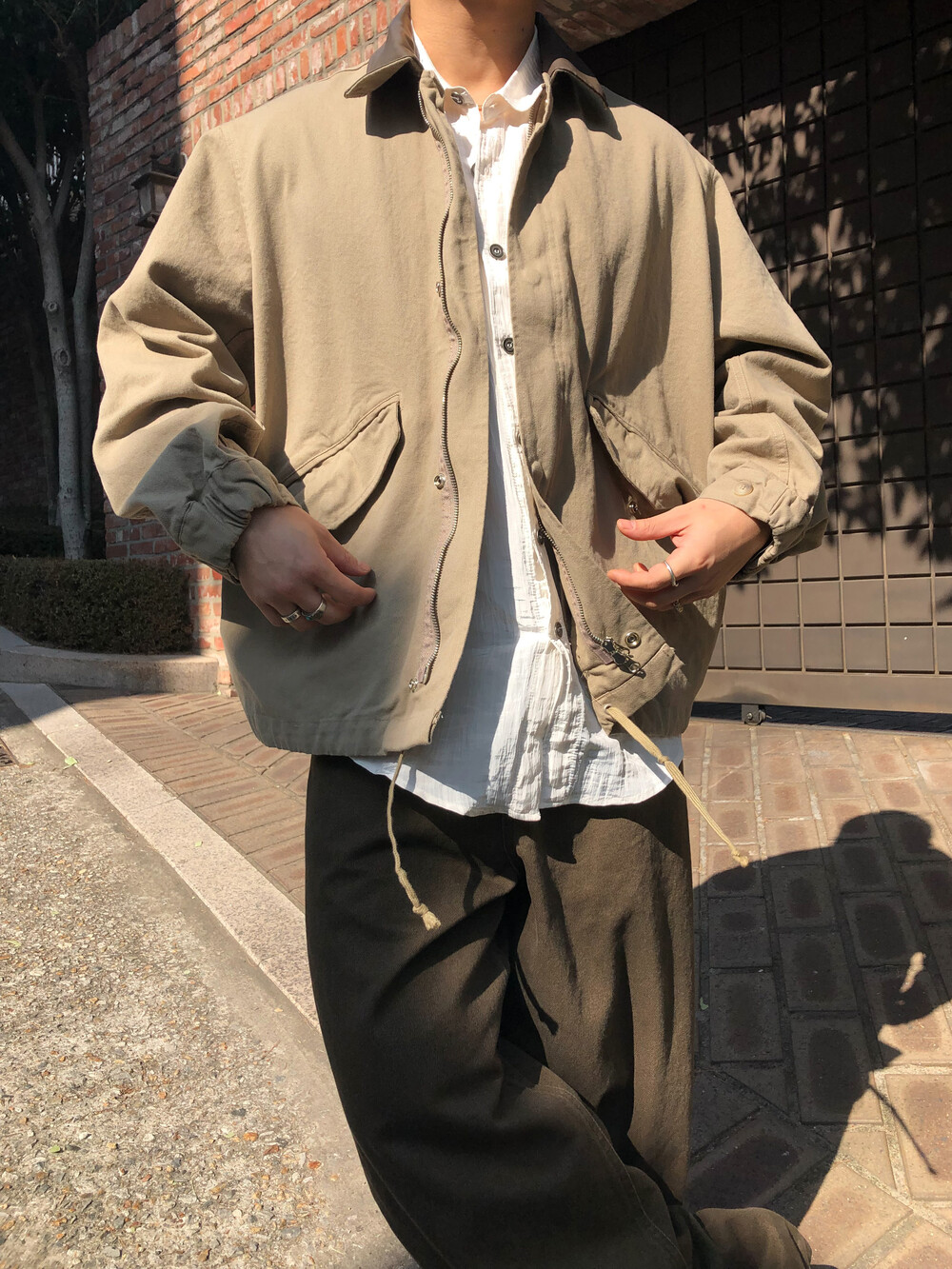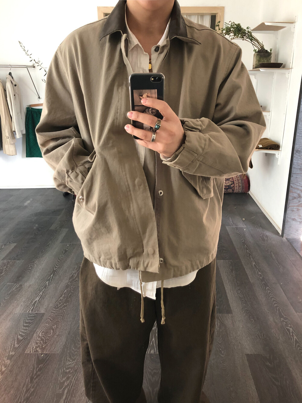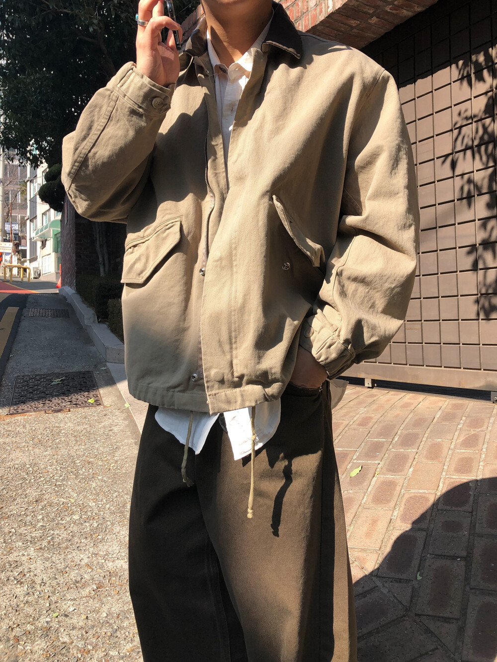 Leather collar field jacket