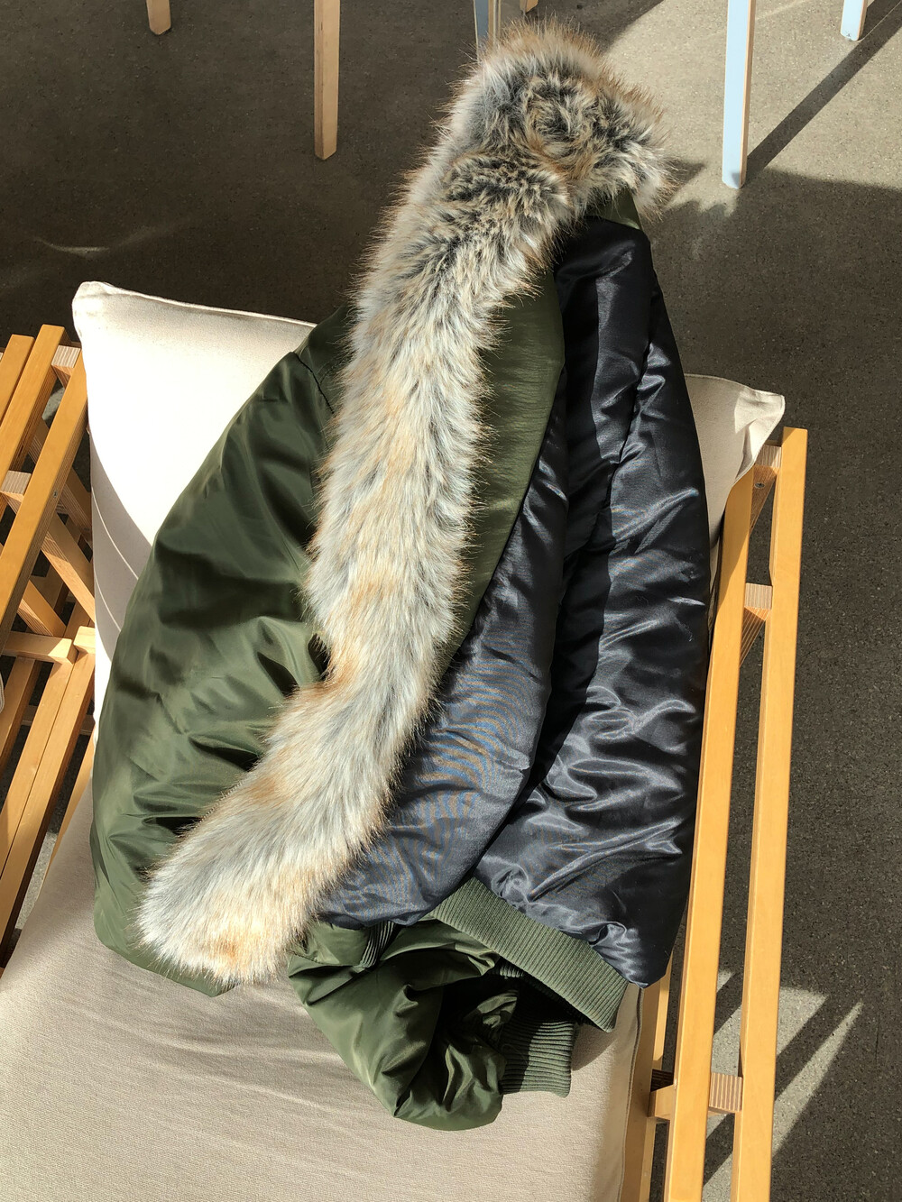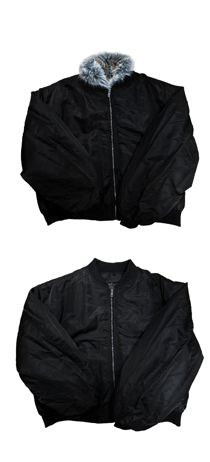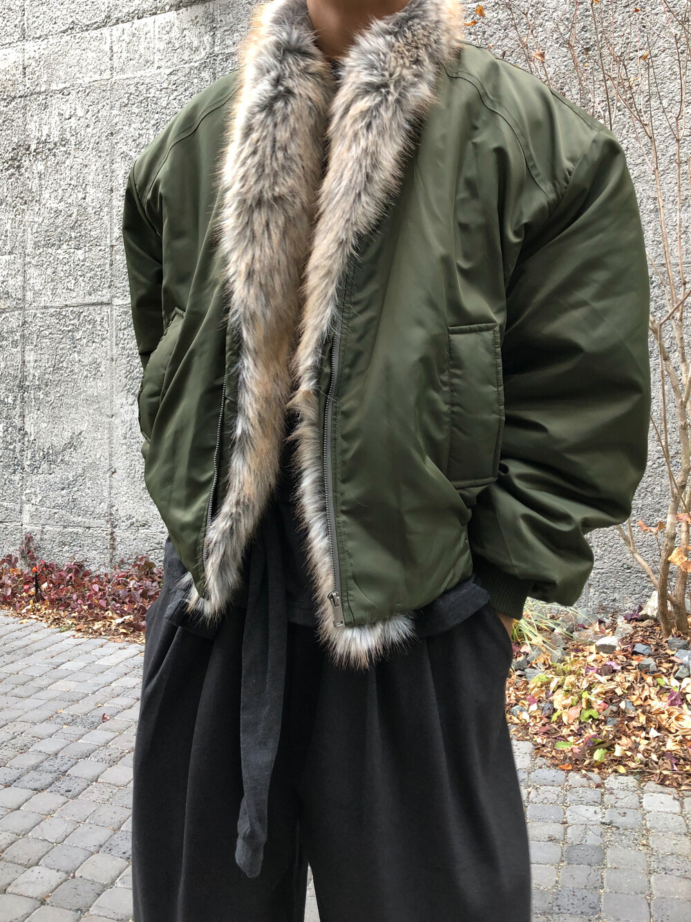 클래식한 MA-1 플라이트 점퍼를 모티브로 제작된 크롭 퍼 점퍼입니다.