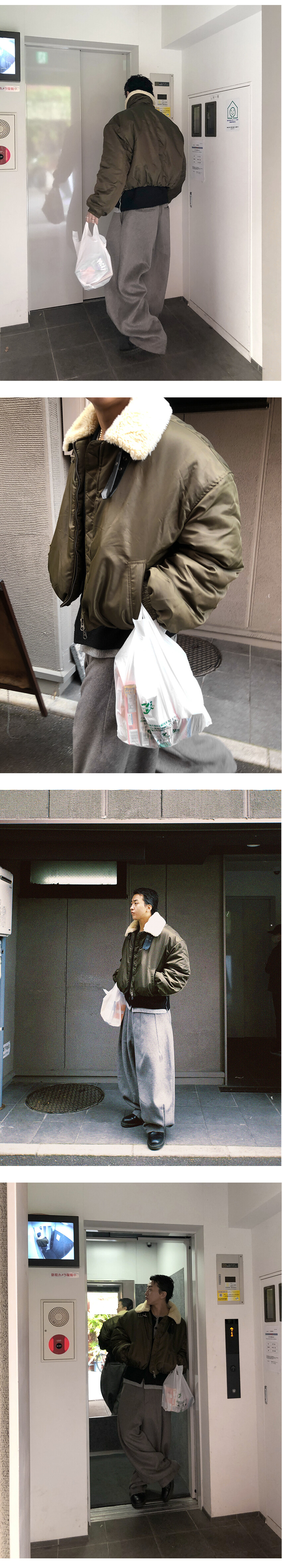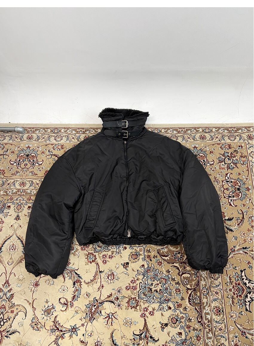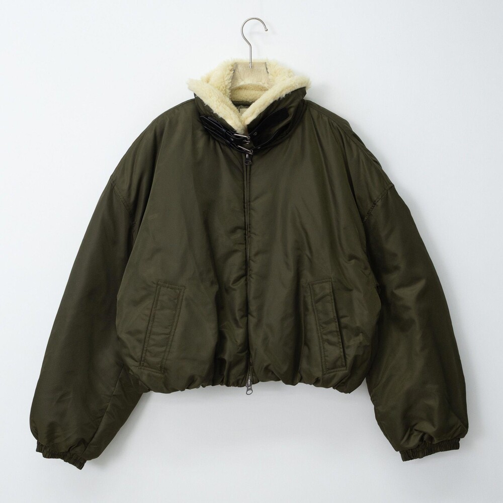 도시적인 실루엣과 빈티지 항공무드가 공존하는 크롭 무스탕 자켓입니다.