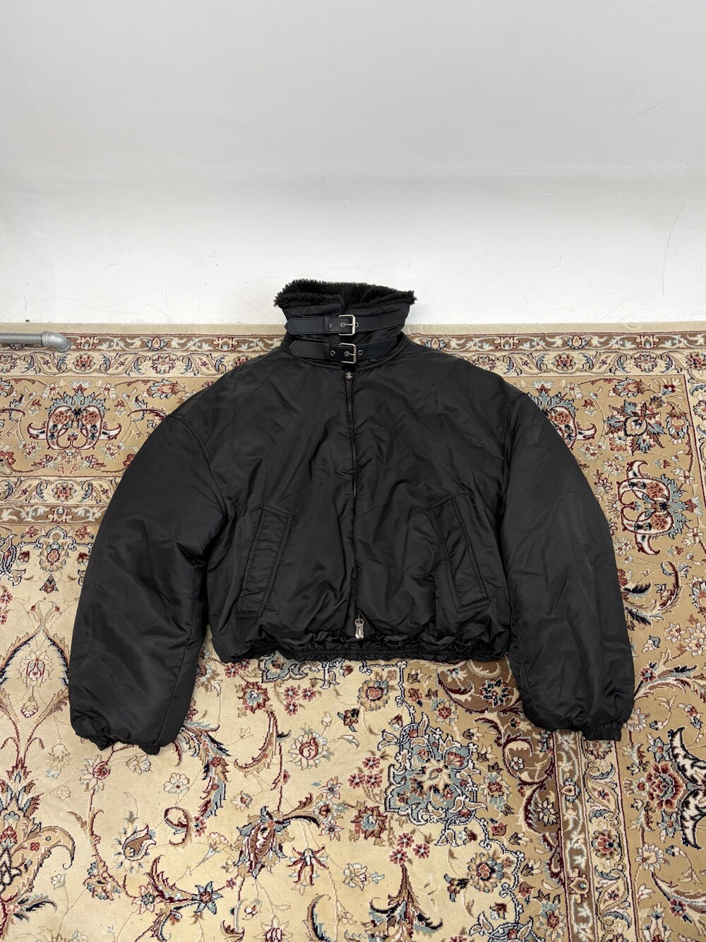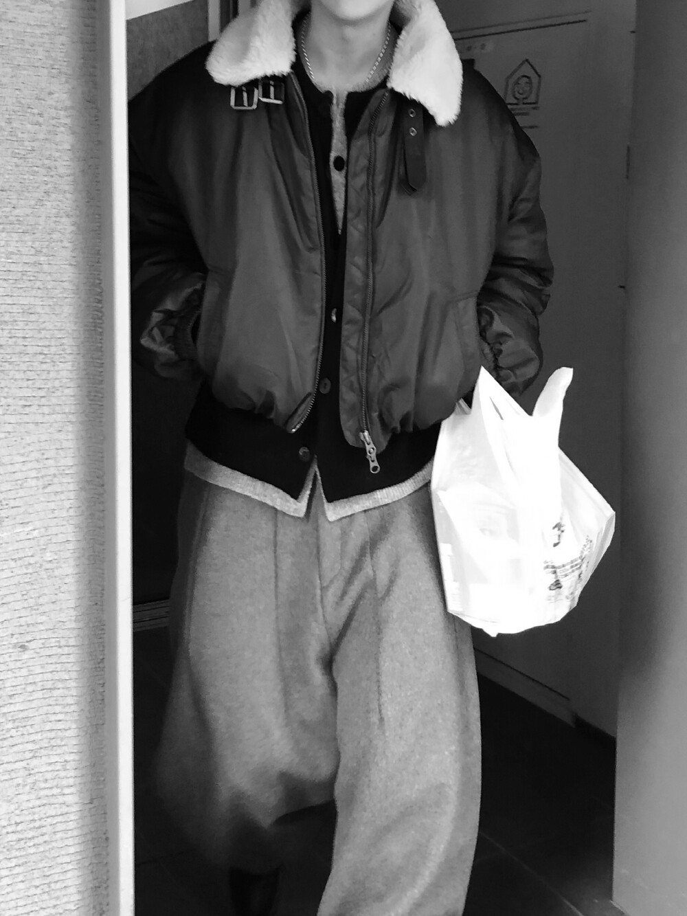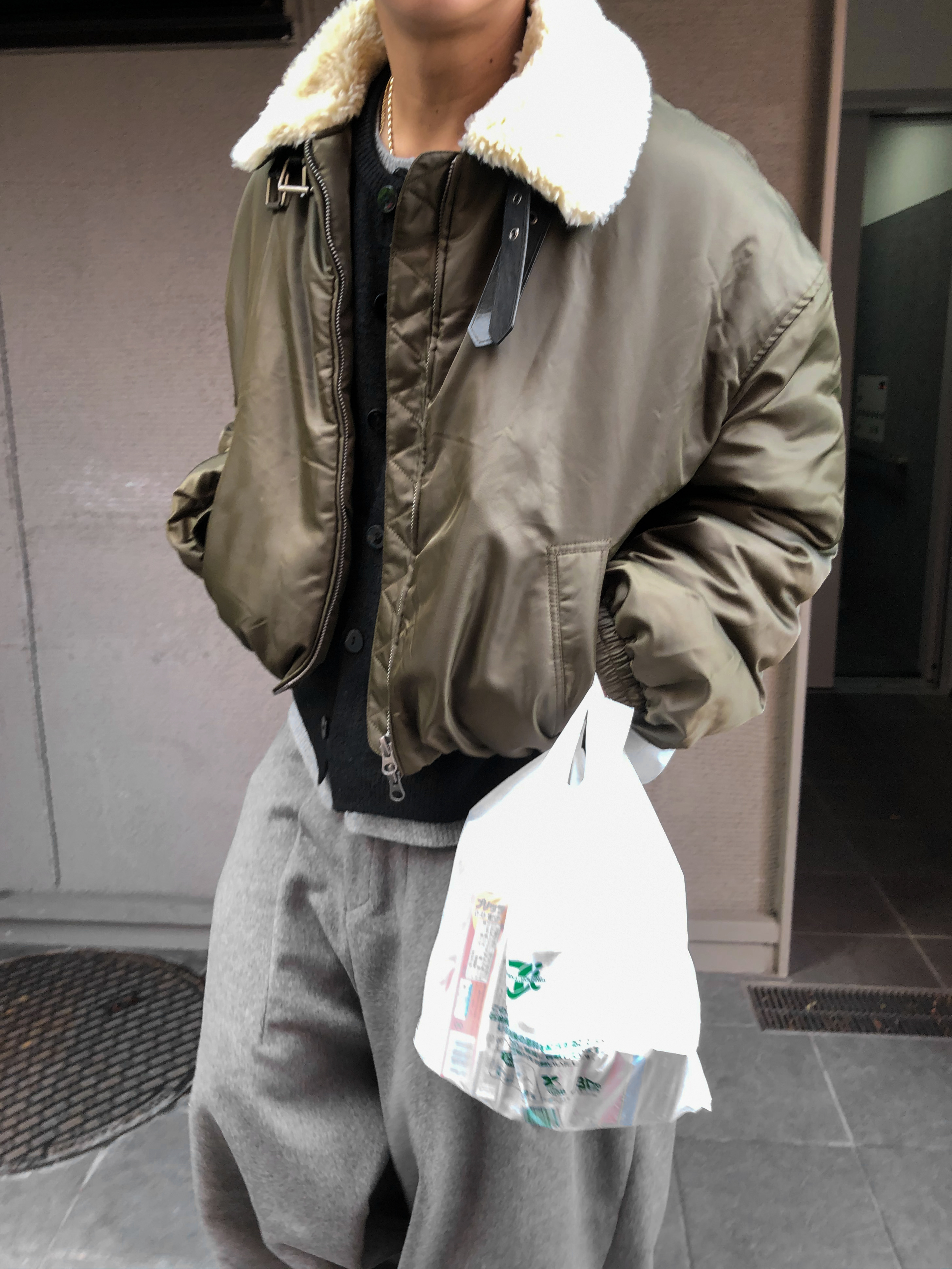 도시적인 실루엣과 빈티지 항공무드가 공존하는 크롭 무스탕 자켓입니다.