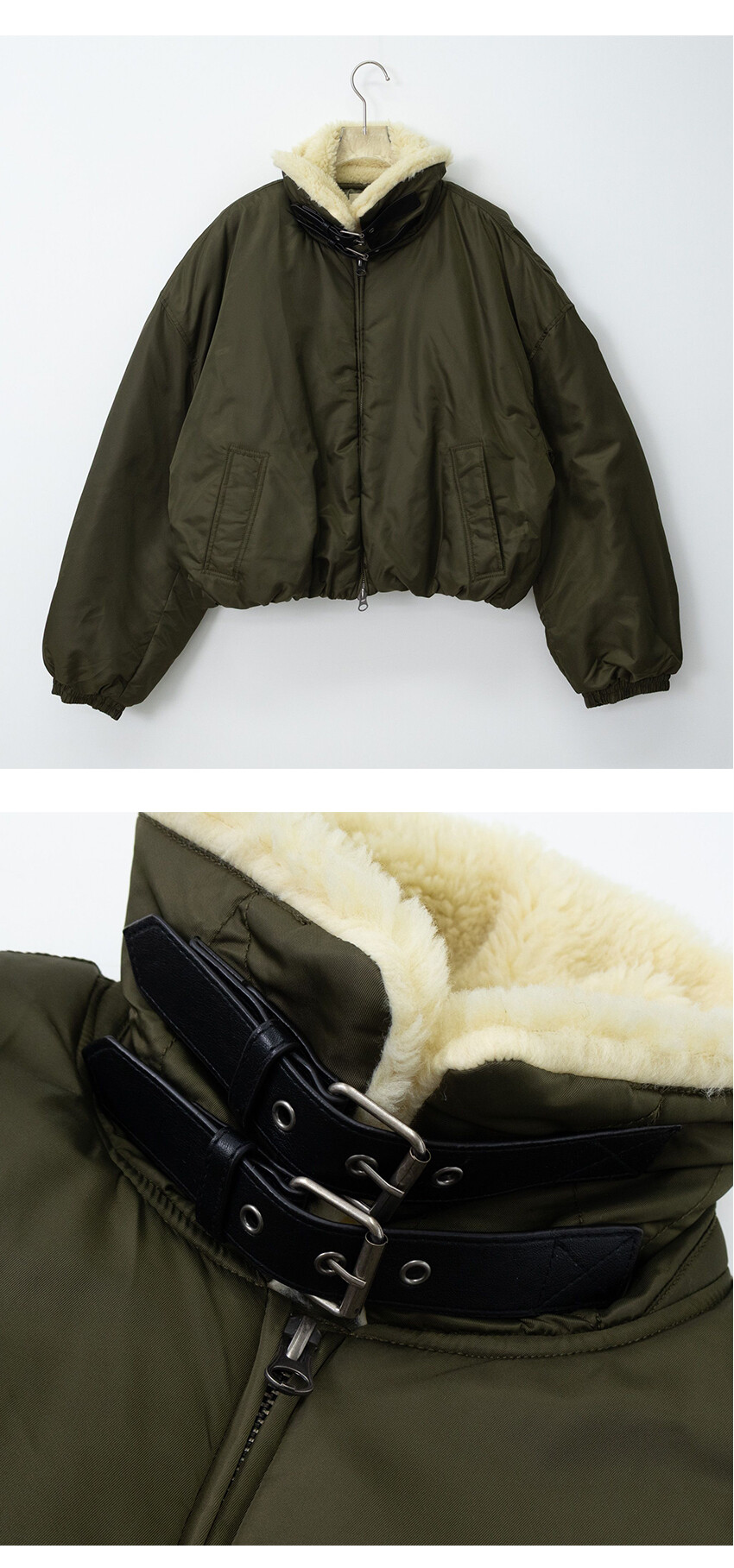 카라 벨트 디테일로 잠궈 착용하면 한층 더 밀리터리한 무드가 완성되는 제품입니다.