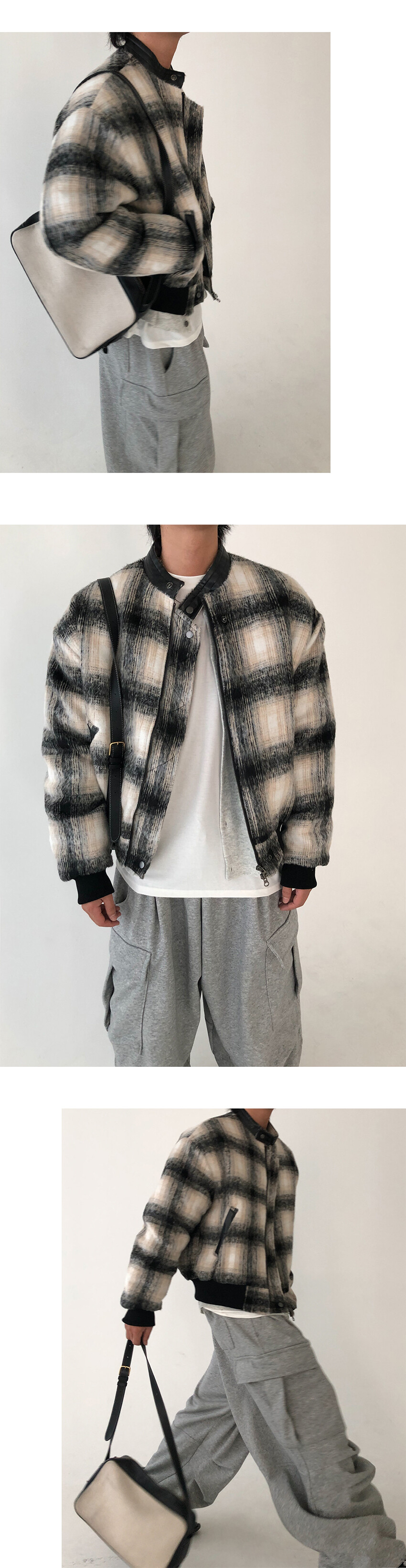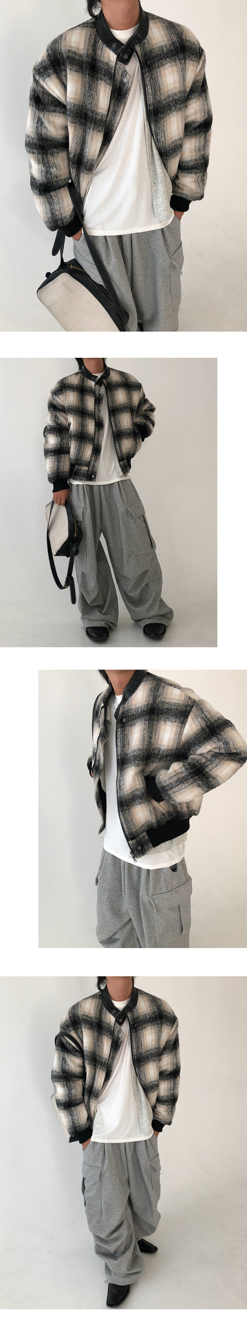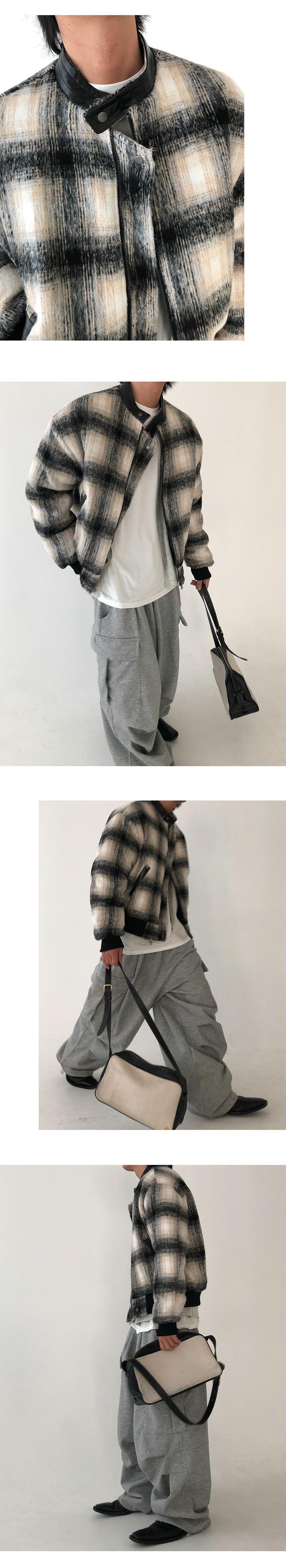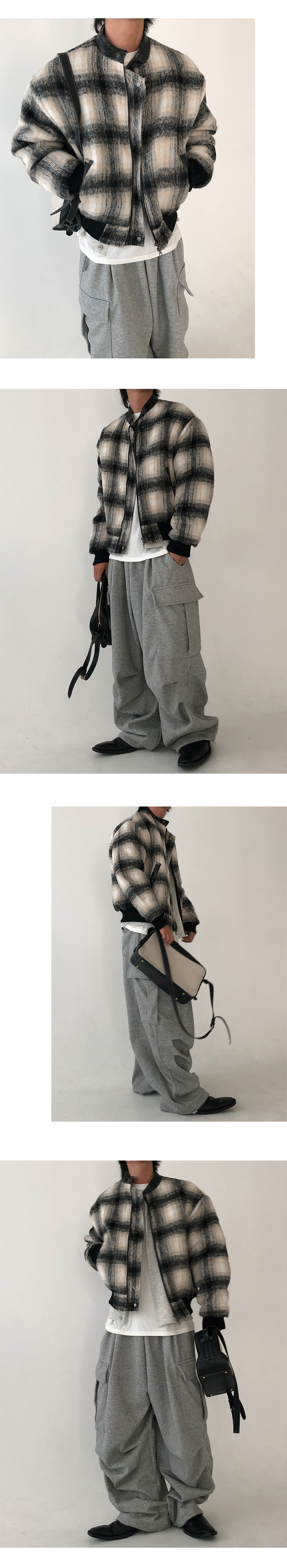 wool check biker jacket