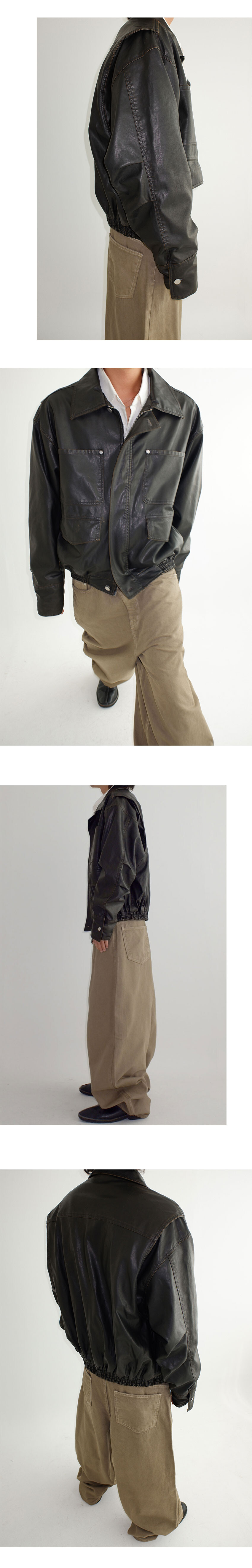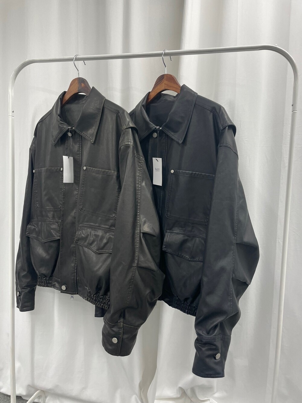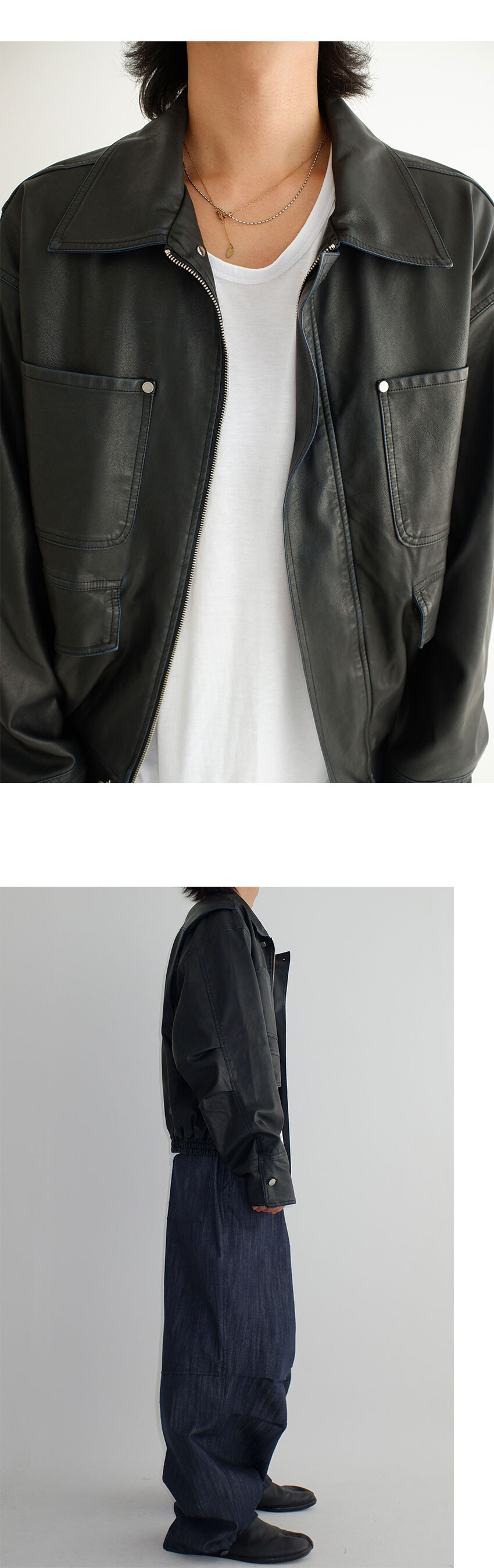 빈티지하게 가먼트워싱가공을 한 레더워크 자켓