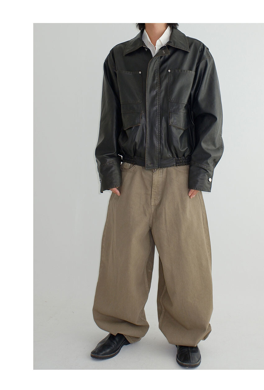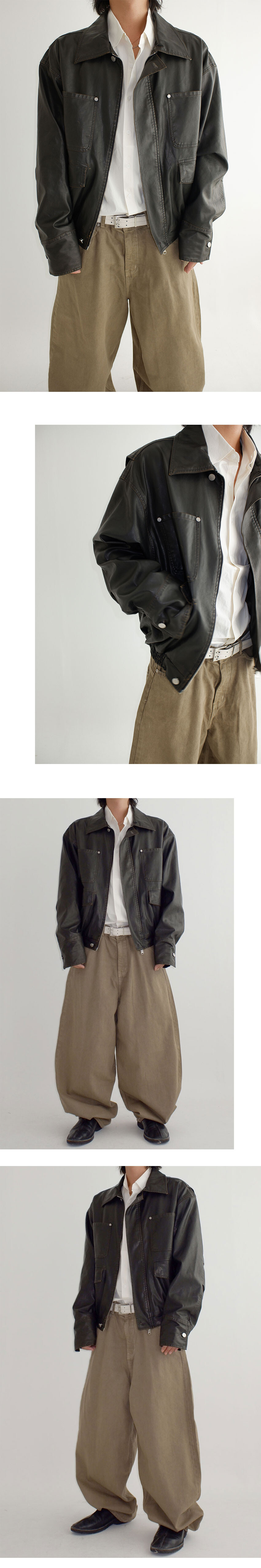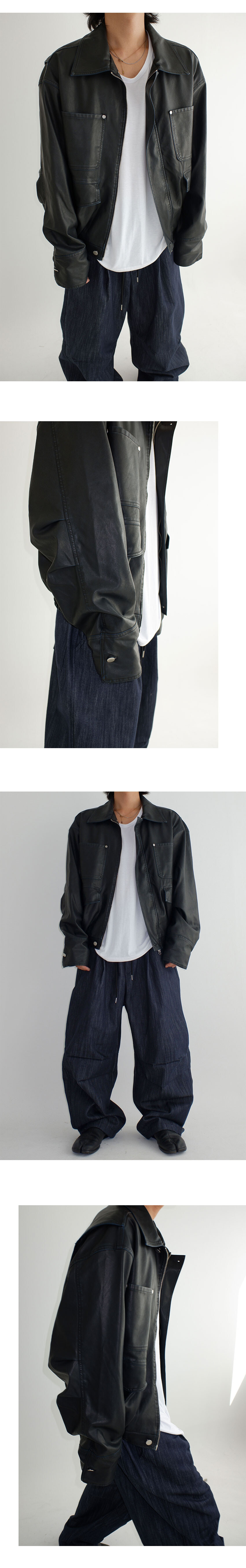 빈티지하게 가먼트워싱가공을 한 레더워크 자켓