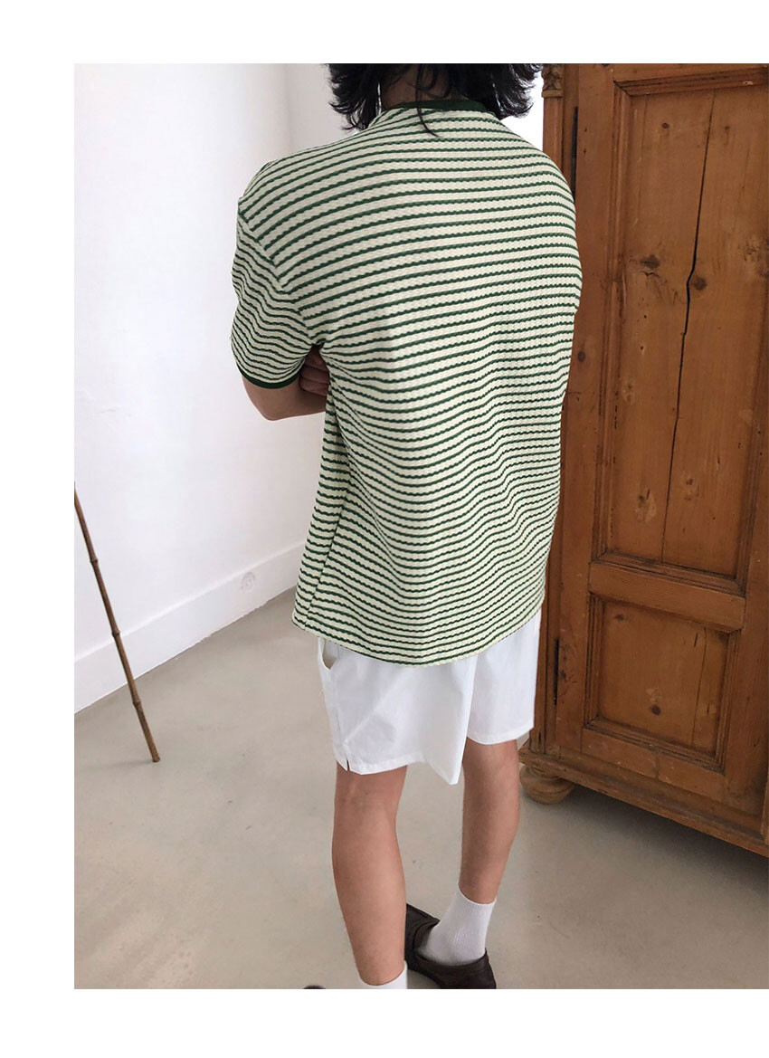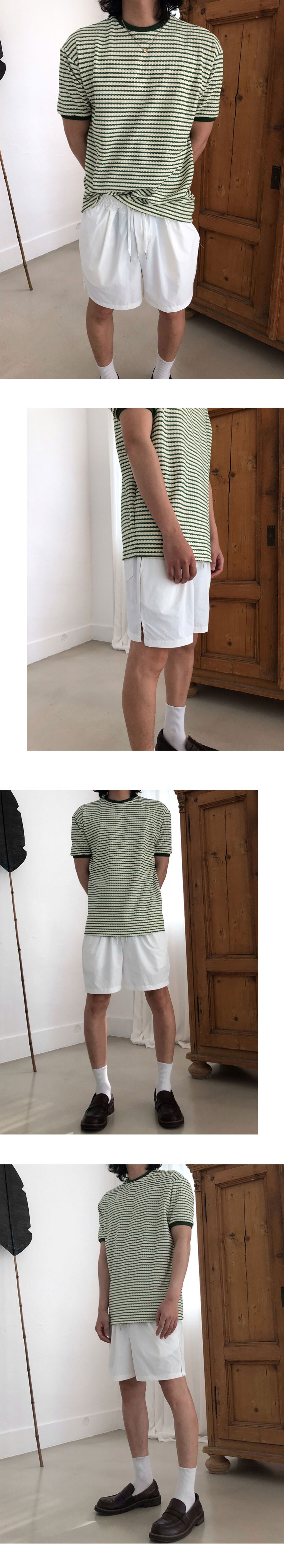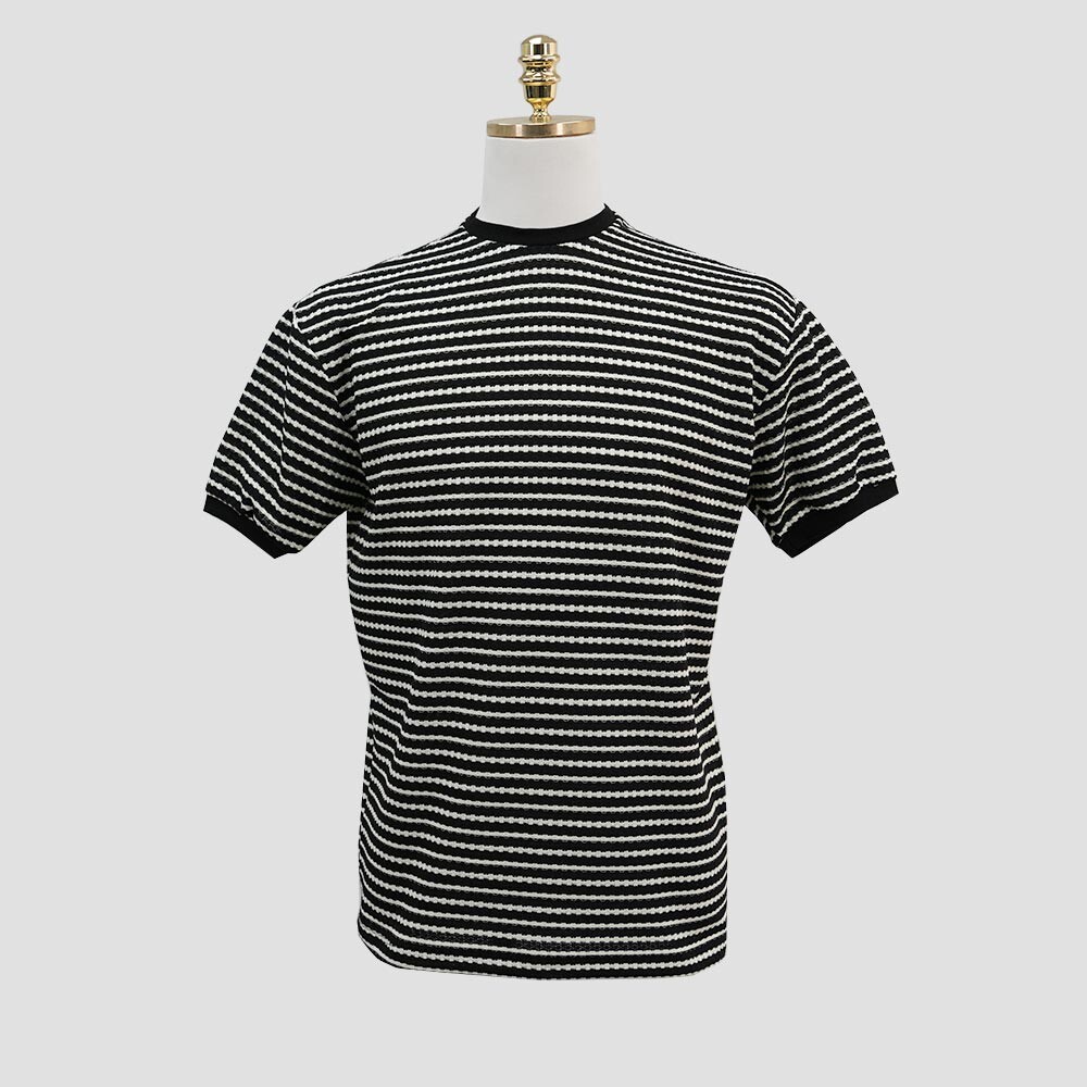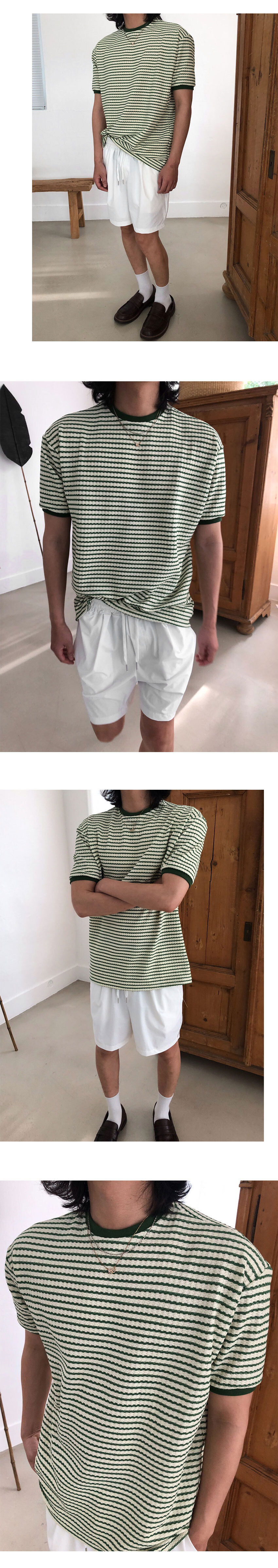스트라이프니트 원단으로 제작된 링거 티셔츠